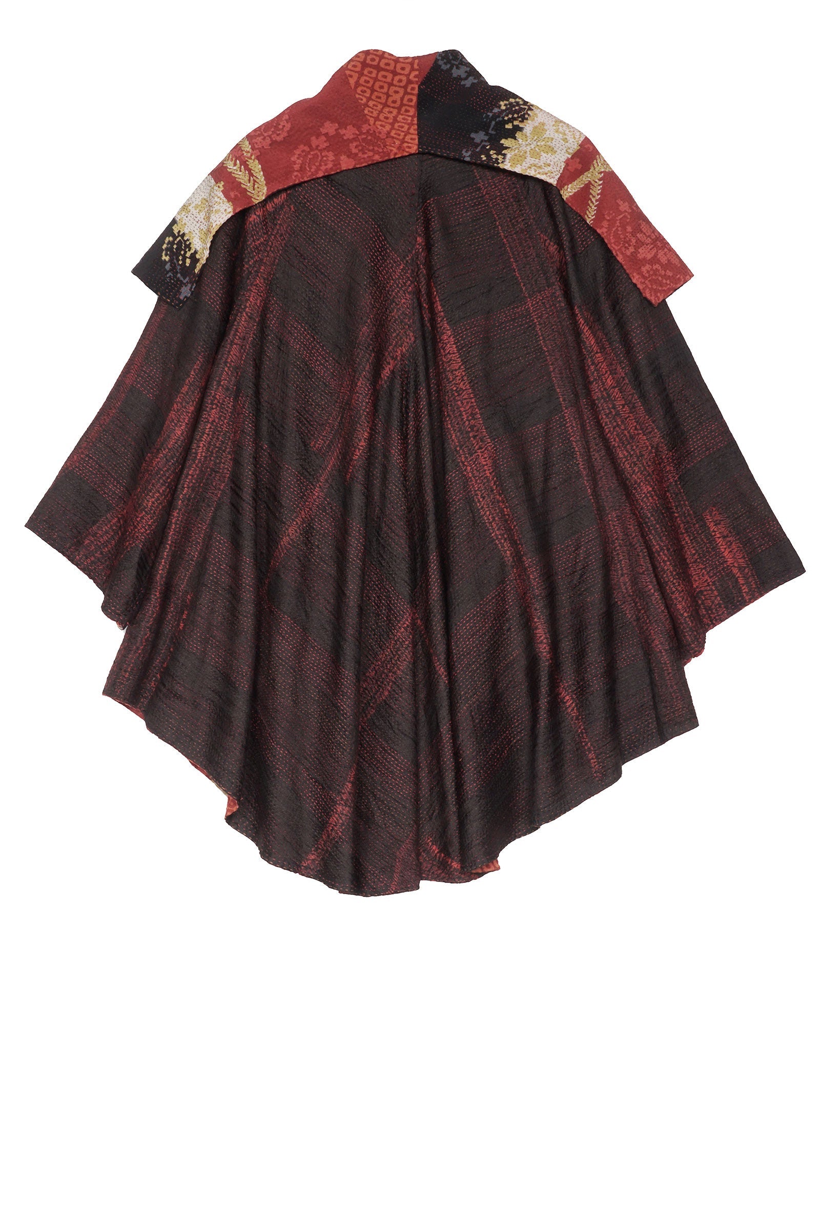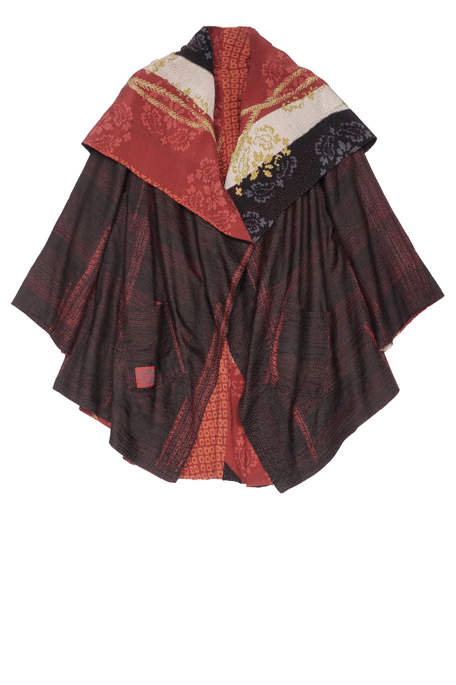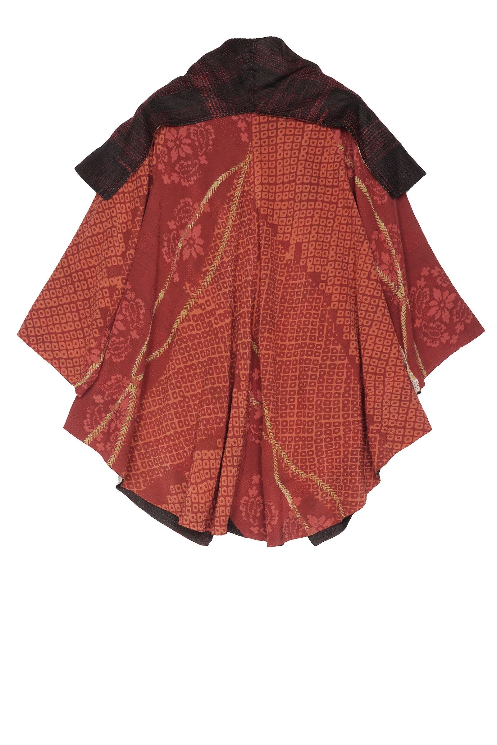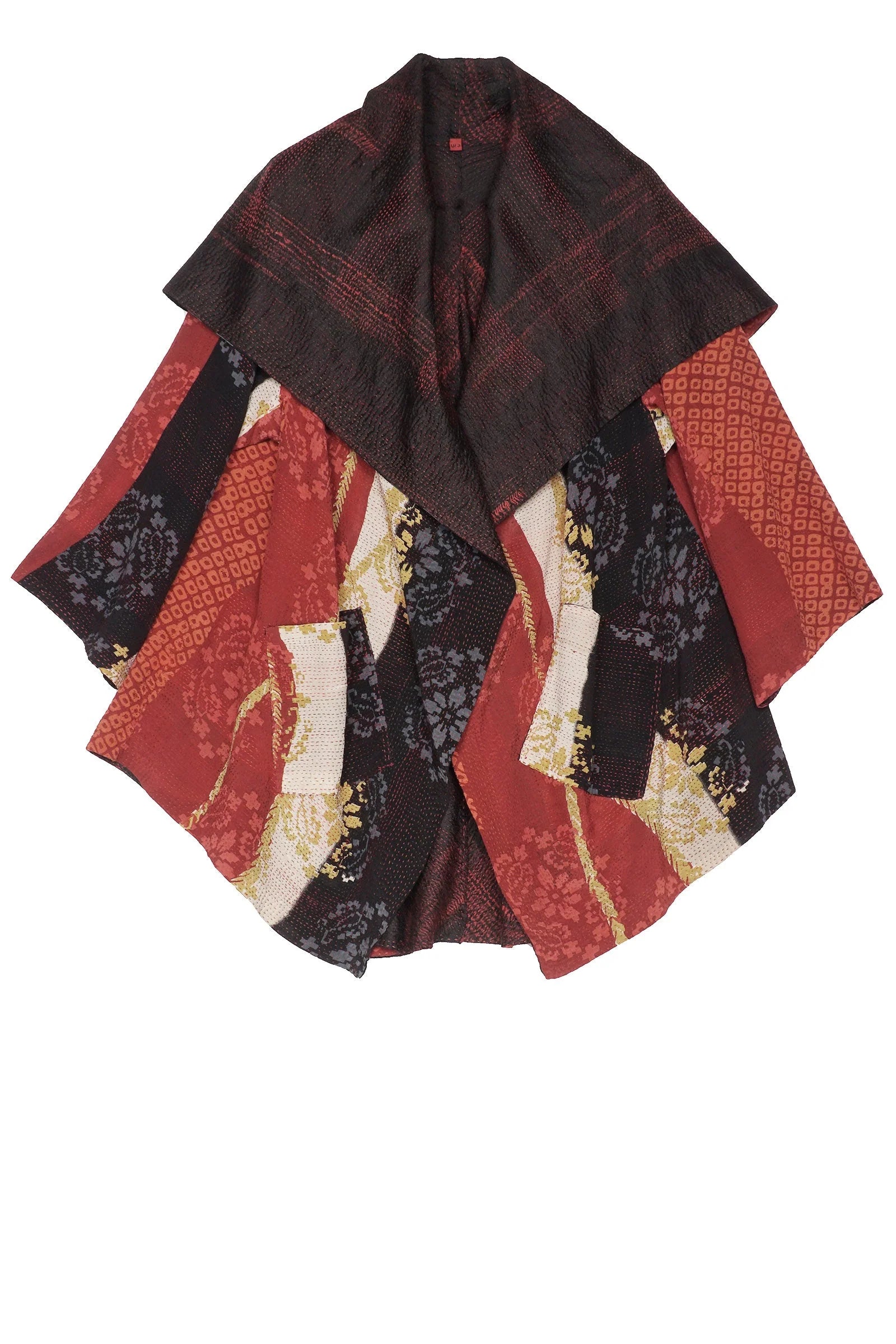 KIMONO PRINT KANTHA CIRCULAR LONG JKT - kp2009-red -