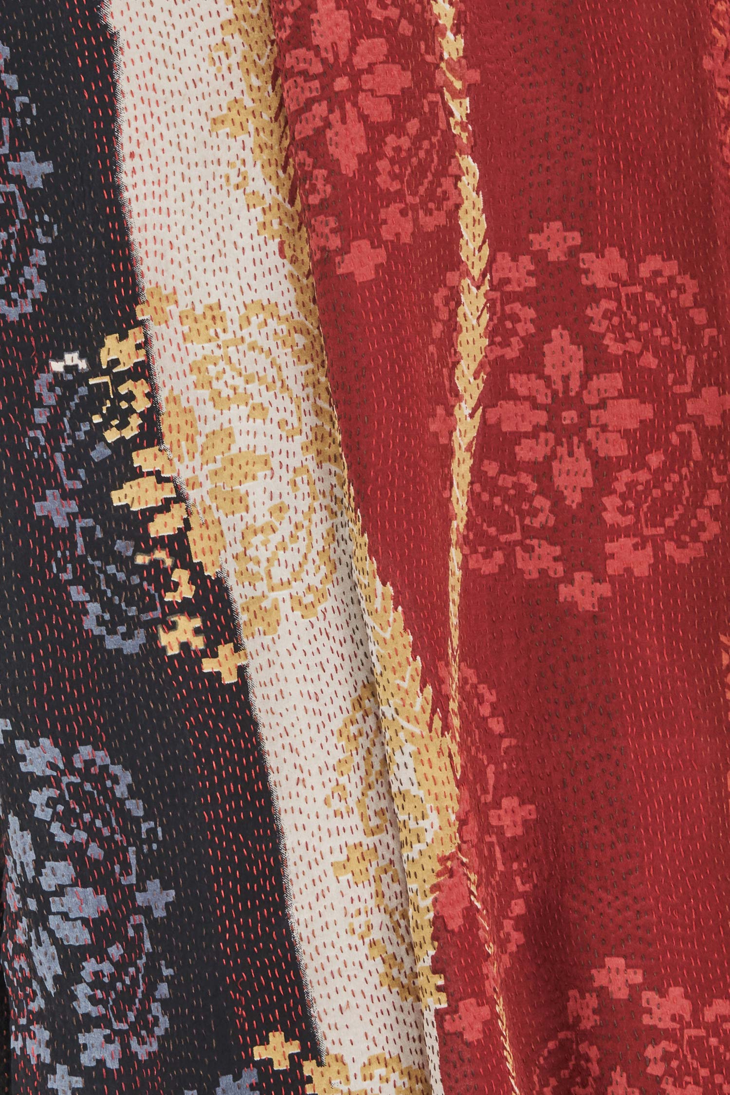 KIMONO PRINT KANTHA SHAWL LARGE - kp2803-red -