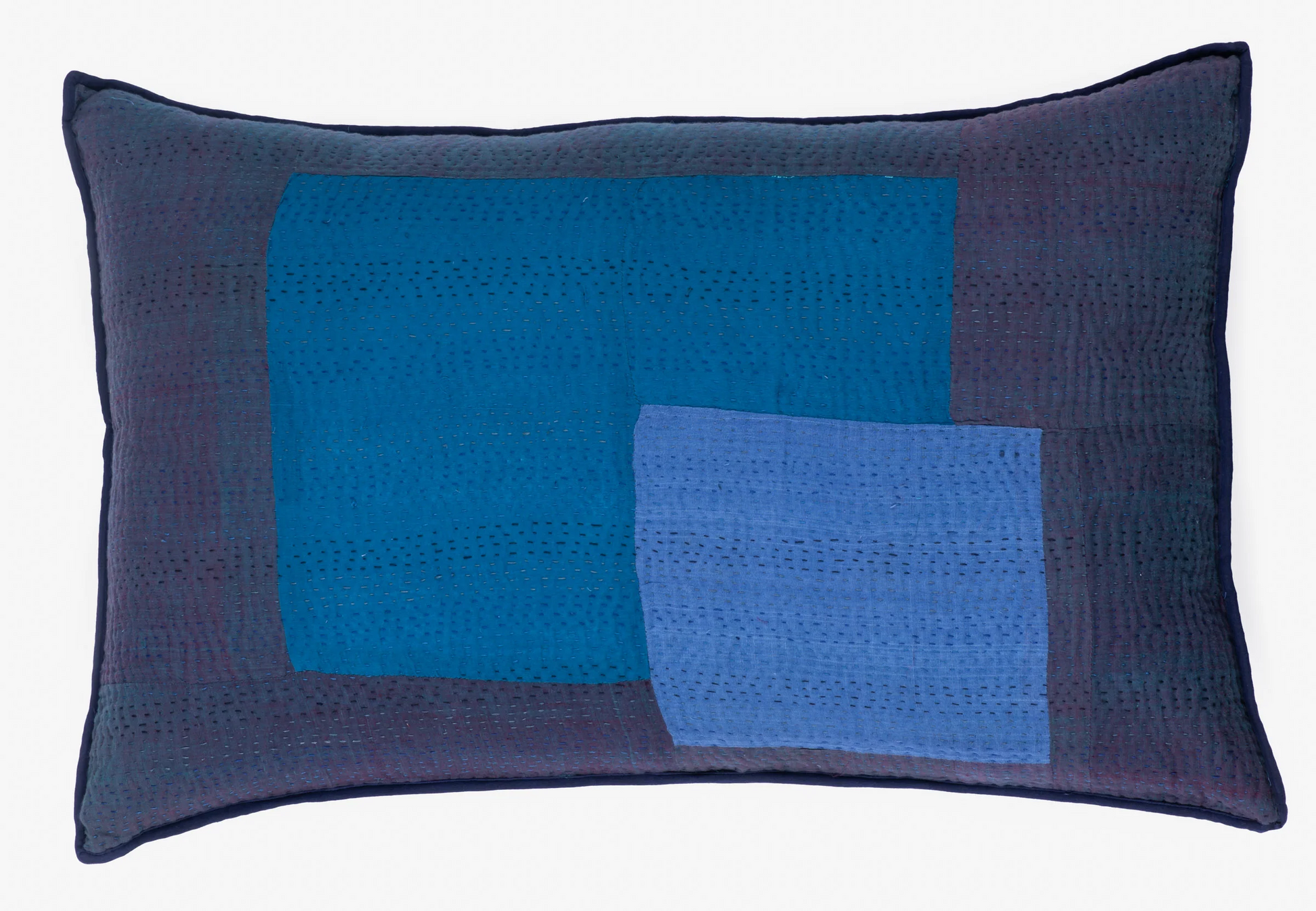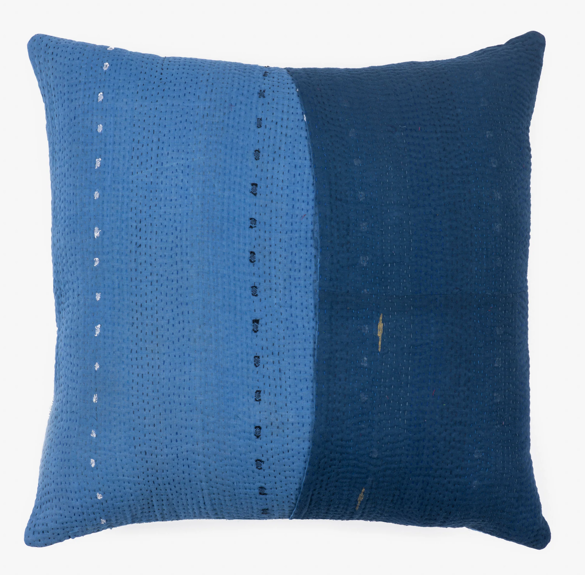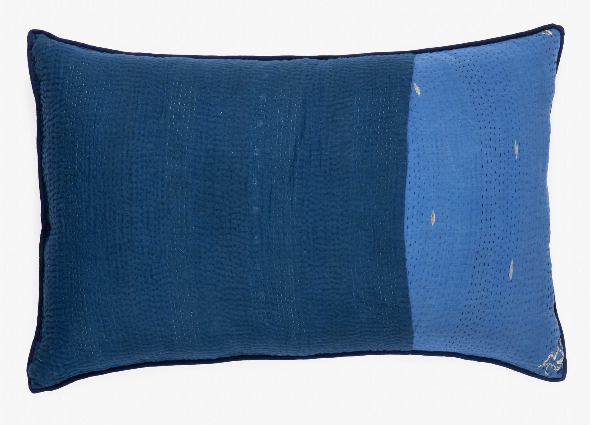 Landscape Handmade Vintage Kantha Pillow Sham -Navy -