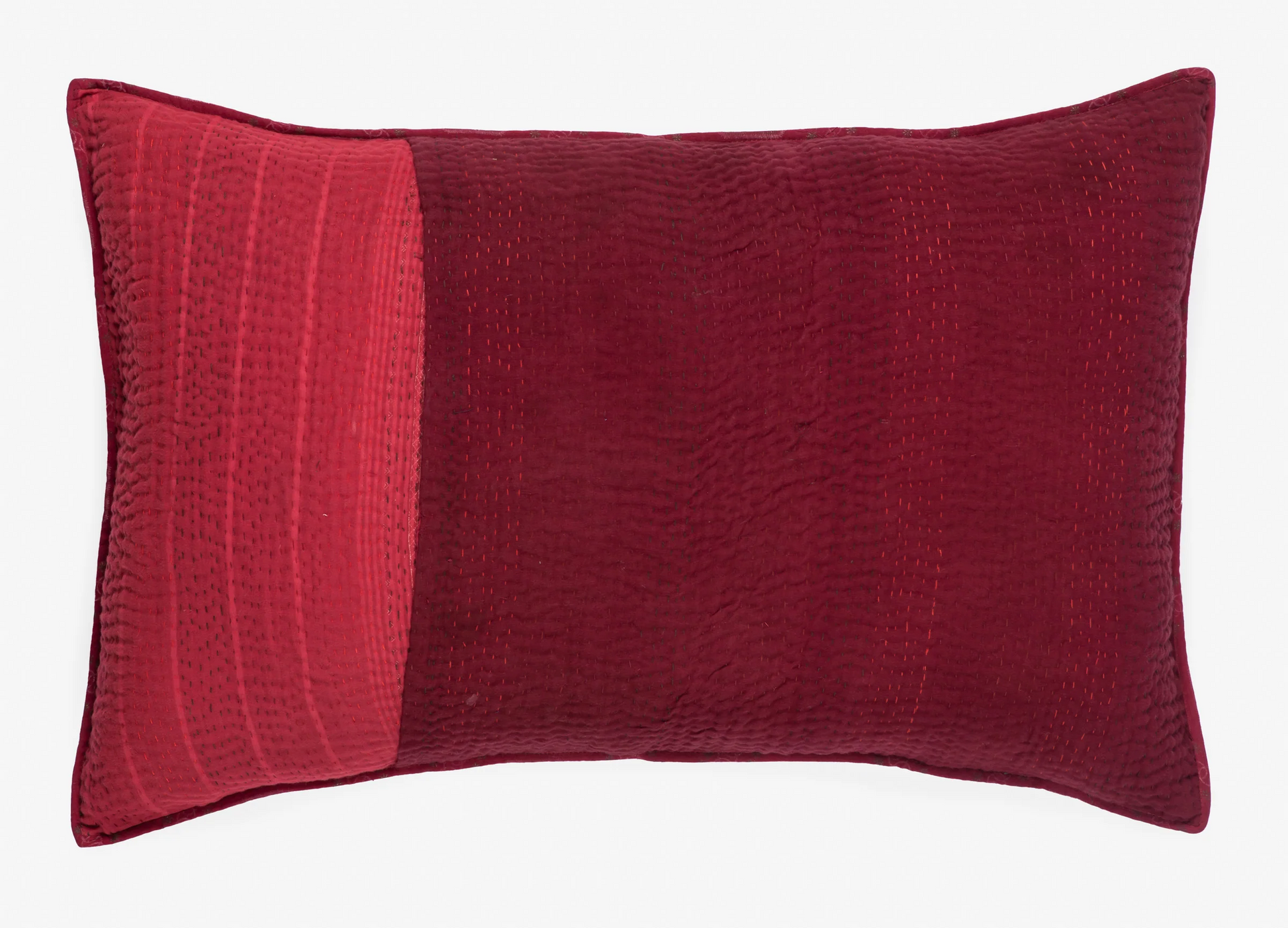 Landscape Handmade Vintage Kantha Pillow Sham -Red -