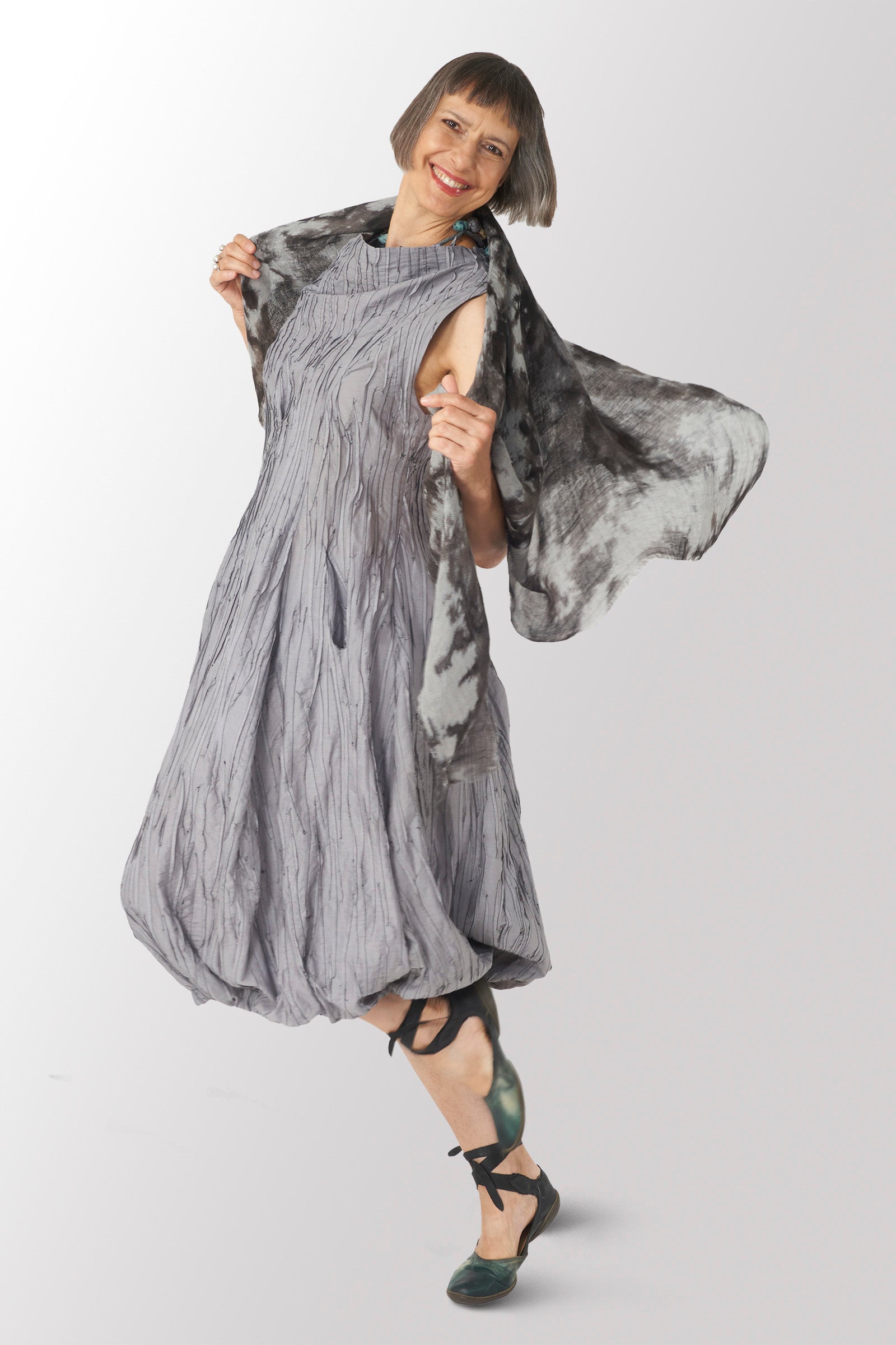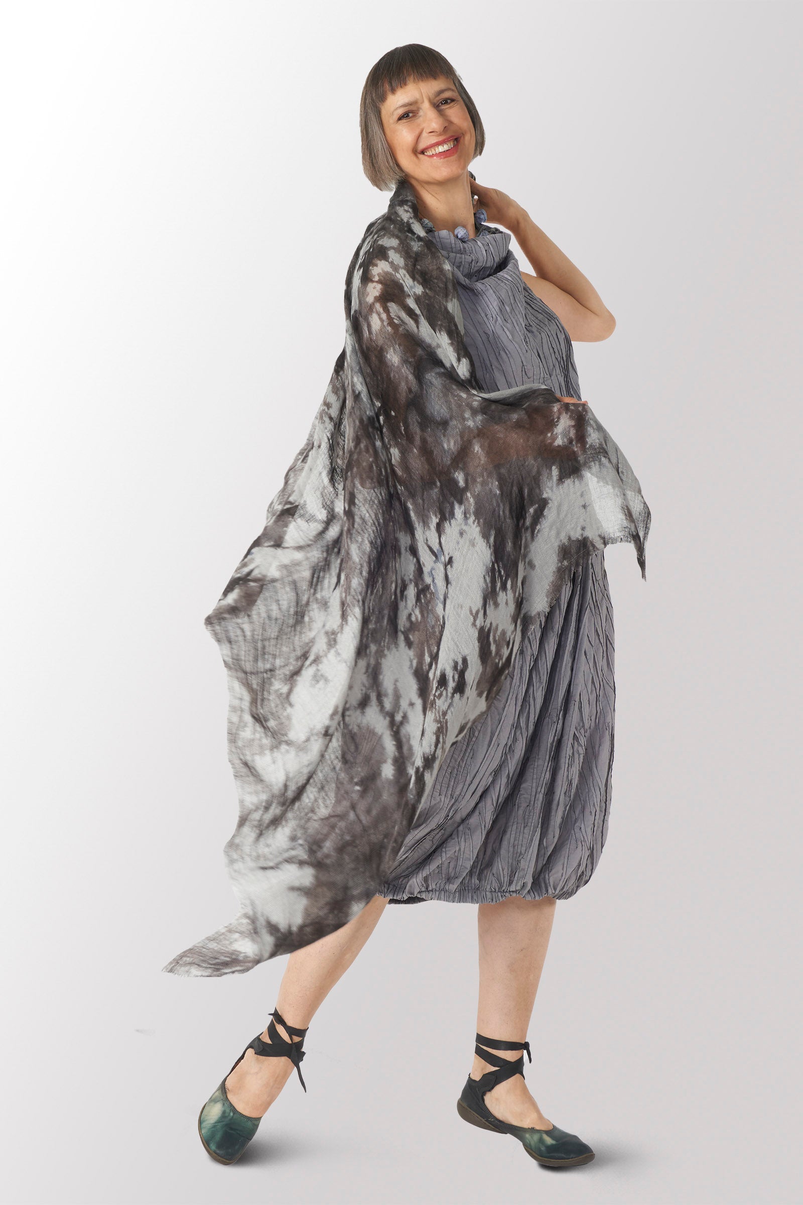 LINEN CLOUD TIE-DYE SQUARE SCARF LARGE - lc1811-gry -