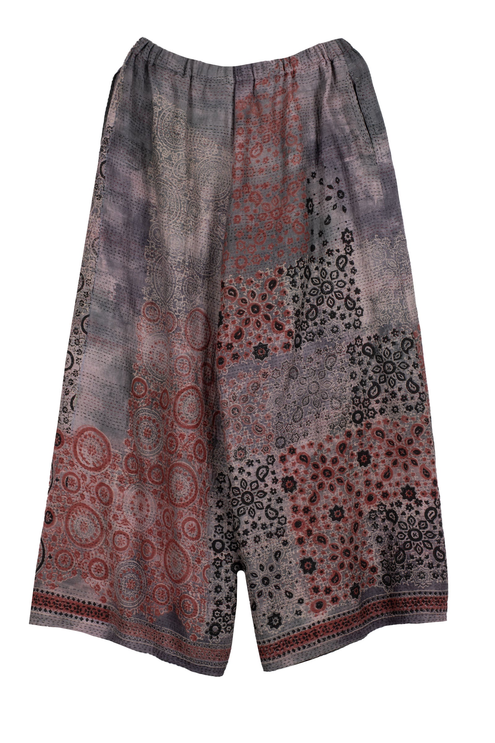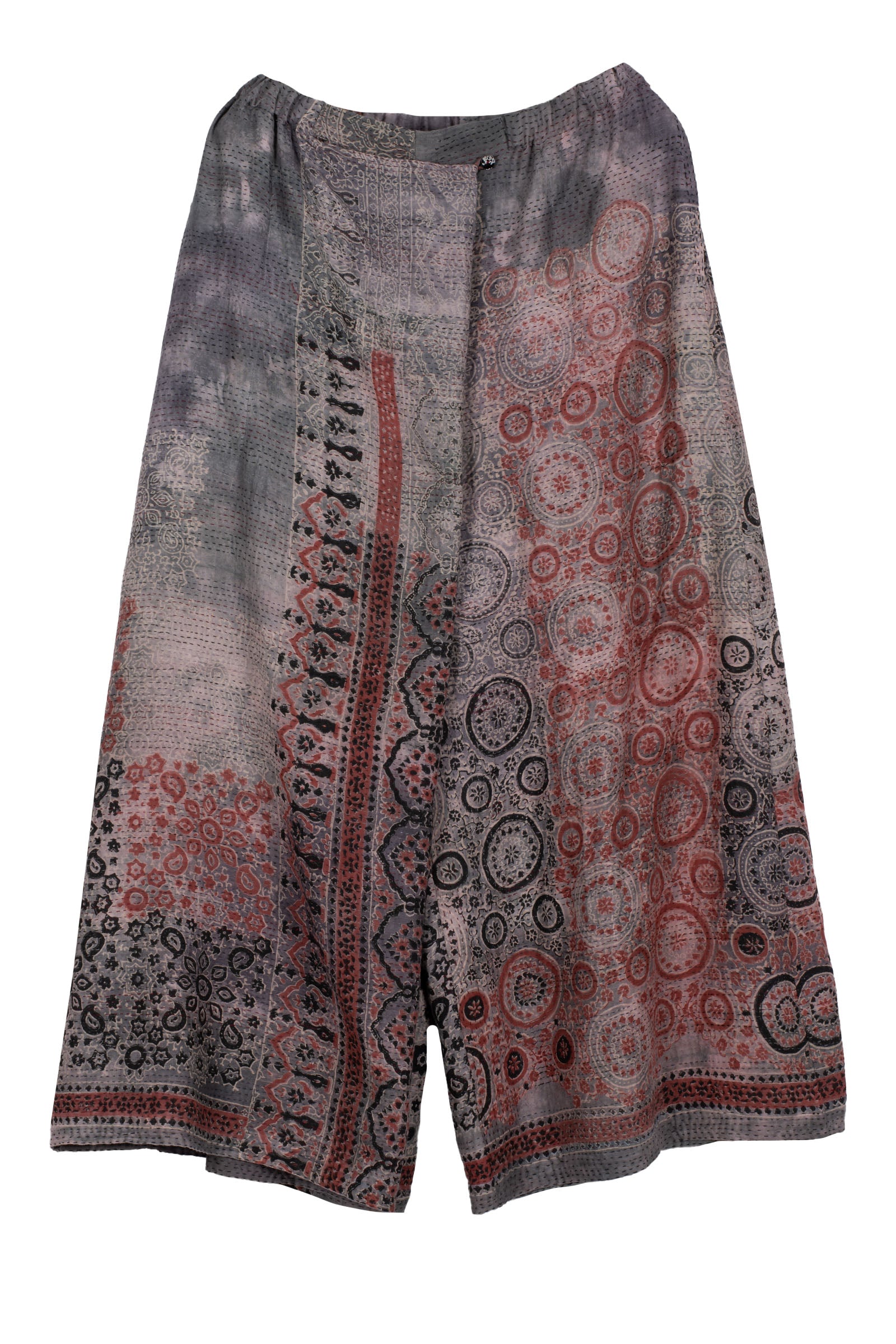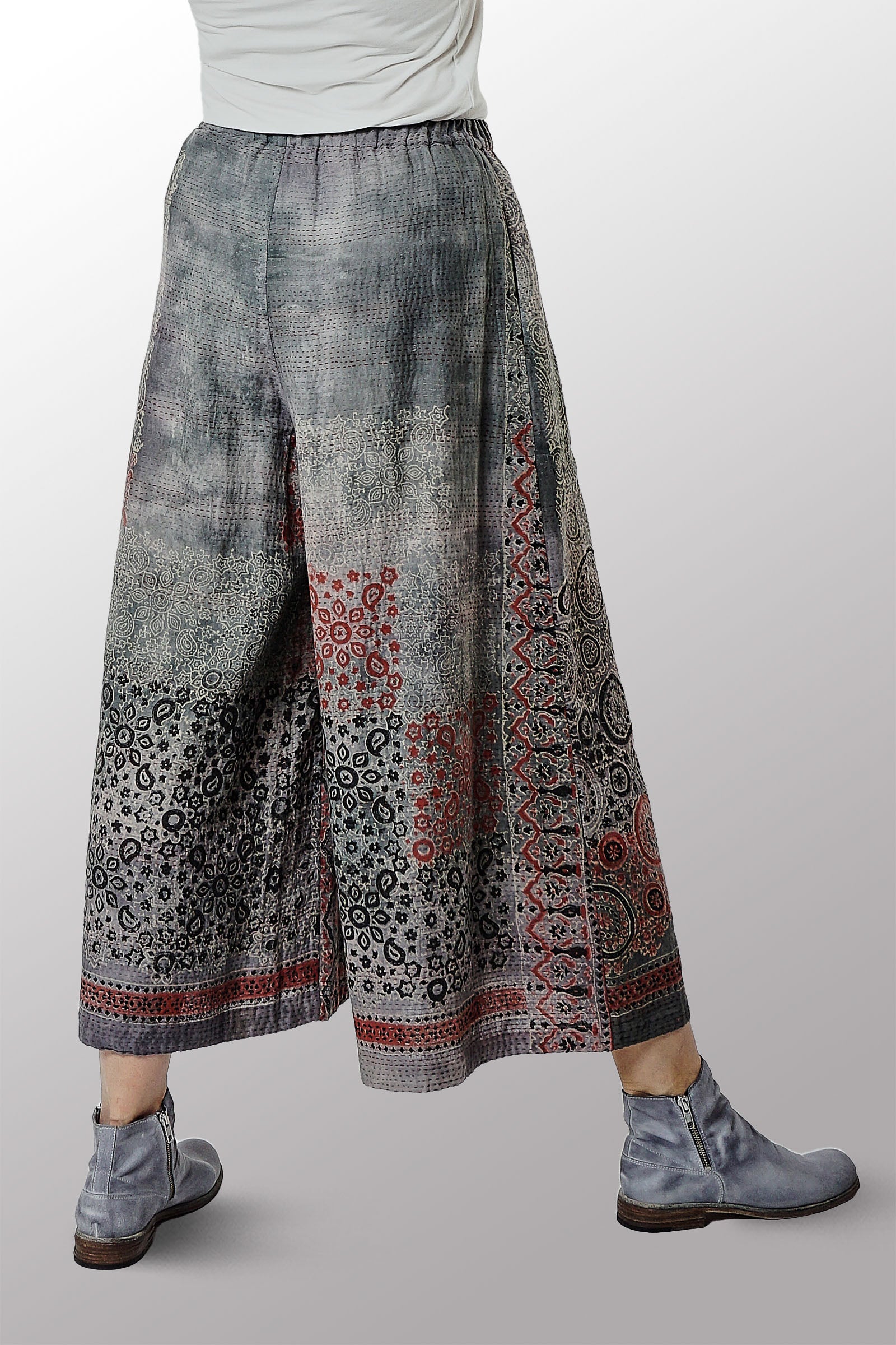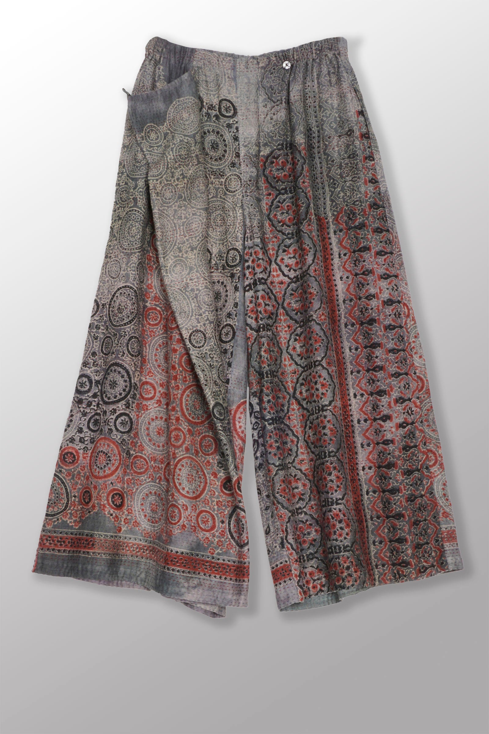 MANHATTAN AJRAKH KANTHA WRAP WIDE PANTS - mh2649-gry -