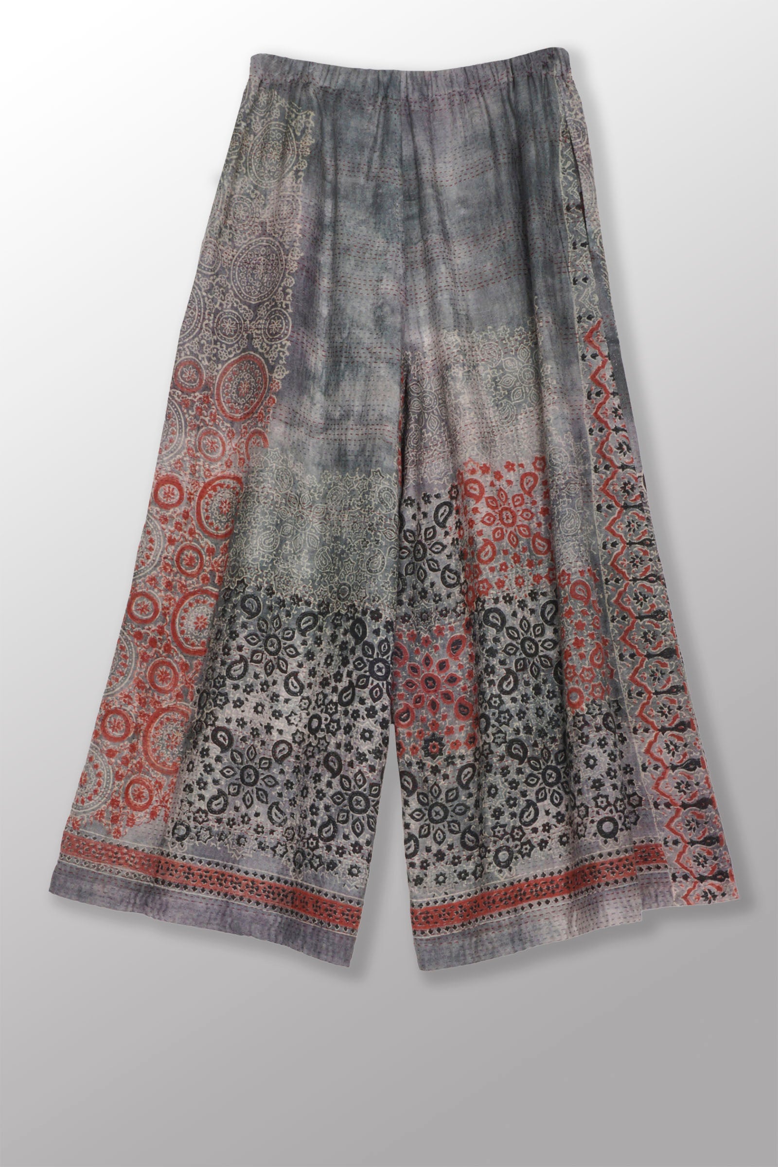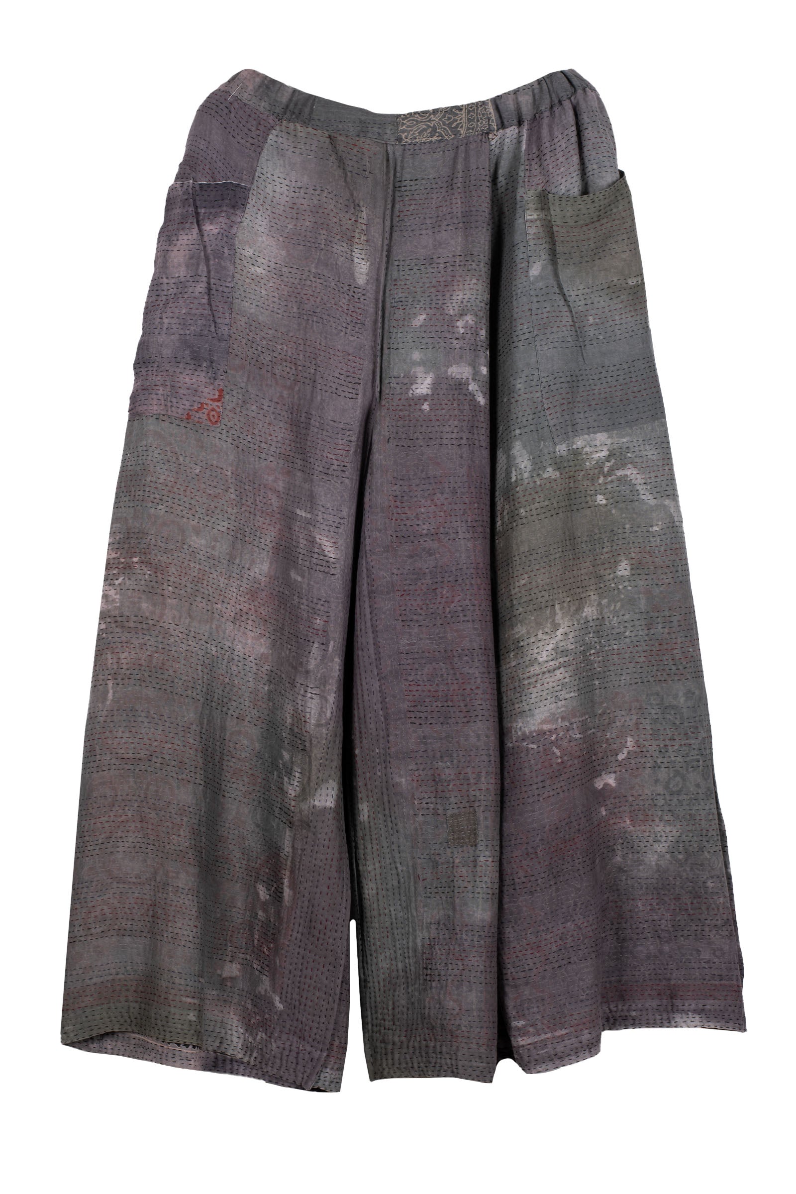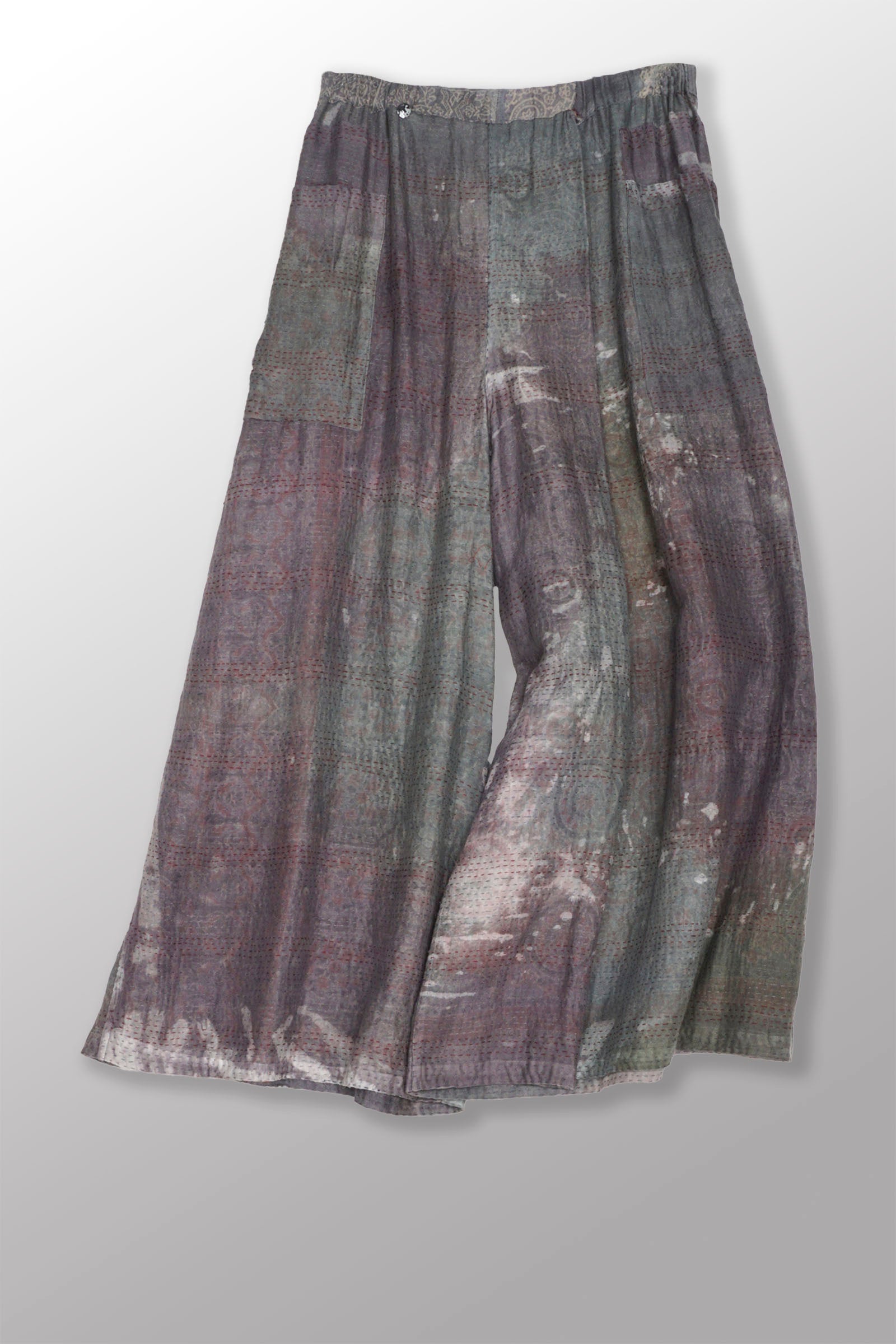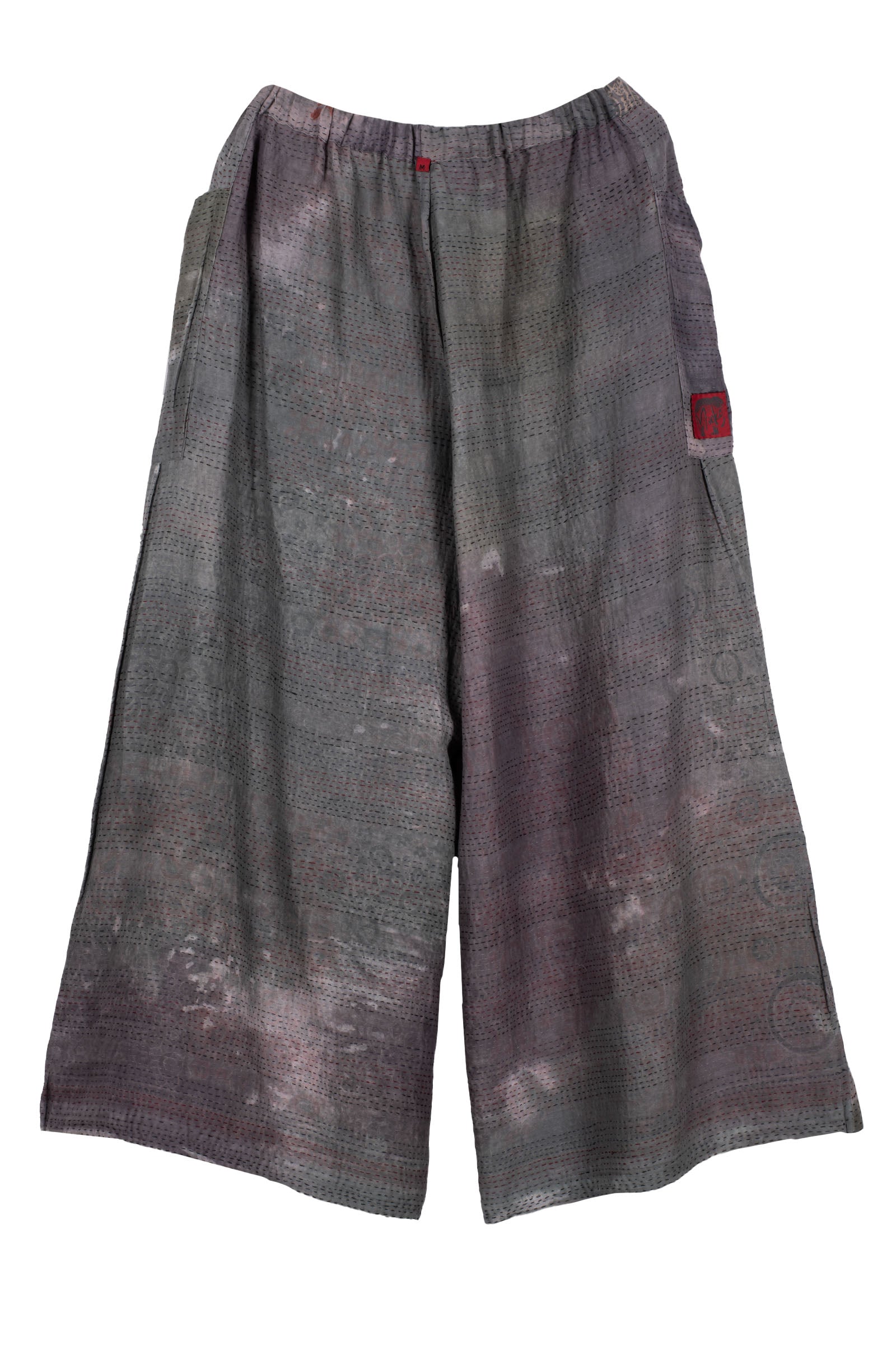 MANHATTAN AJRAKH KANTHA WRAP WIDE PANTS - mh2649-gry -