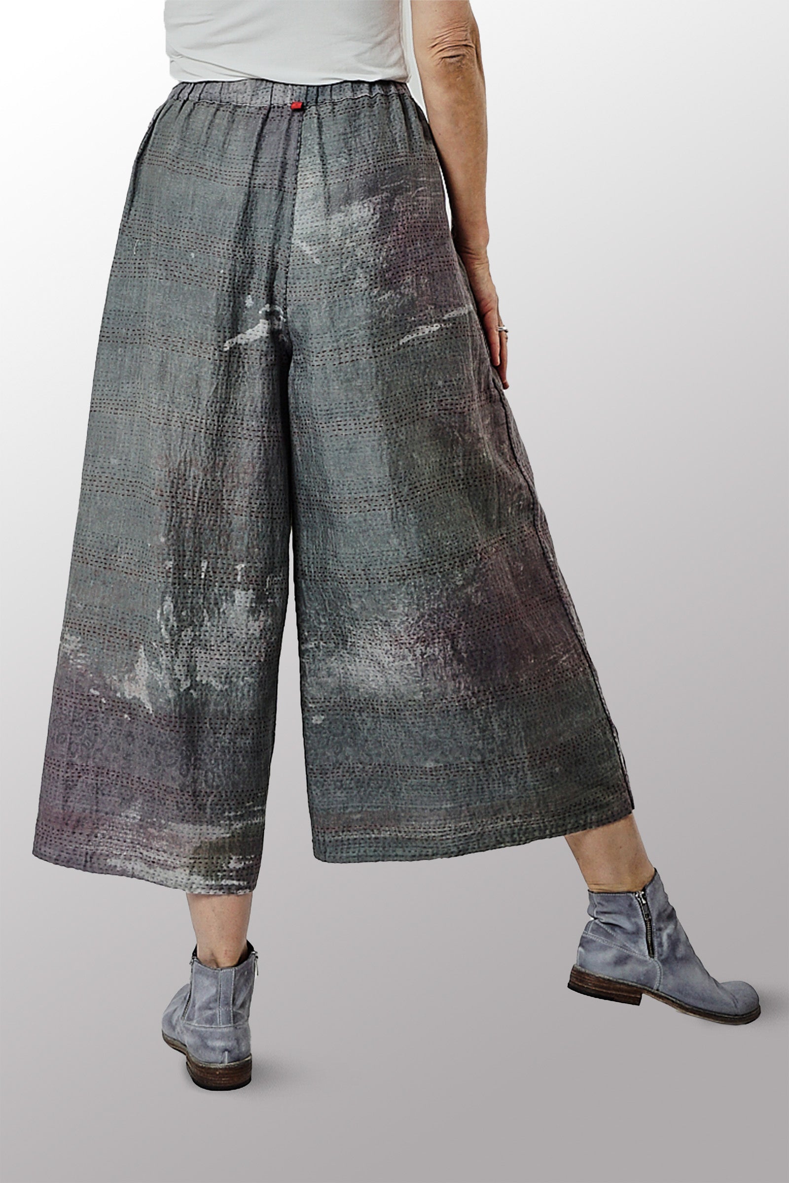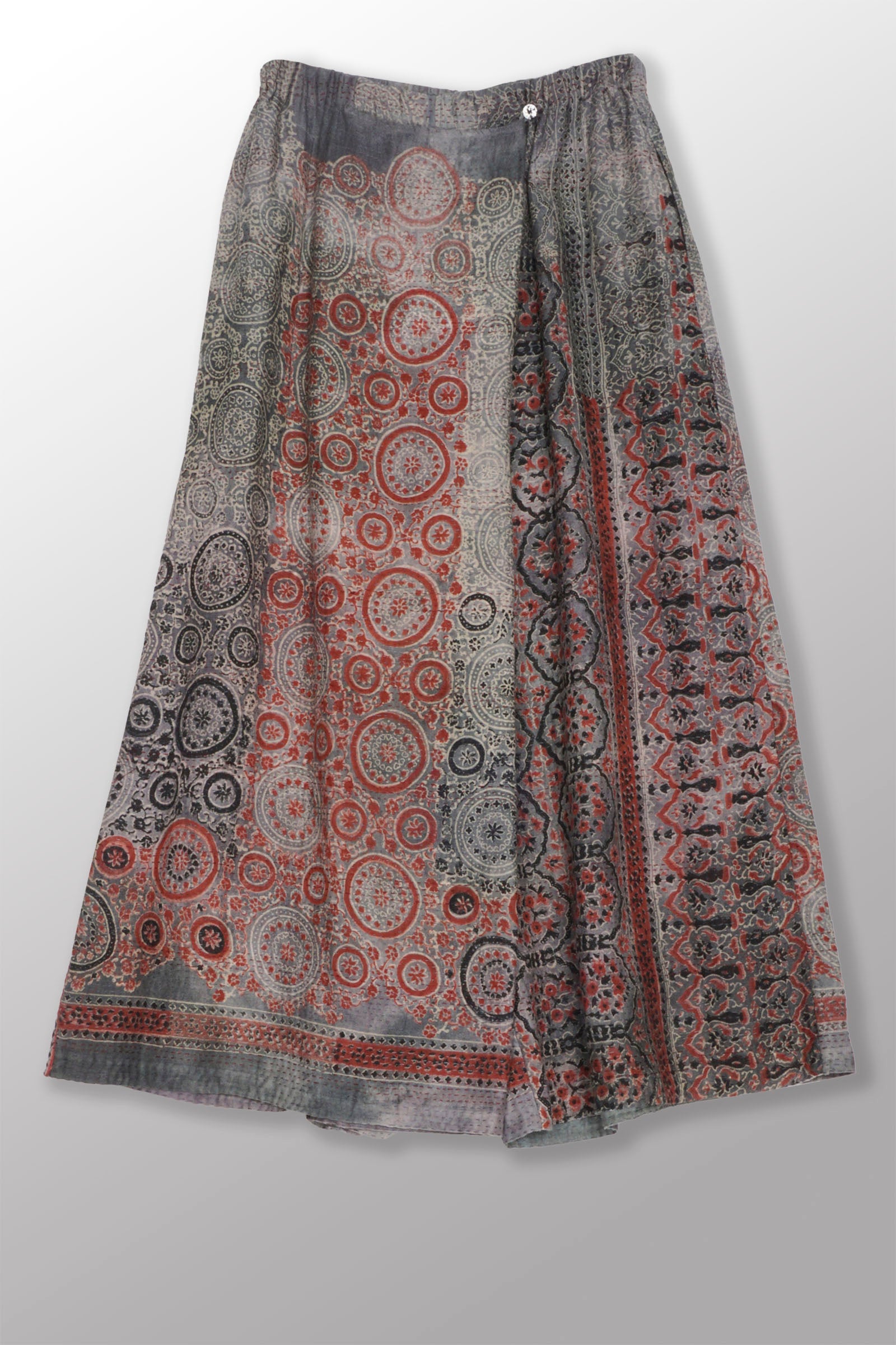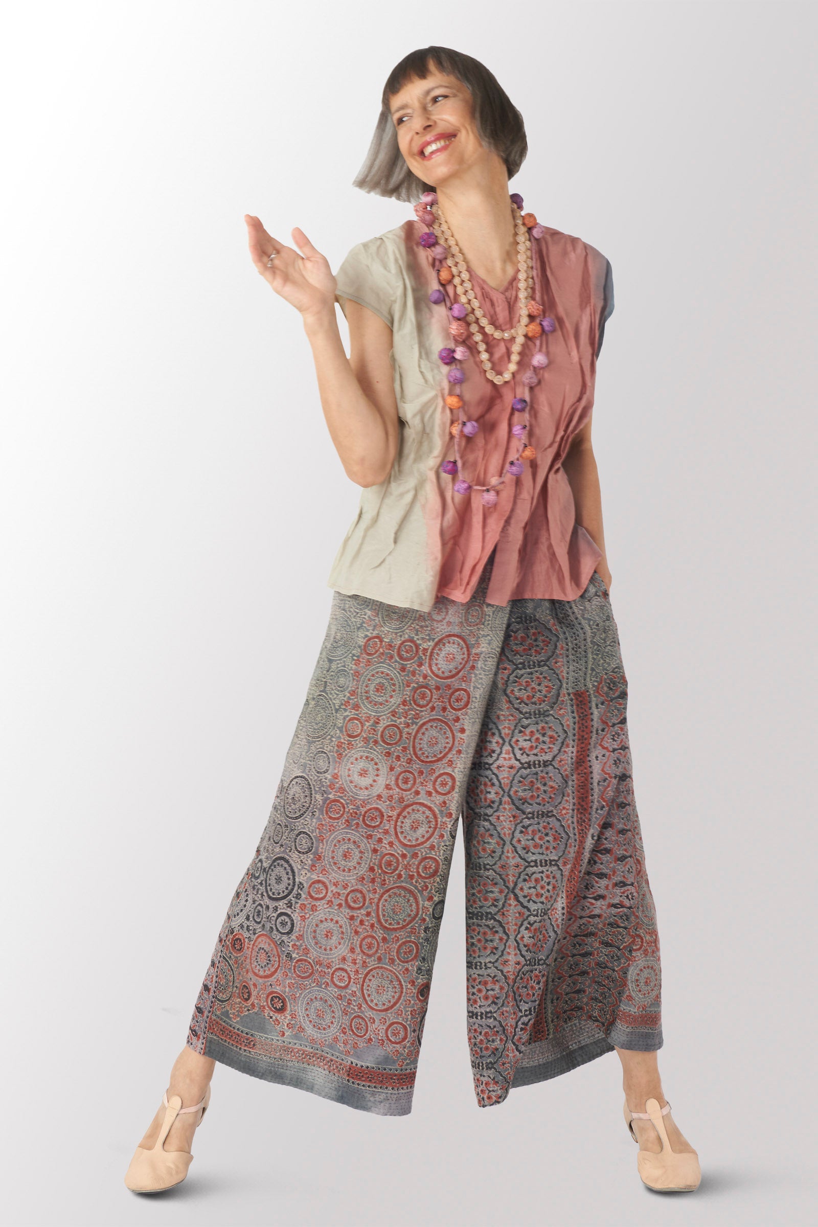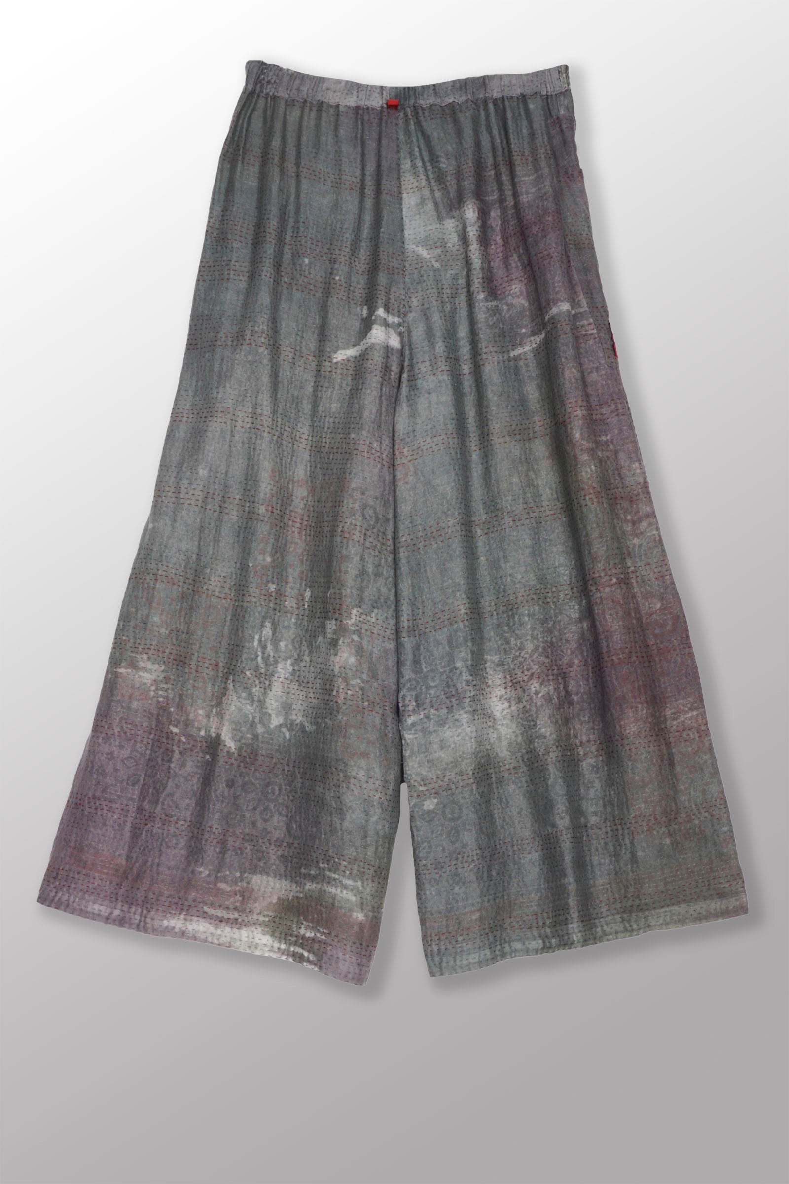 MANHATTAN AJRAKH KANTHA WRAP WIDE PANTS - mh2649-gry -