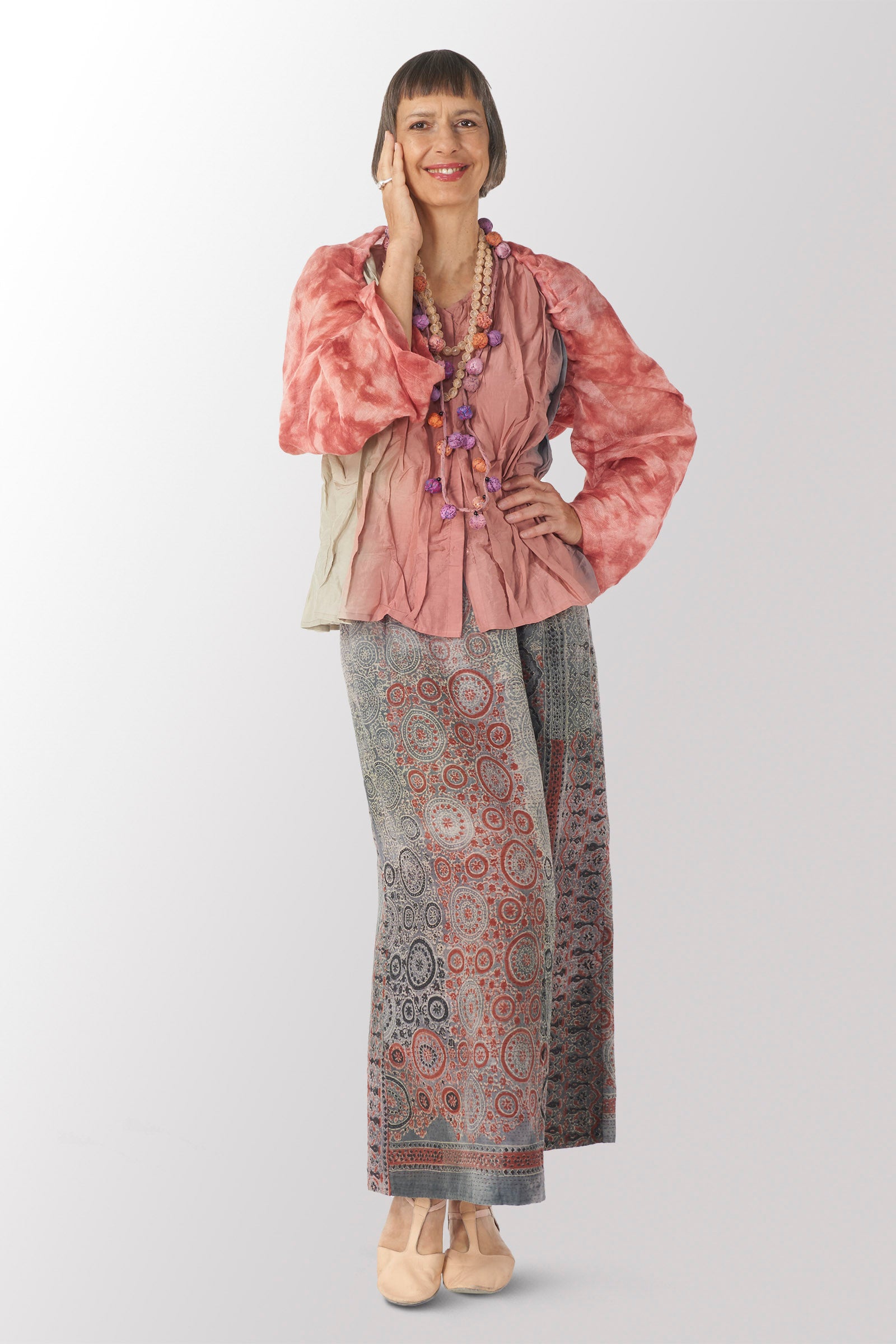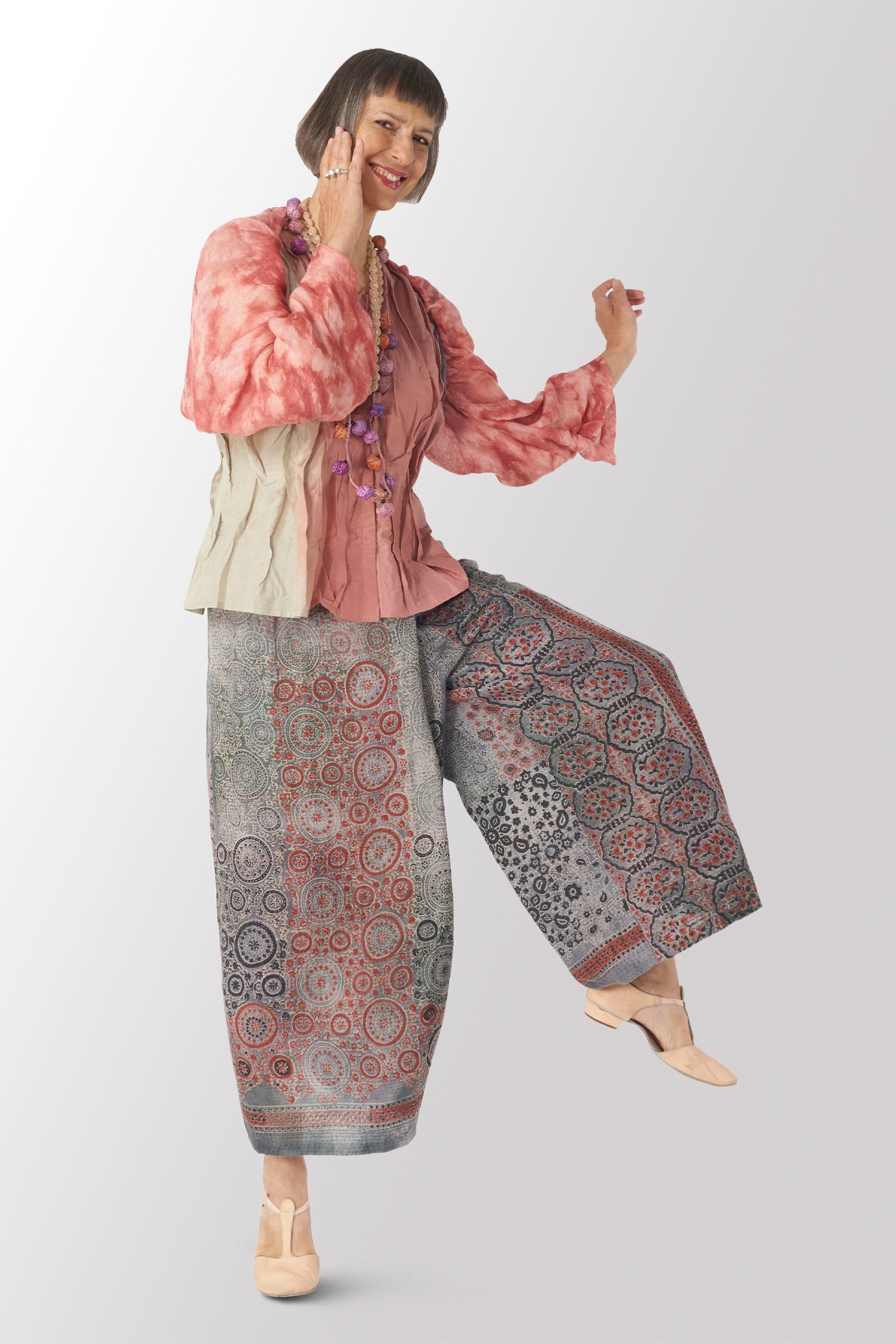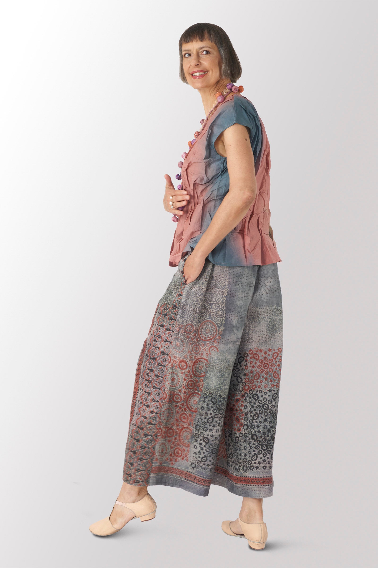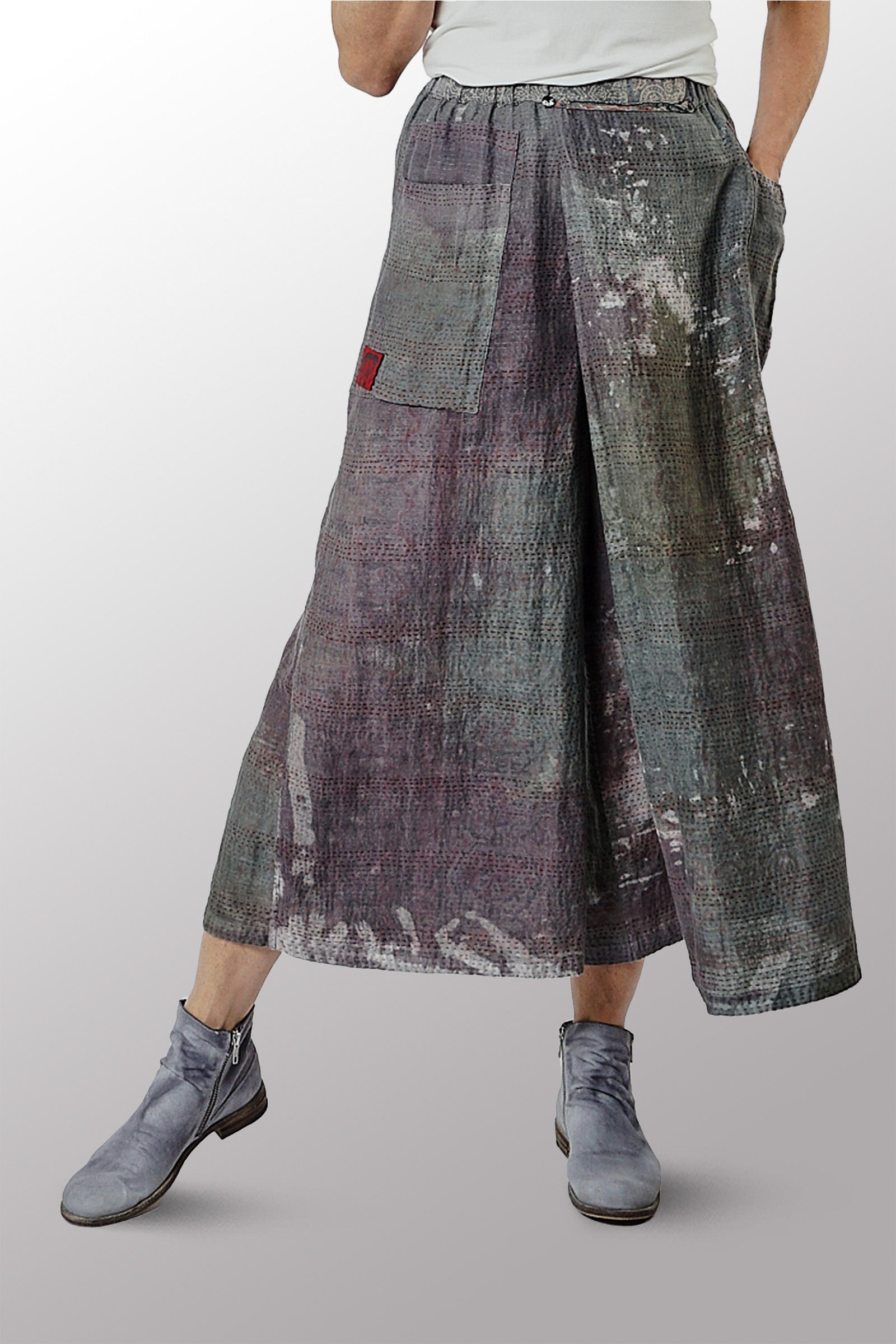 MANHATTAN AJRAKH KANTHA WRAP WIDE PANTS - mh2649-gry -