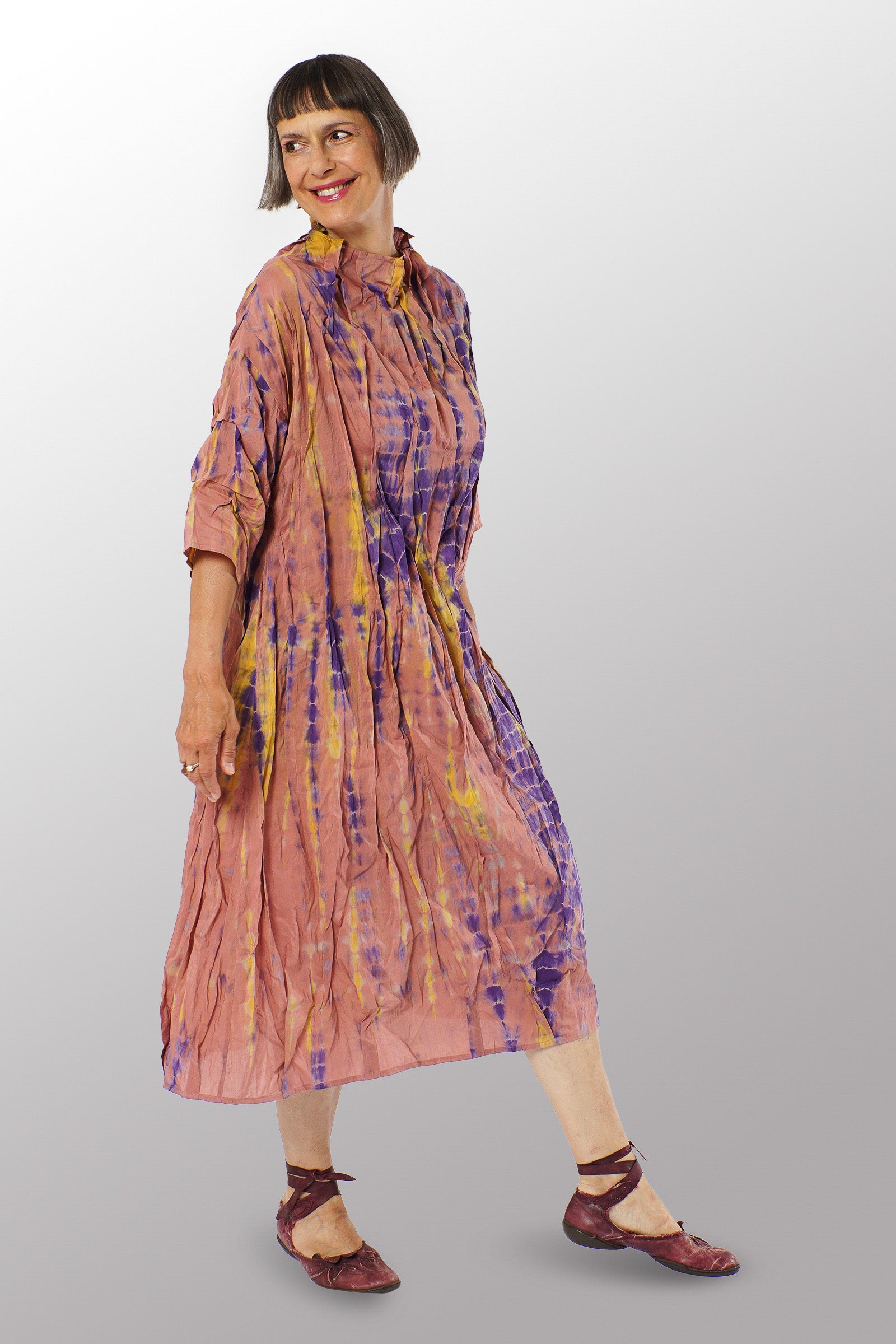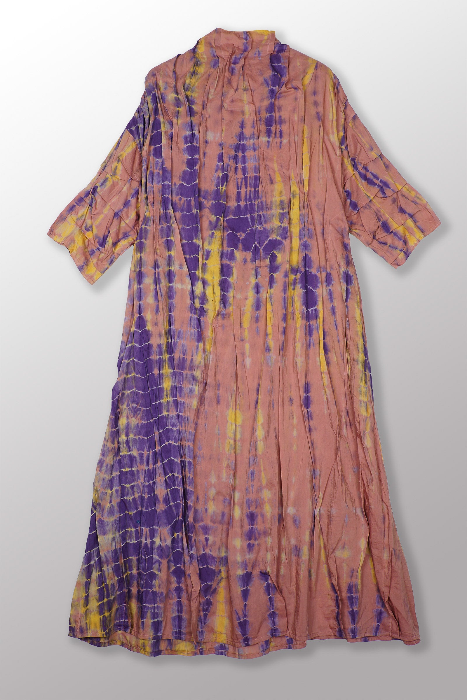 MONE SHIBORI TIE DYE FUNNEL NECK DRESS - ms1455-prp -