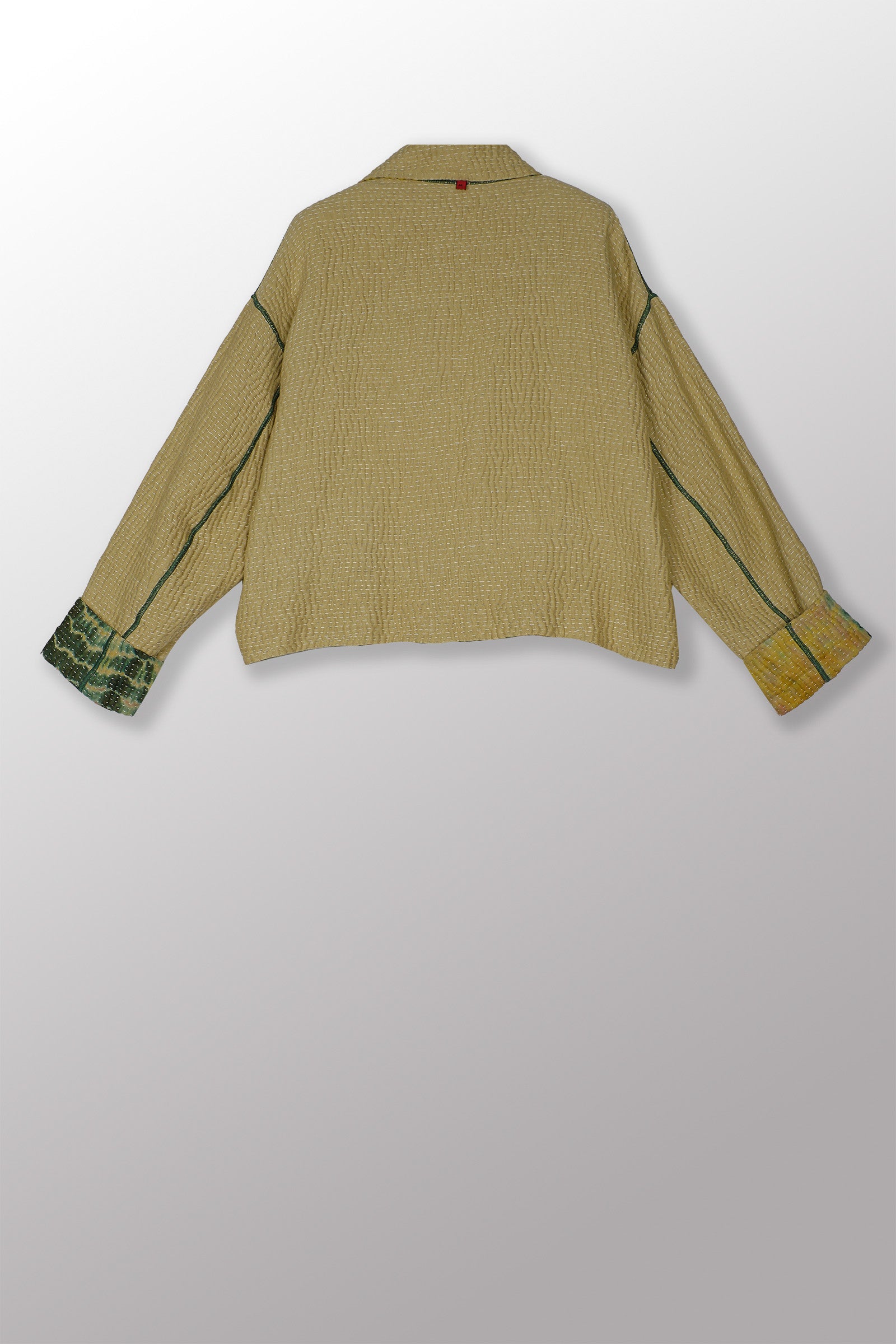 MONE SHIBORI TIE DYE KANTHA LAPELED SINGLE SHORT JACKET - ms5087-grn -
