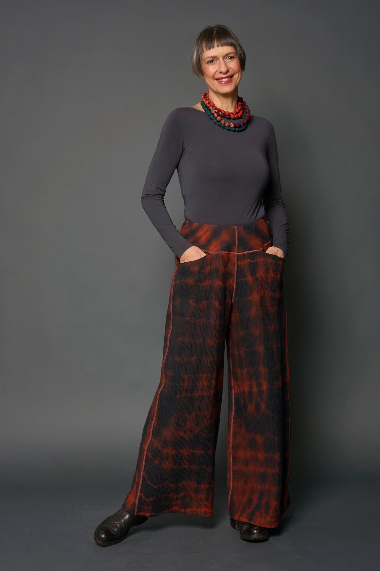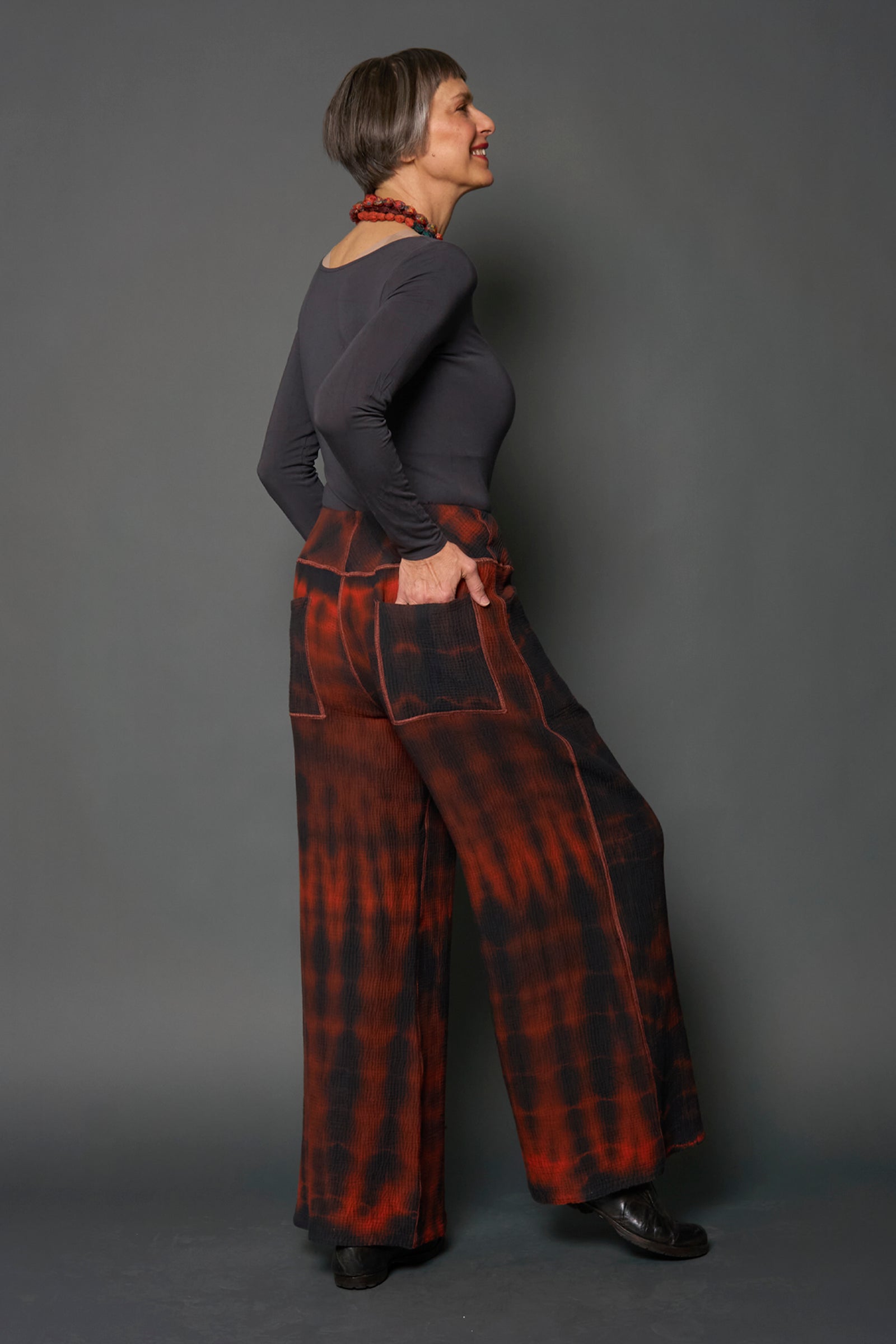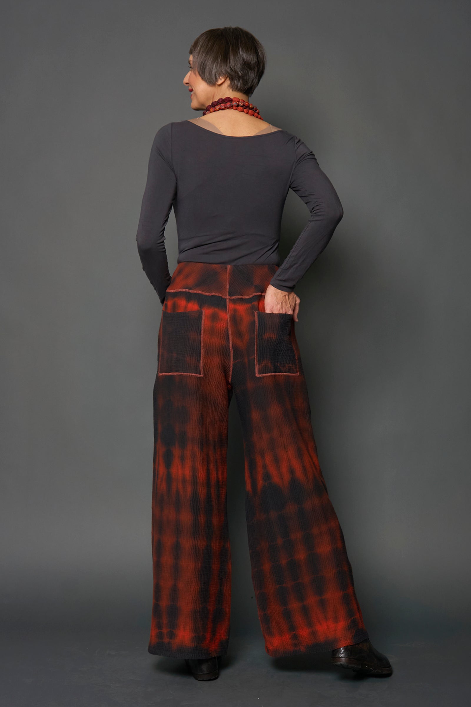 MONE SHIBORI TIE DYE KANTHA MID RISE WIDE LEG PANTS LONG - ms4673-org -