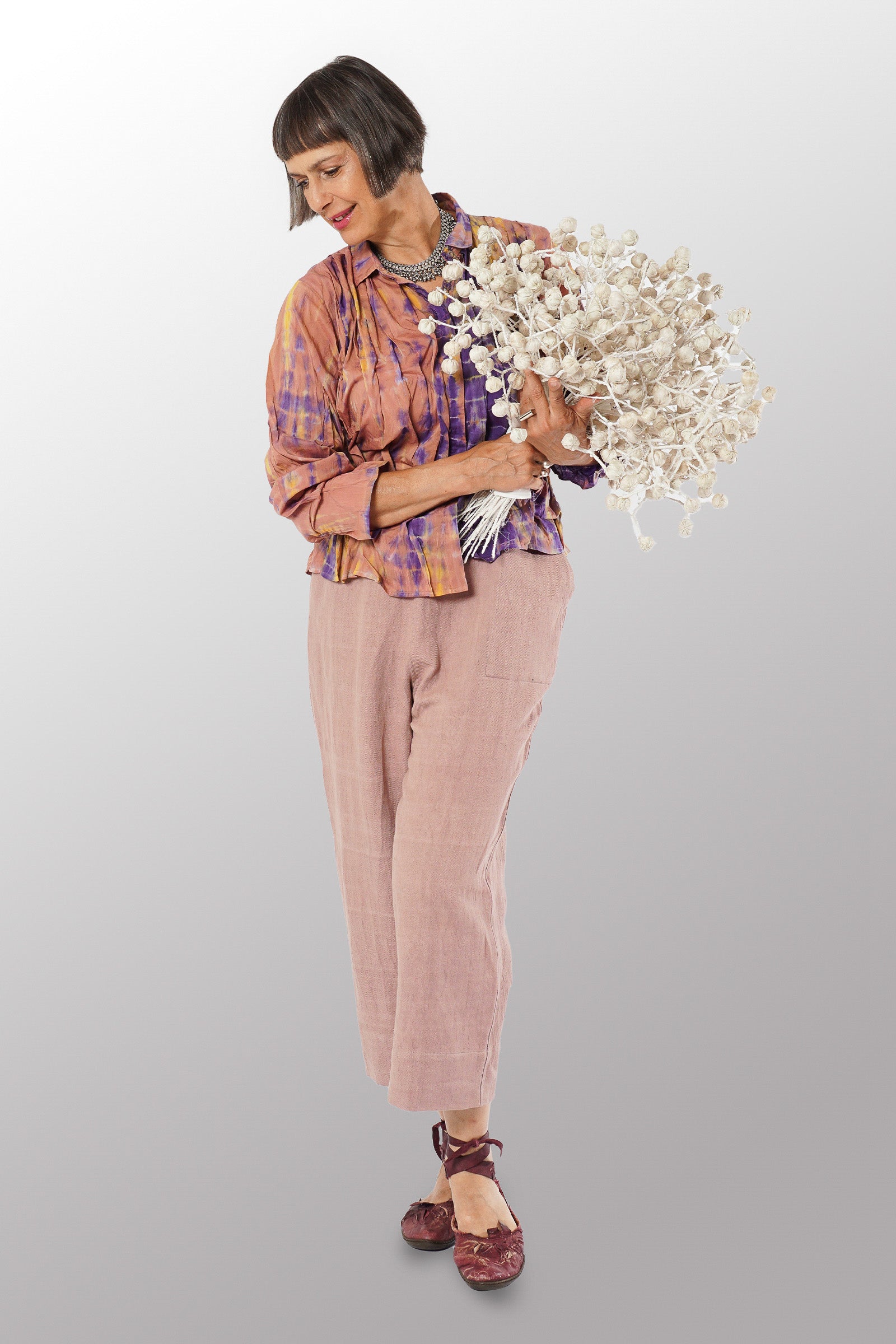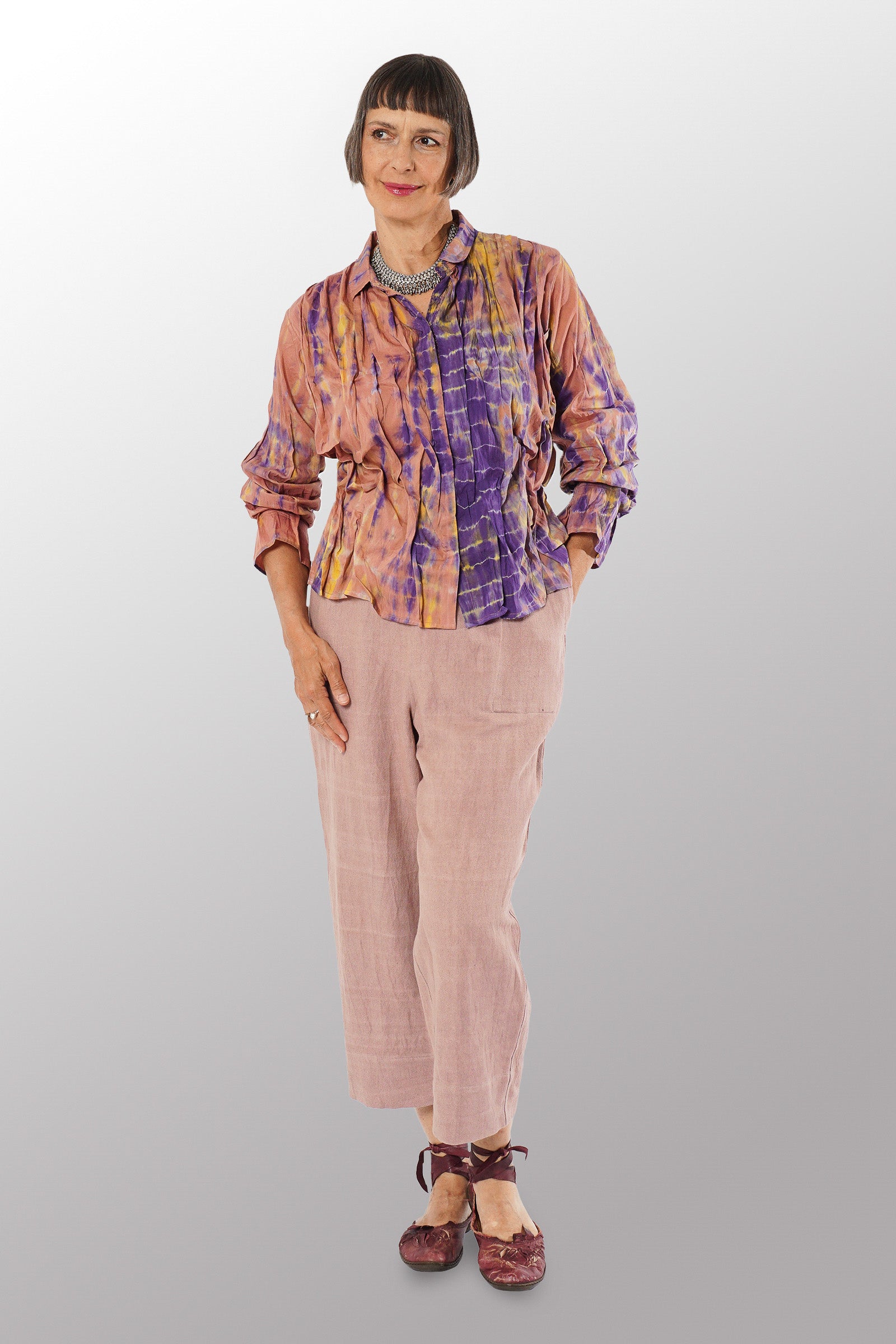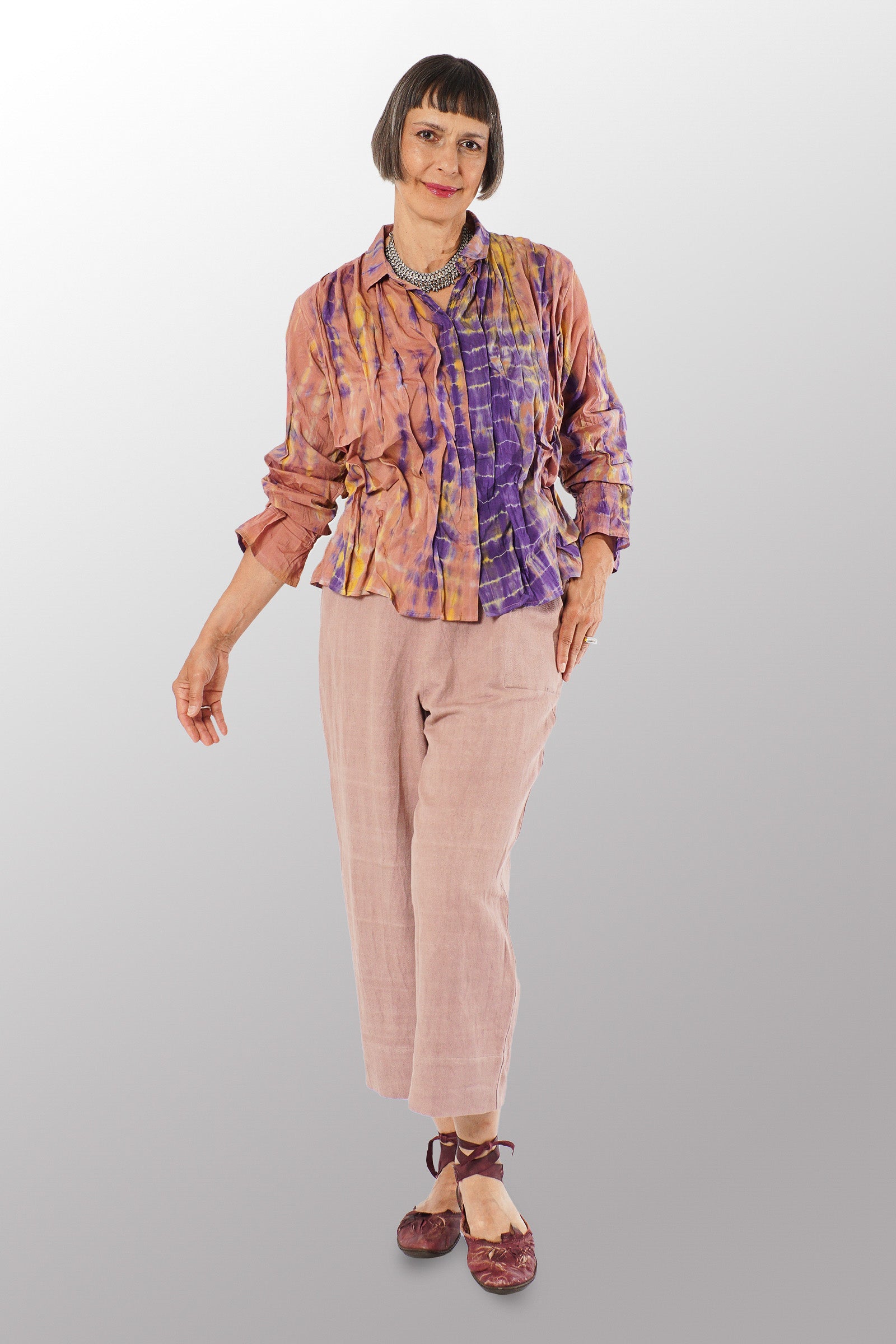MONE SHIBORI TIE DYE WAVY TUCK CROPPED SHIRT - ms1579-prp -
