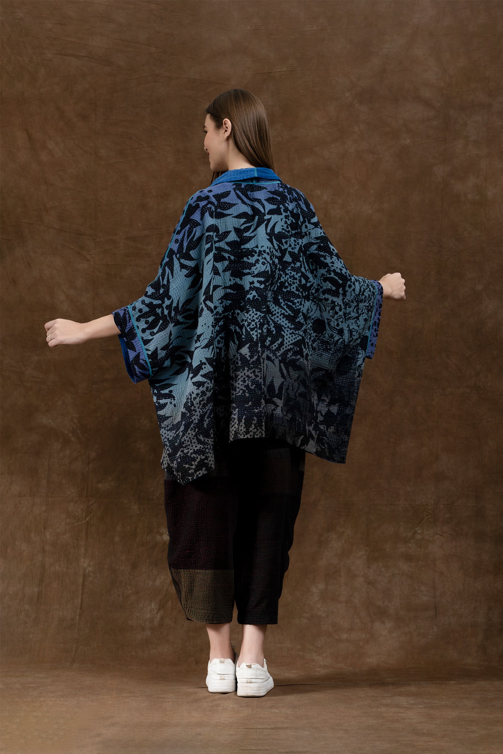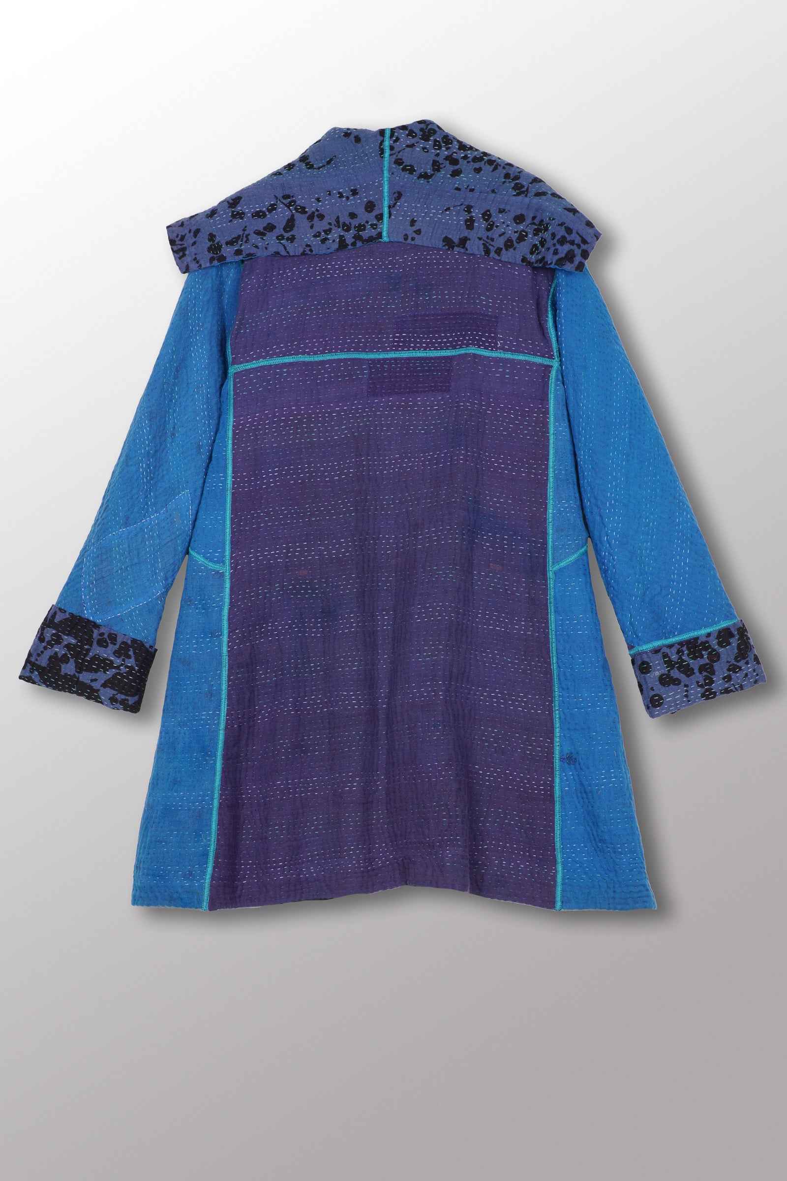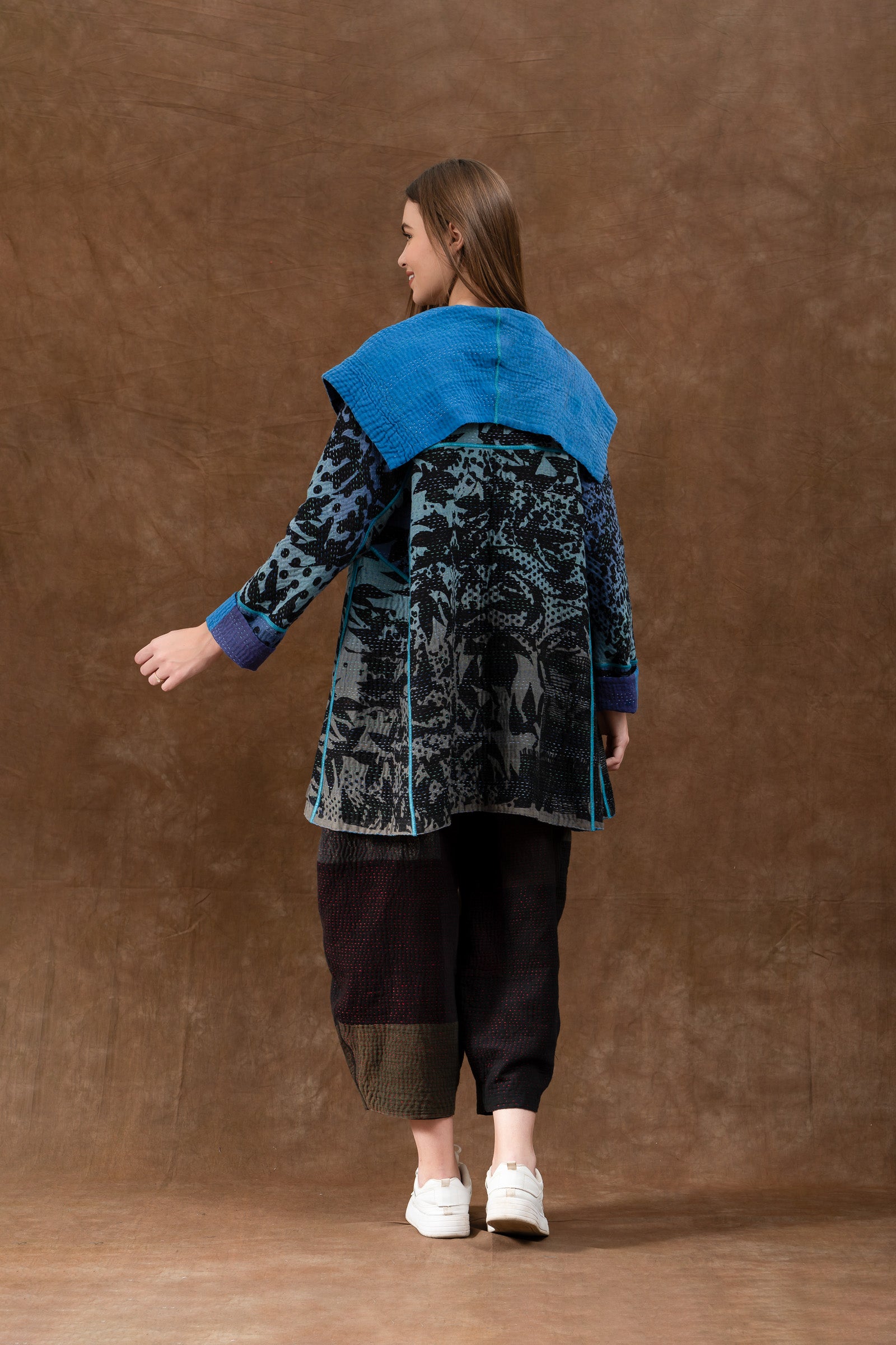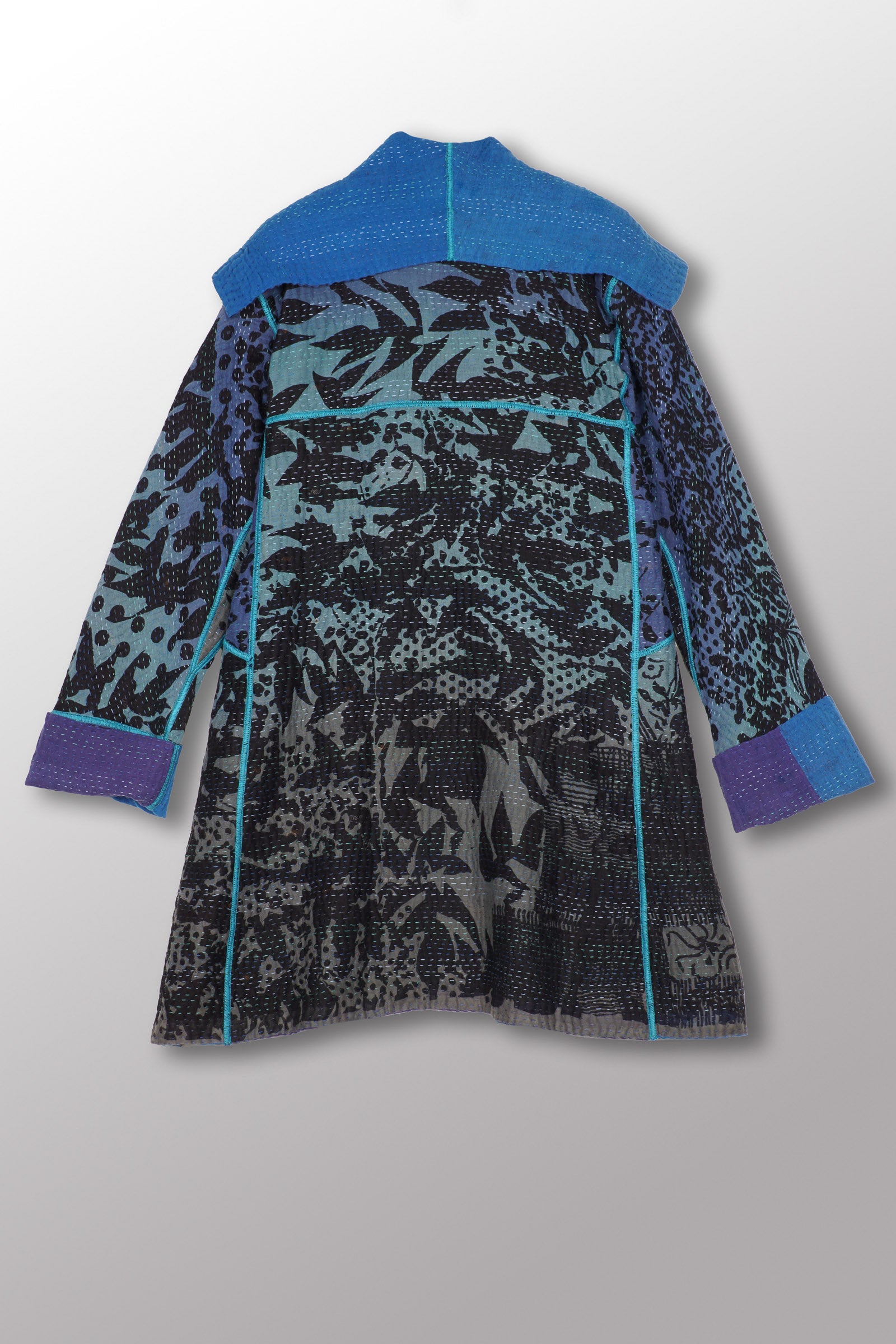 MONOTONE TWILIGHT PRINT KANTHA A-LINE COAT P - tp4336-cblua -
