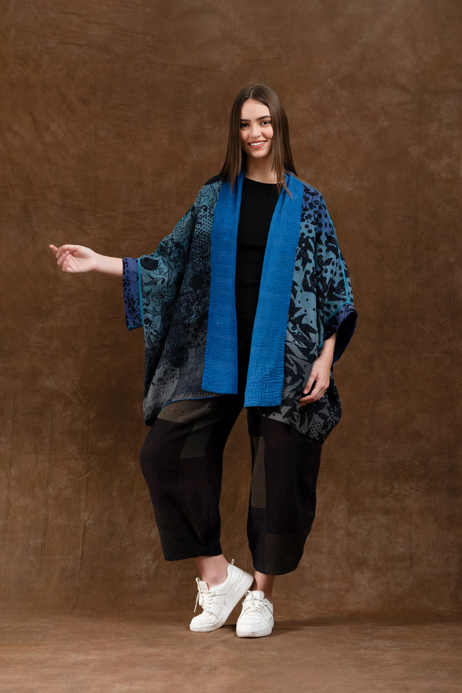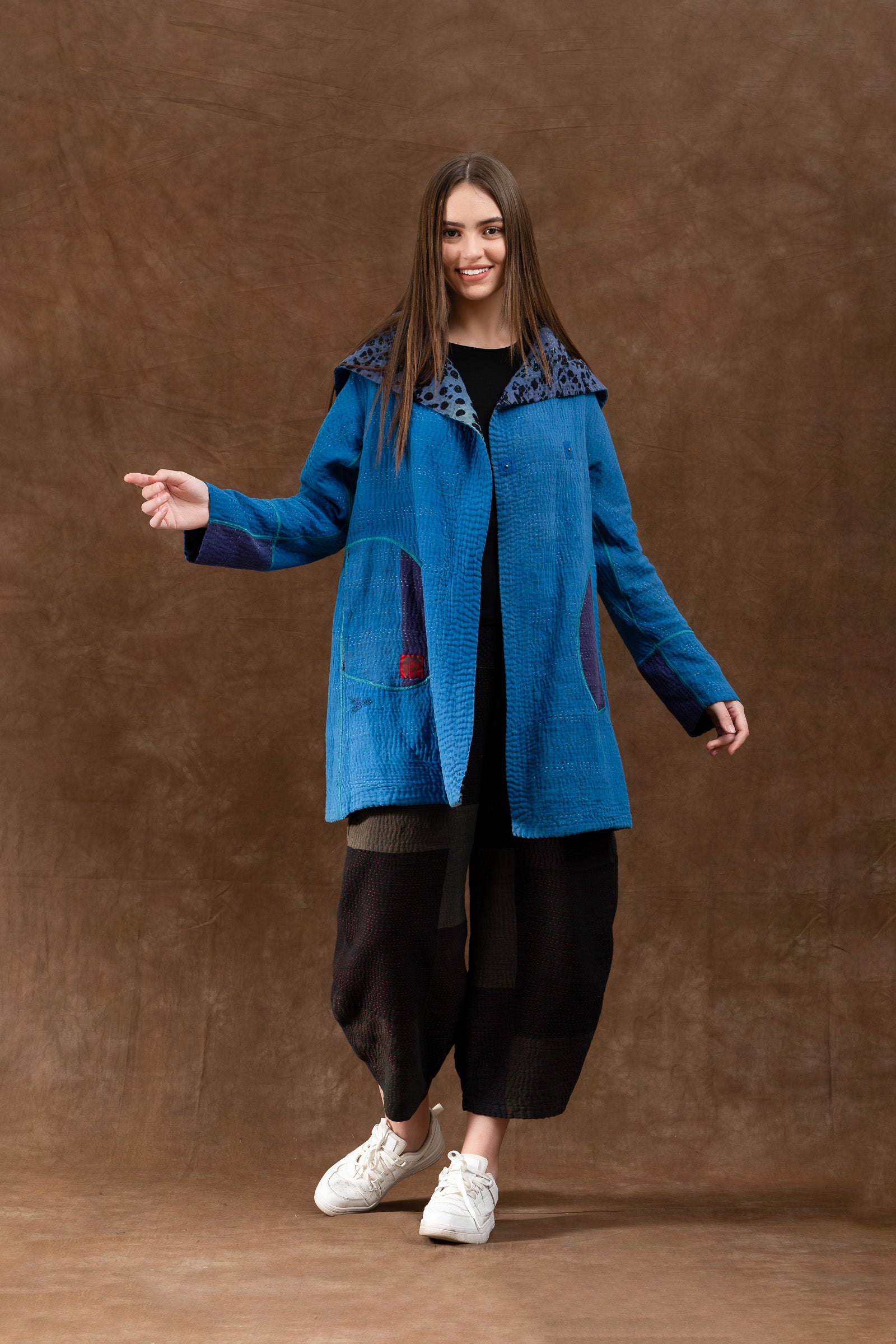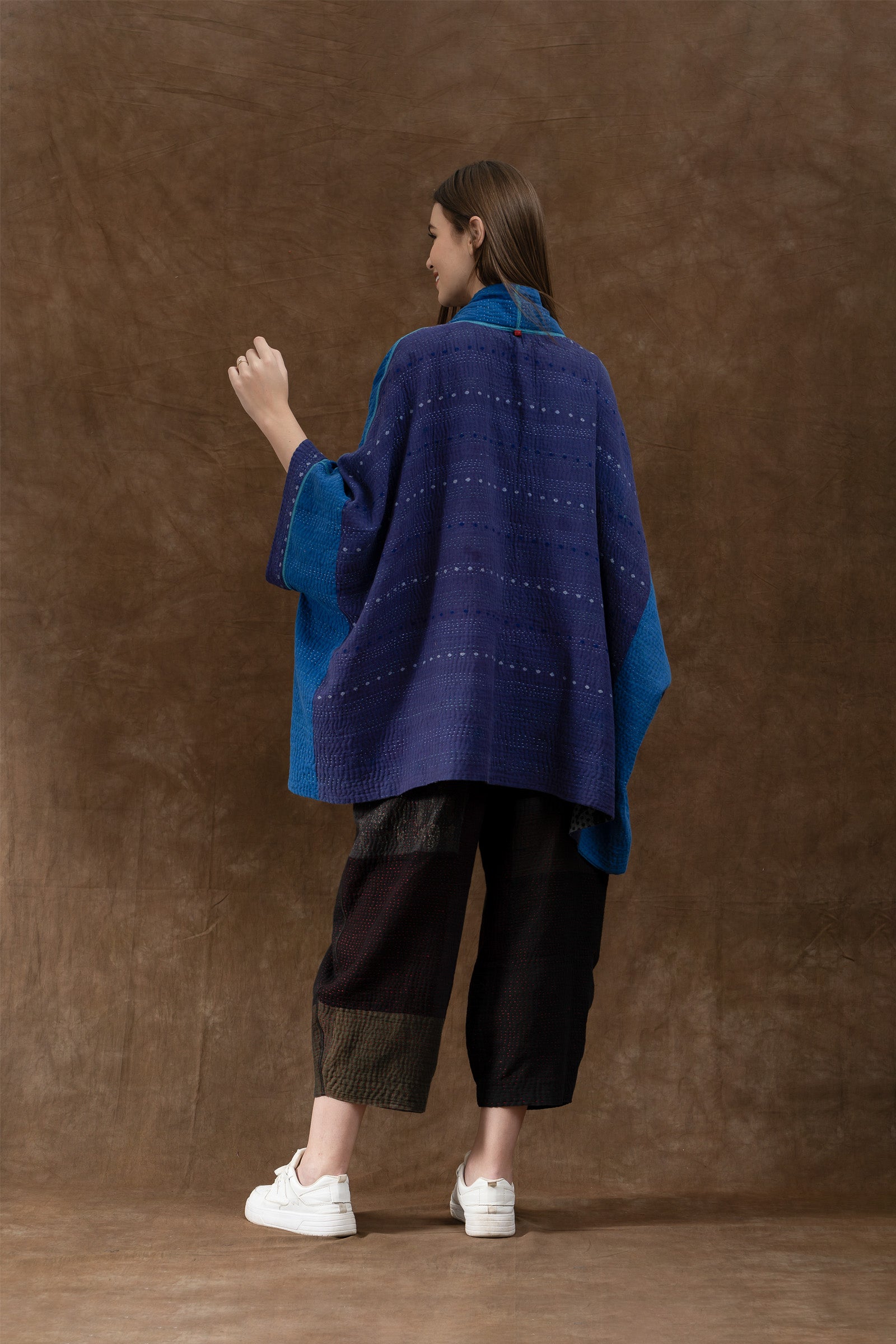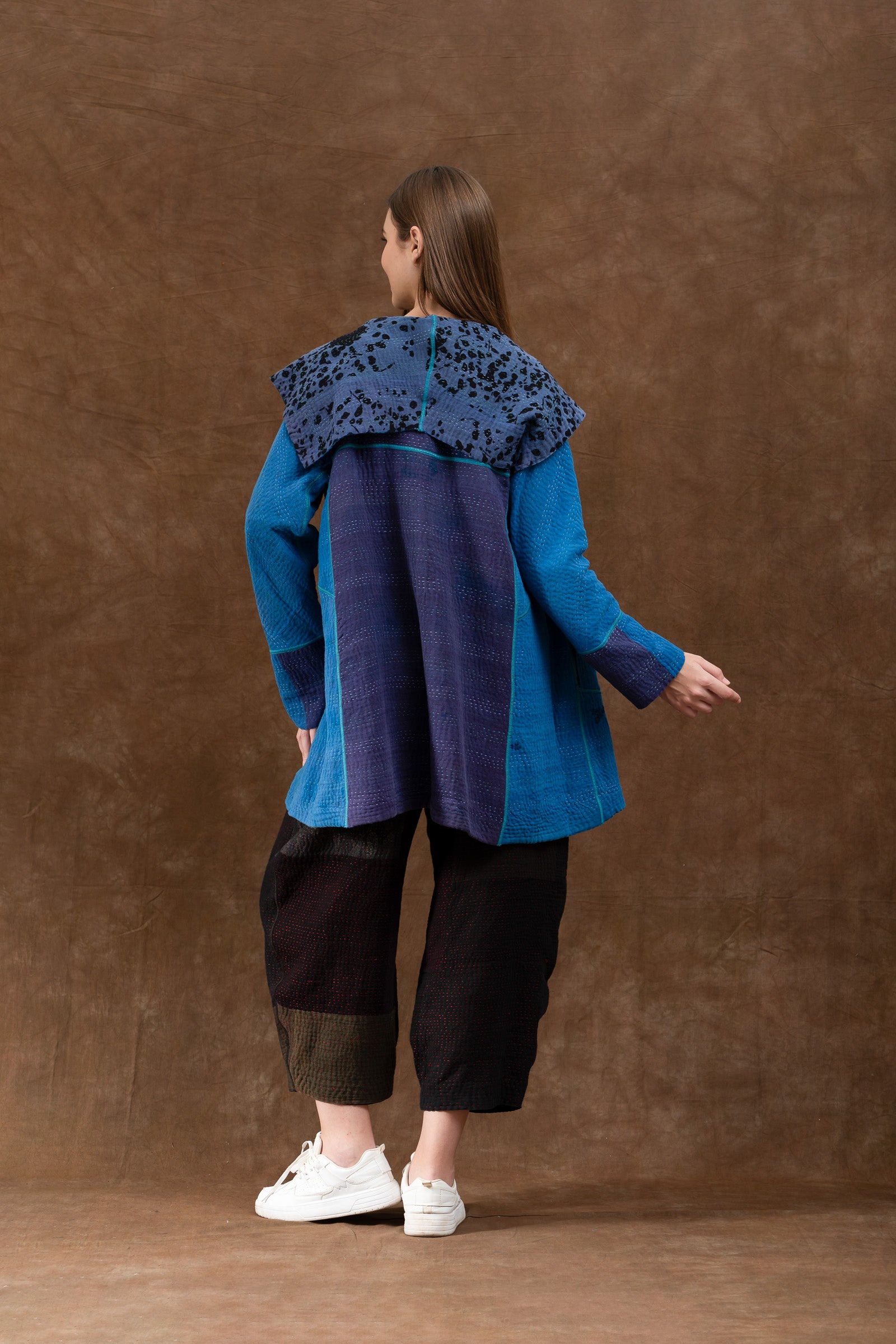 MONOTONE TWILIGHT PRINT KANTHA A-LINE COAT P - tp4336-cblua -