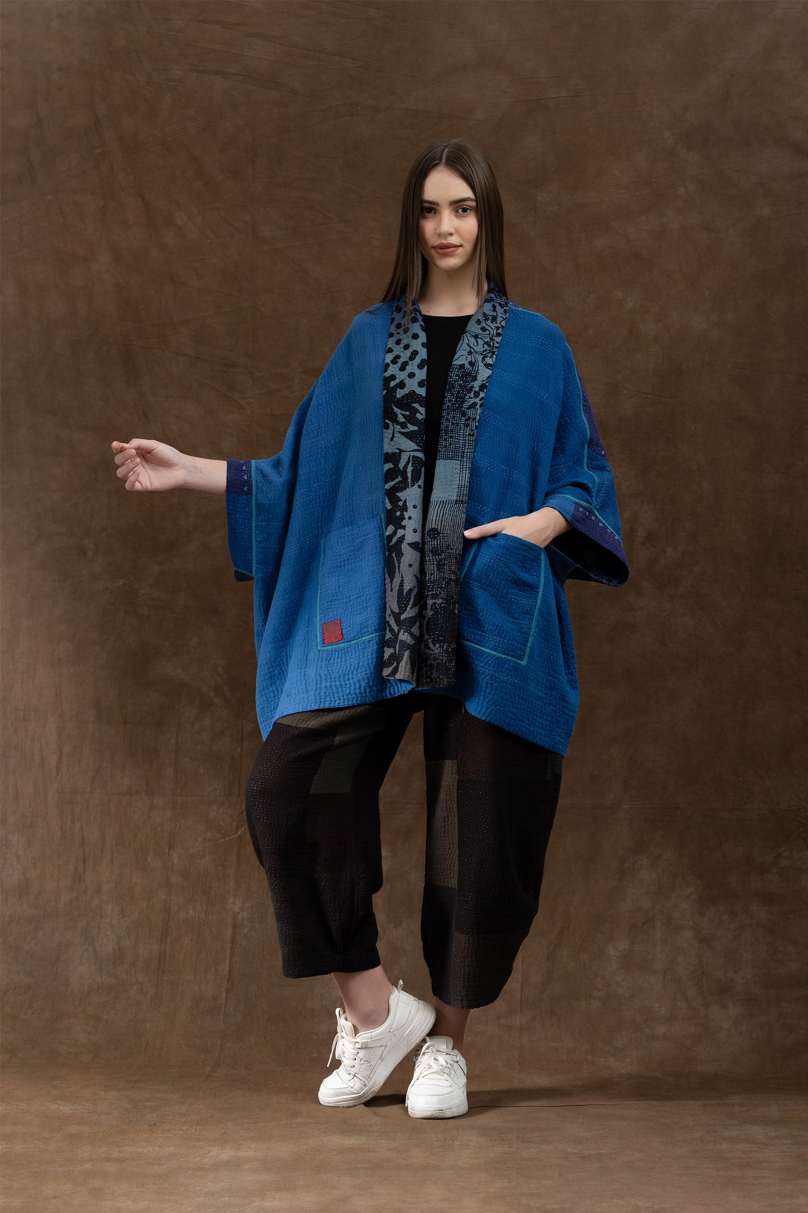 4 Layer Vintage Saris with Hand Stitches on Entire Garment - Reversible