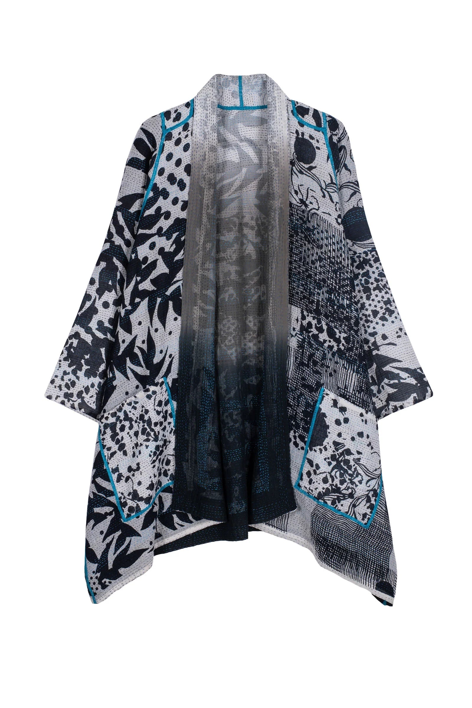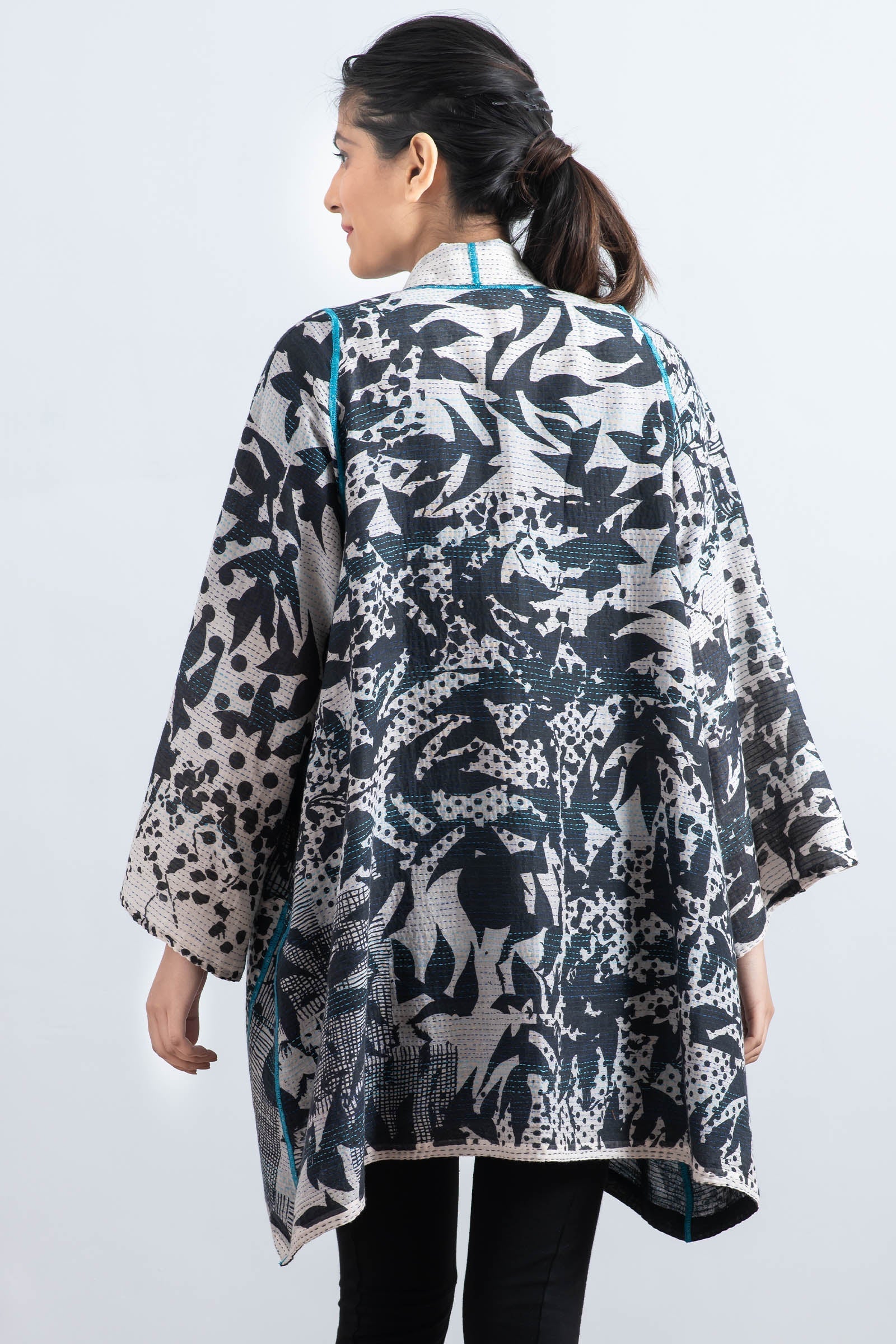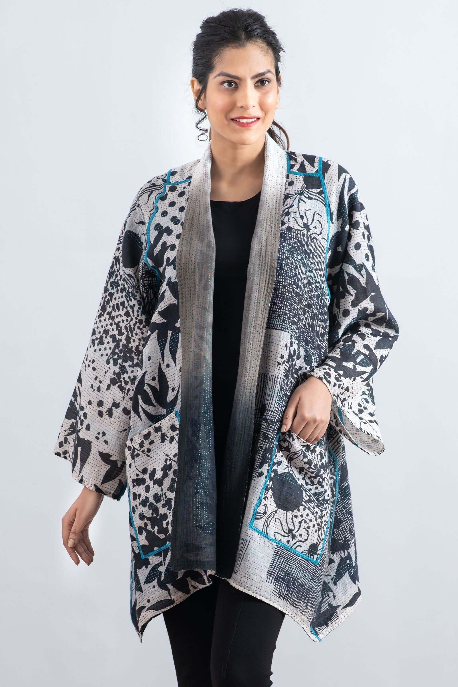 MONOTONE TWILIGHT PRINT KANTHA A-LINE JKT - tp2003-wht -