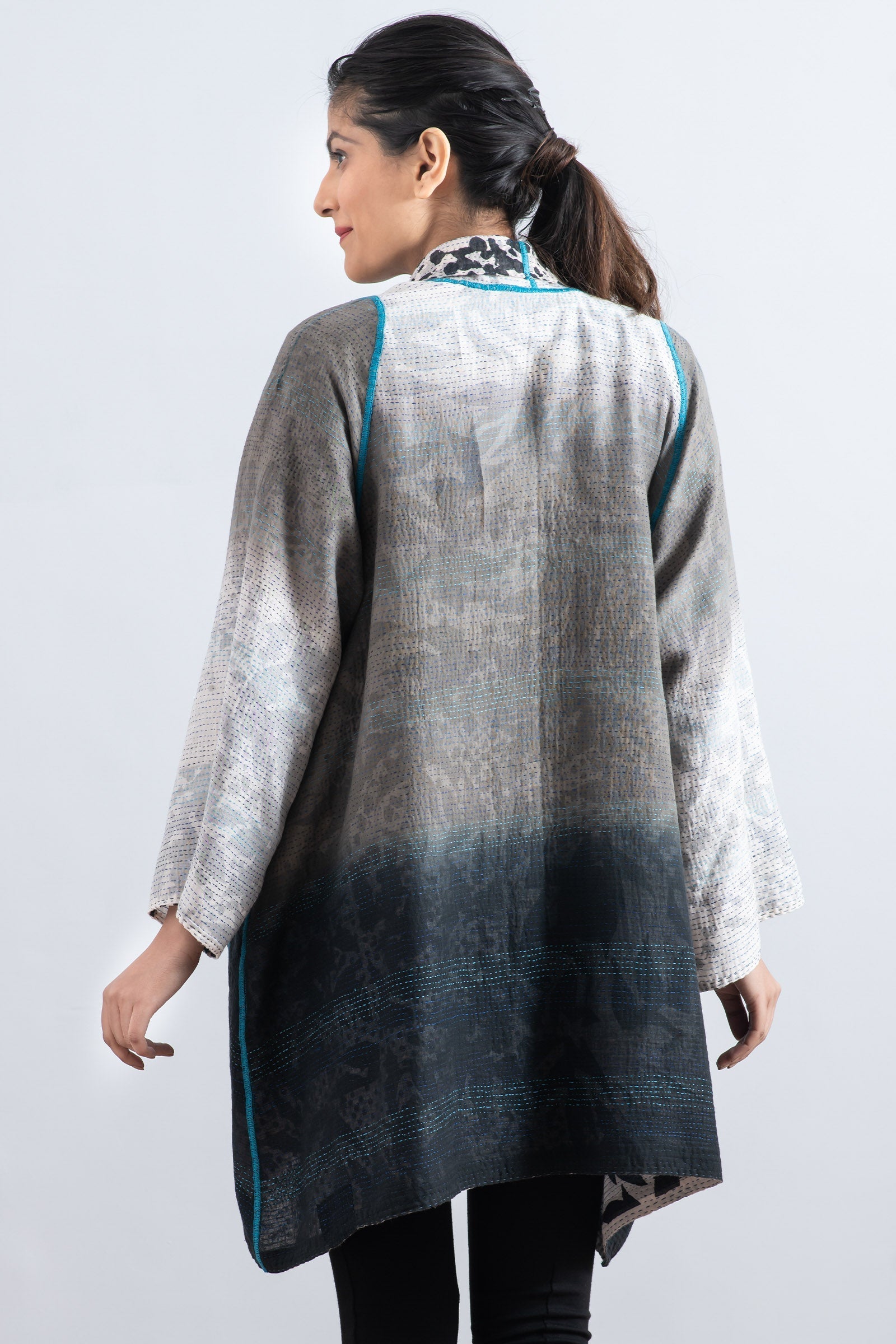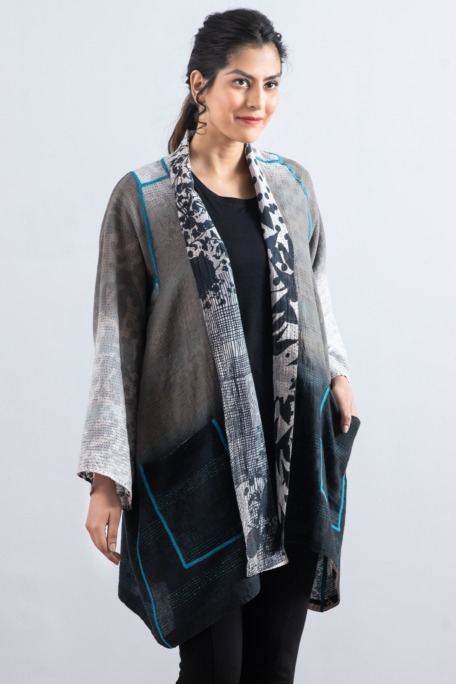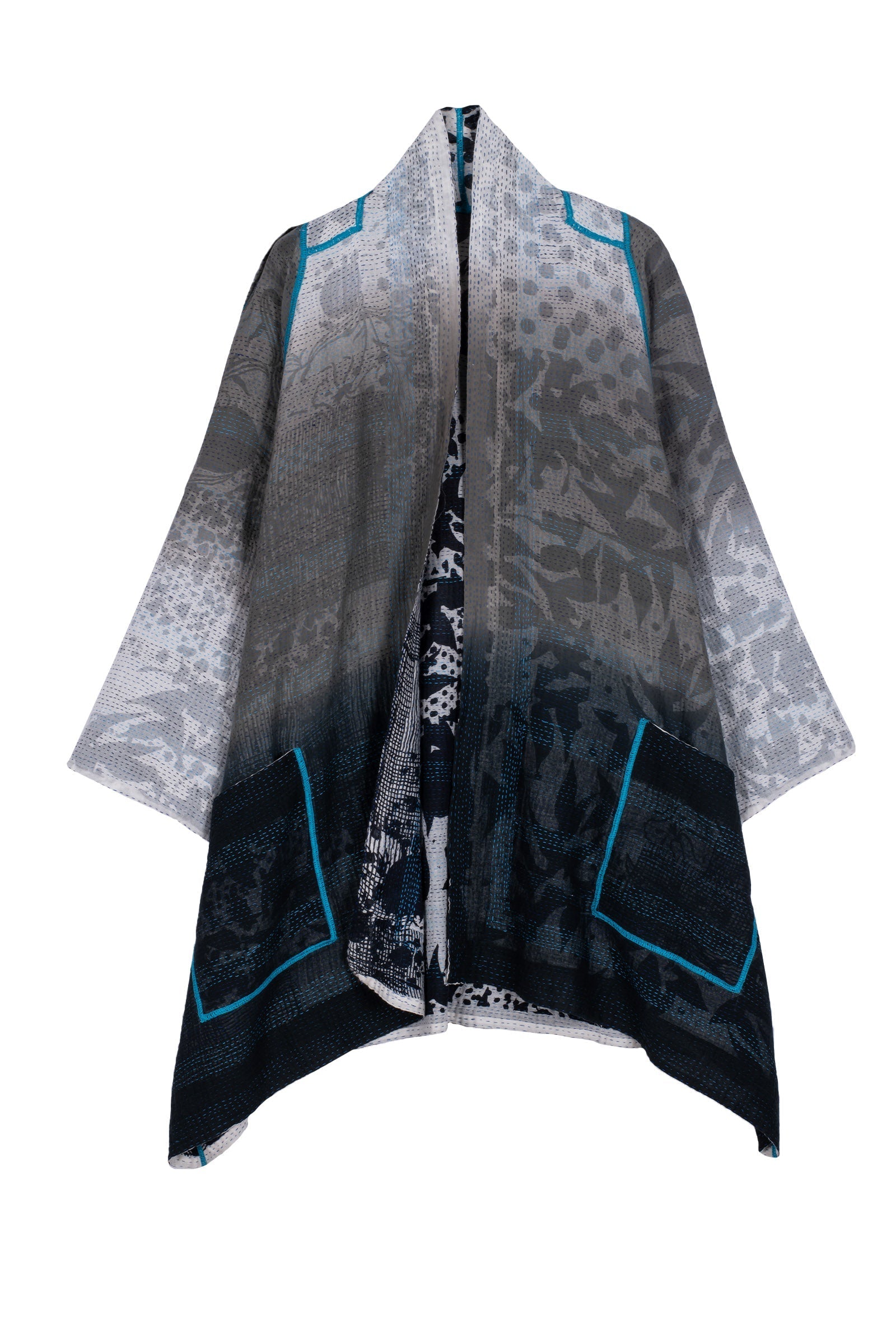 MONOTONE TWILIGHT PRINT KANTHA A-LINE JKT - tp2003-wht -