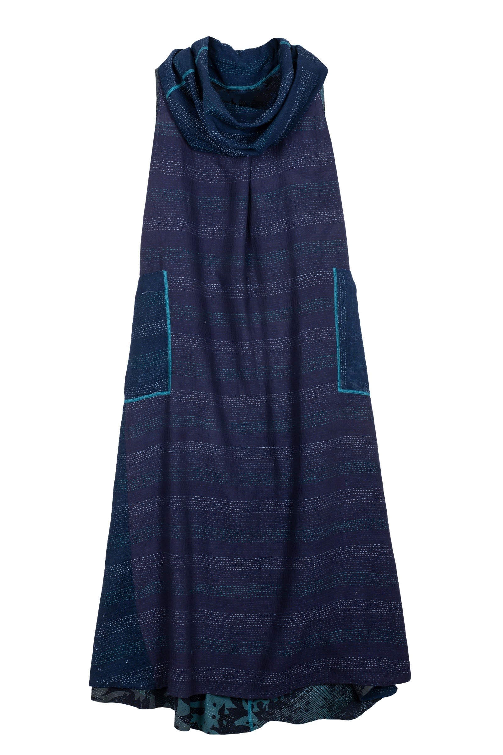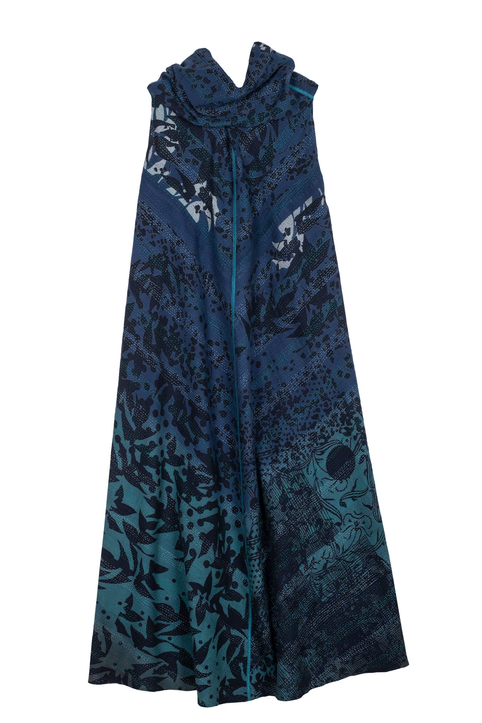 MONOTONE TWILIGHT PRINT KANTHA COWL NECK MAXI DRESS - tp2438-blu -