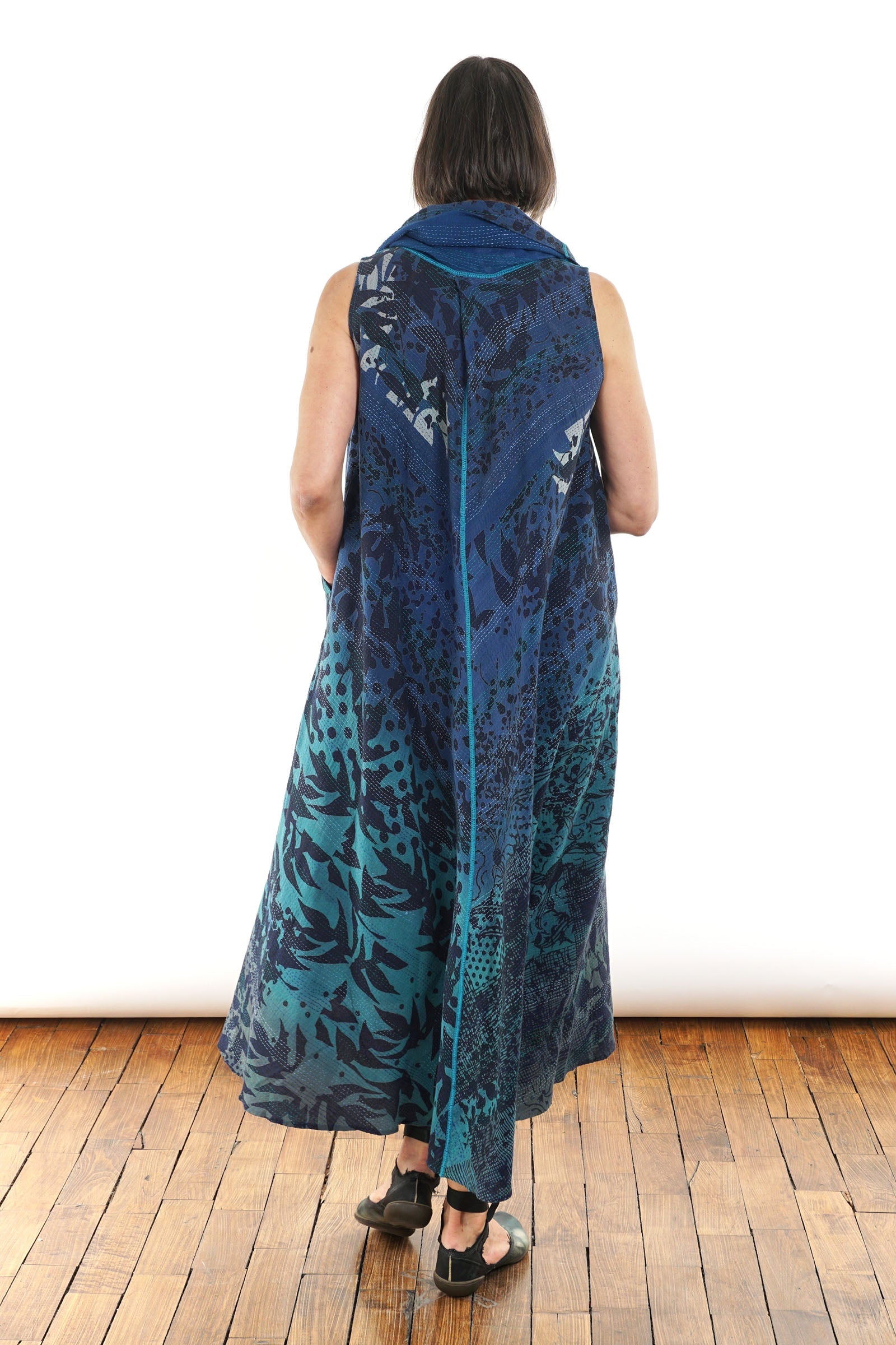 2 Layer Vintage Saris with Hand Stitches on Entire Garment - Reversible