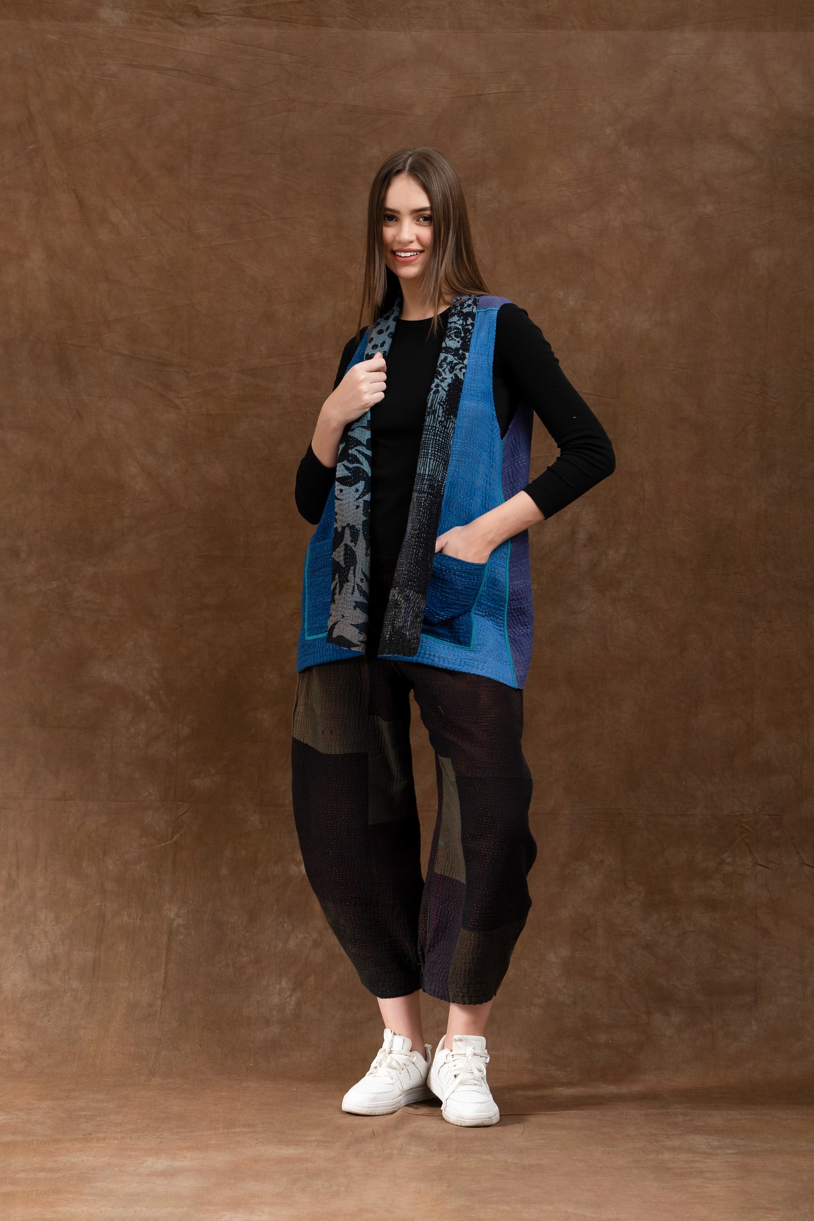 4 Layer Vintage Saris with Hand Stitches on Entire Garment - Reversible