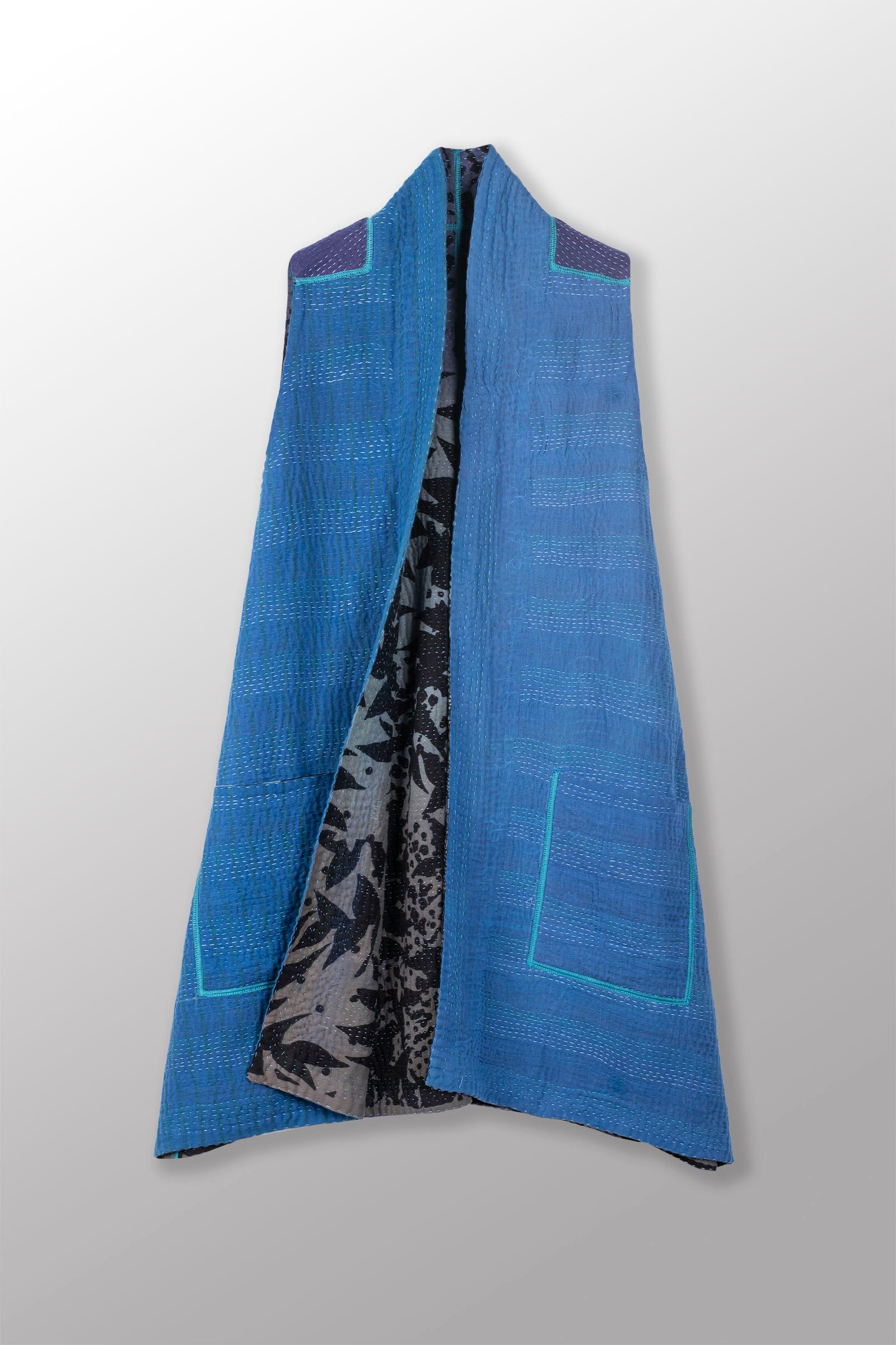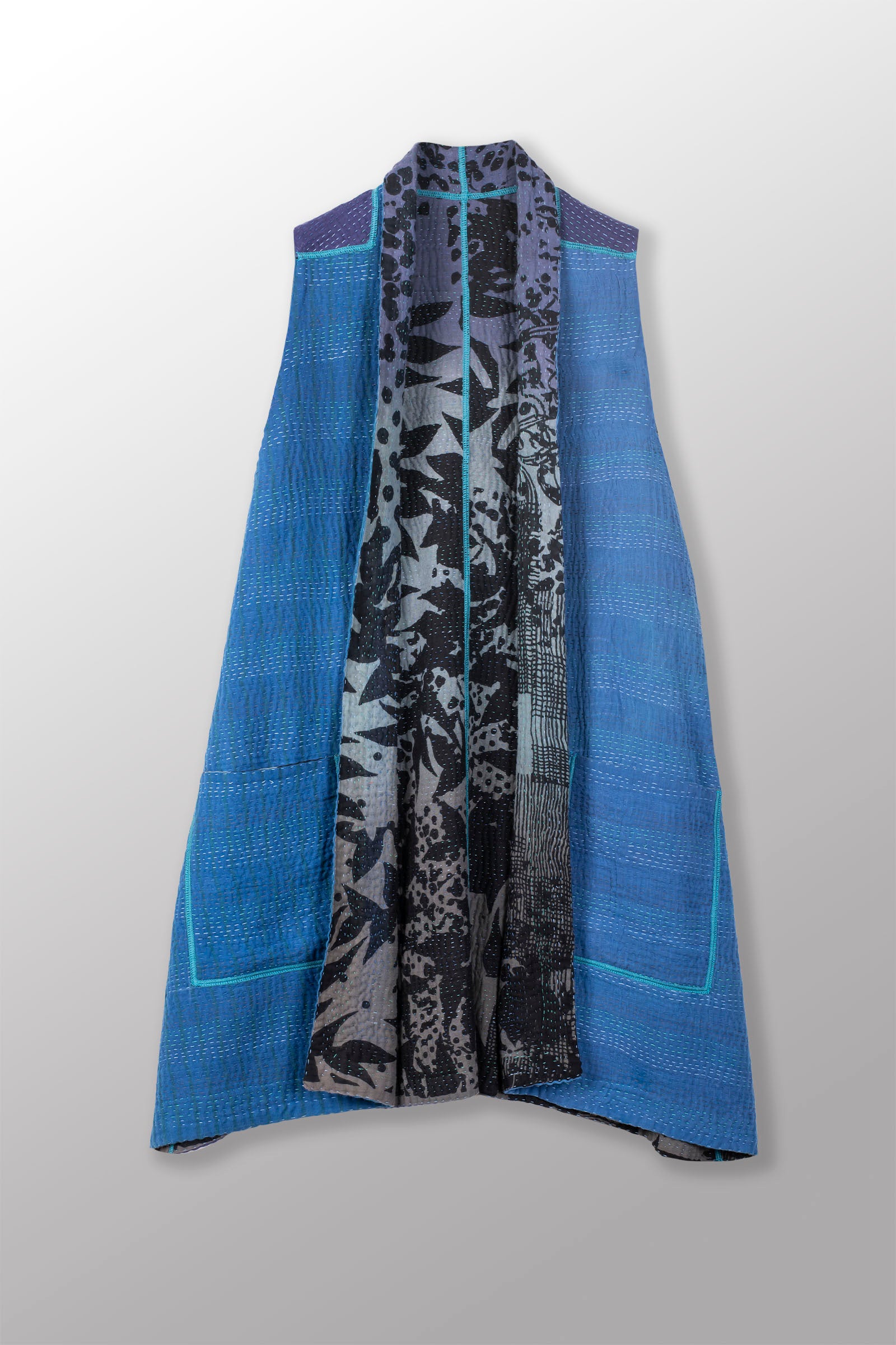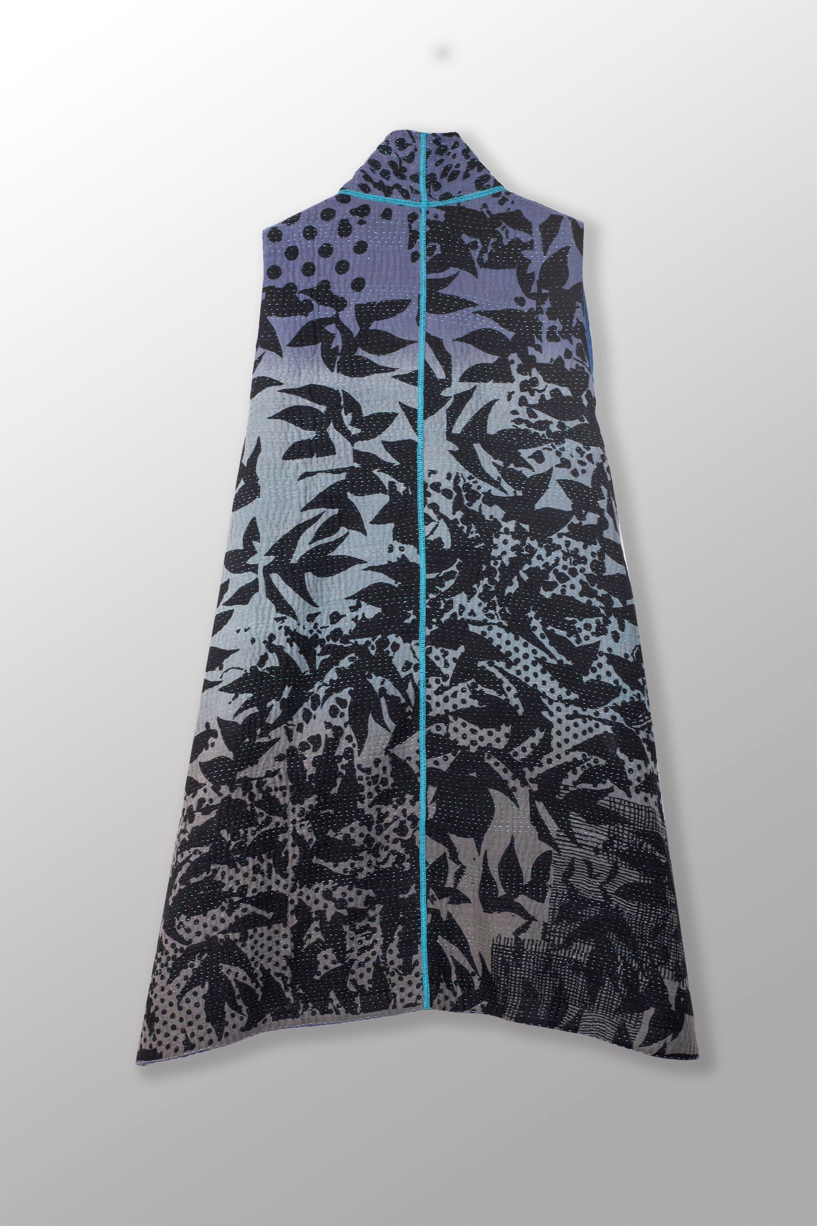 MONOTONE TWILIGHT PRINT KANTHA KIMONO VEST - tp4247-blu -