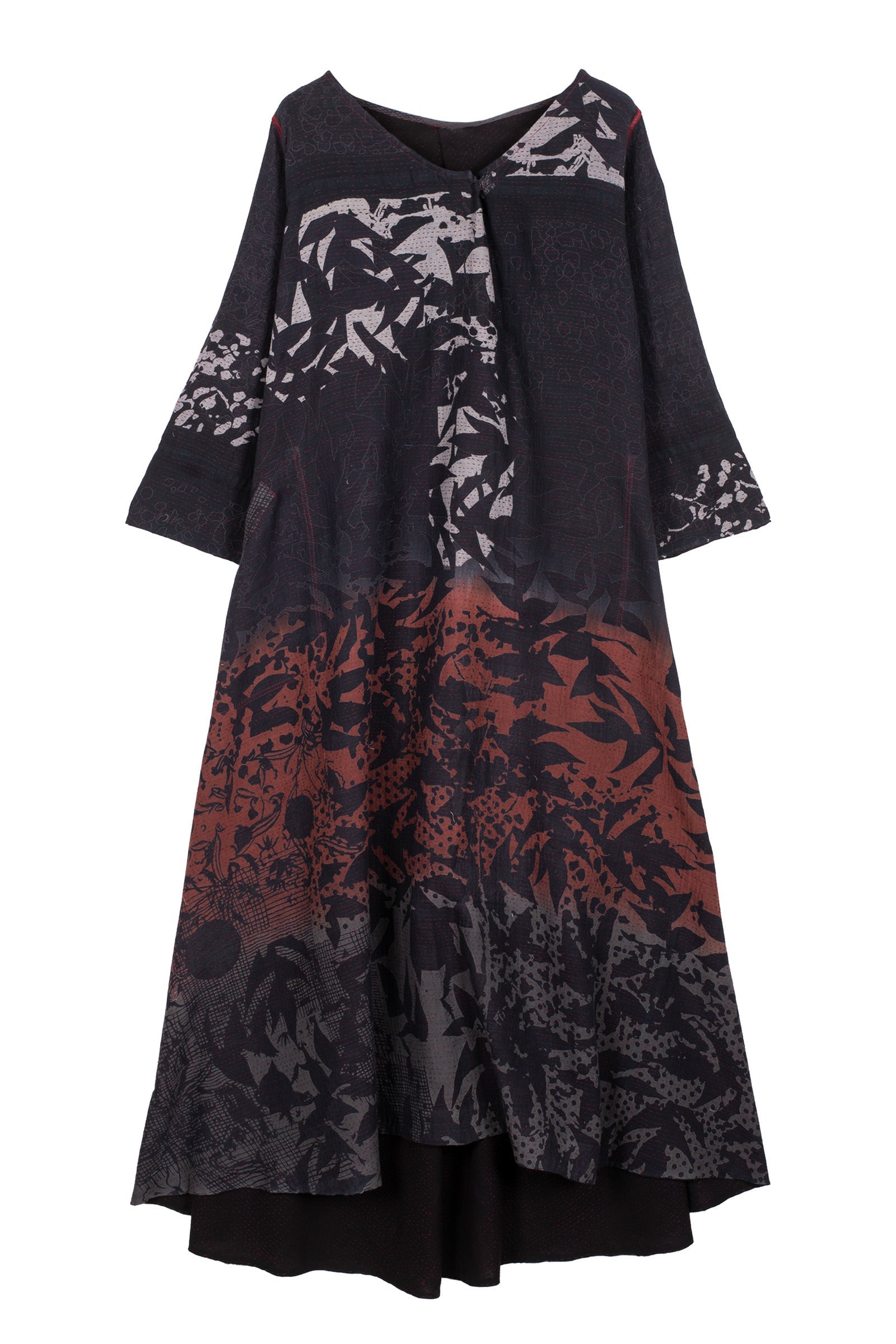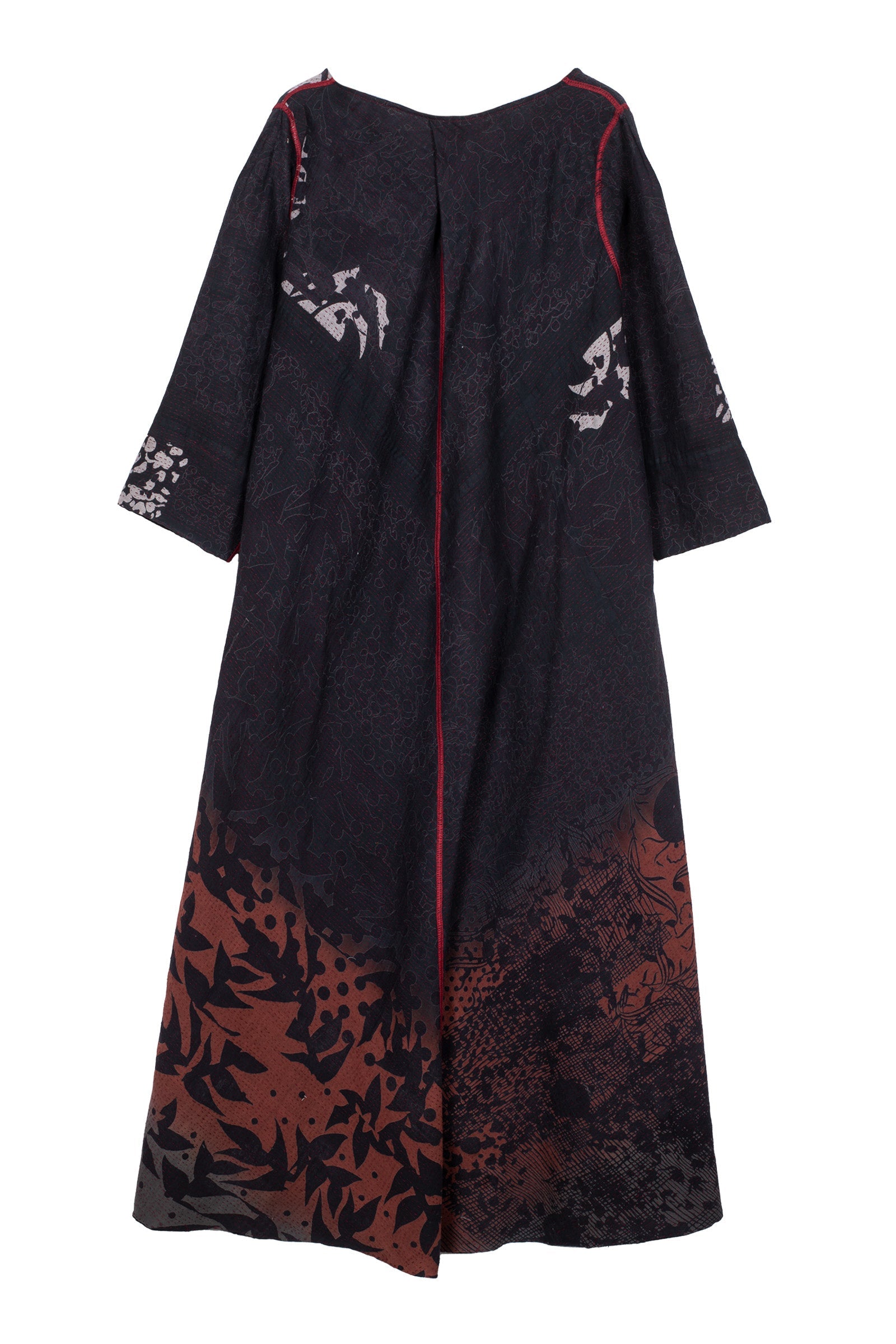 MONOTONE TWILIGHT PRINT KANTHA V-NECK MAXI WITH SLEEVES - tp2441-red -