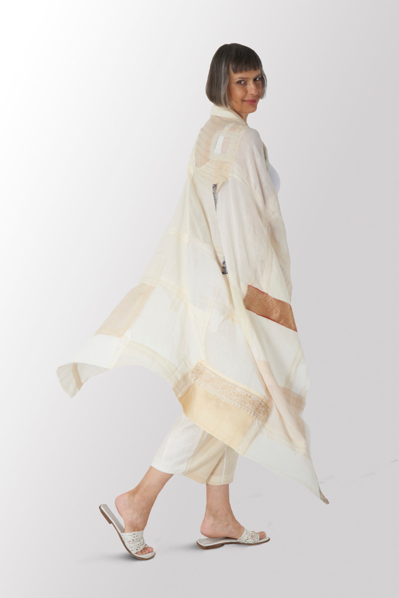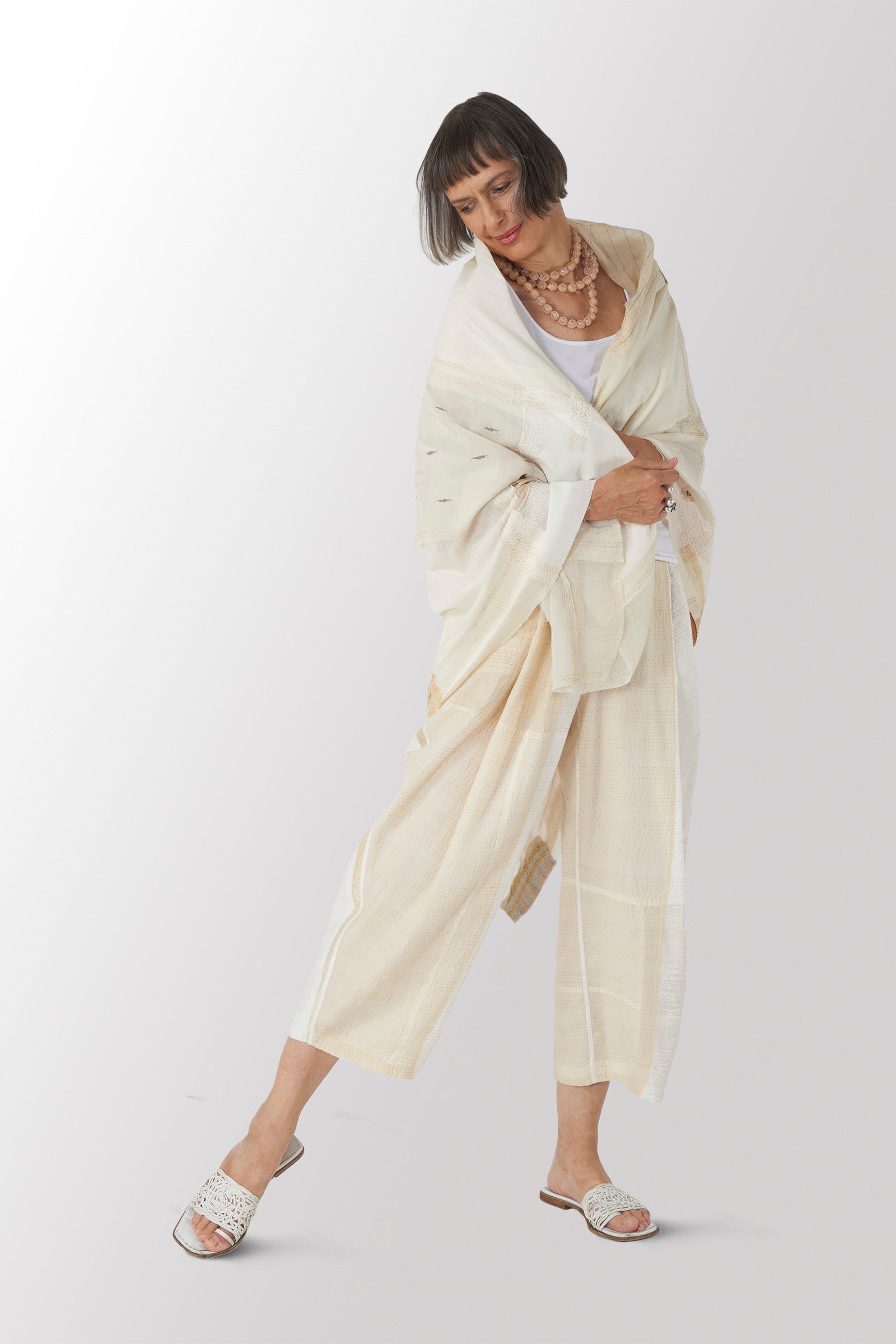 1 Layer Vintage Sari with Hand Stitches - Vintage Cotton Silk and Wool Patch