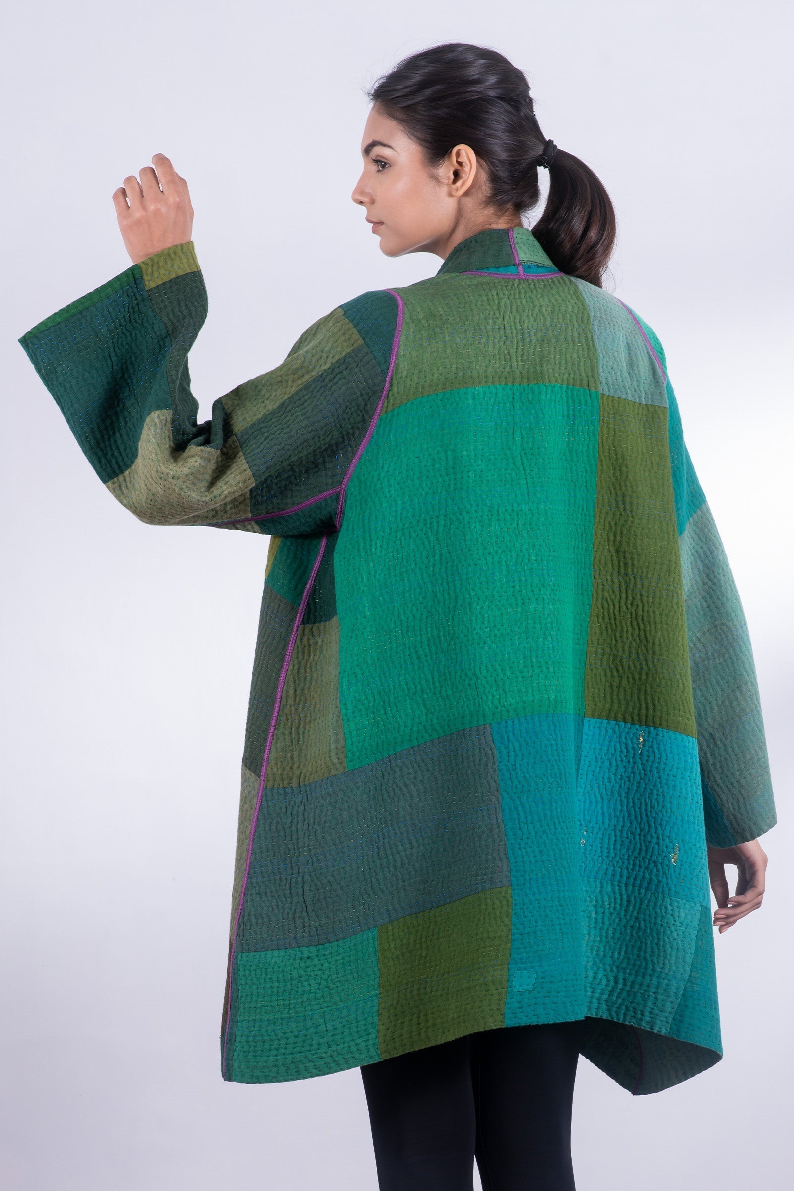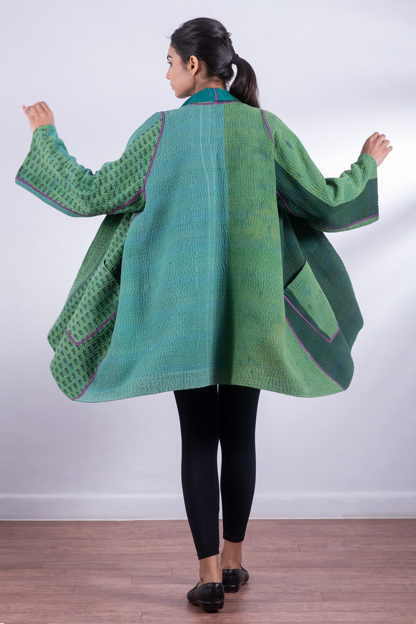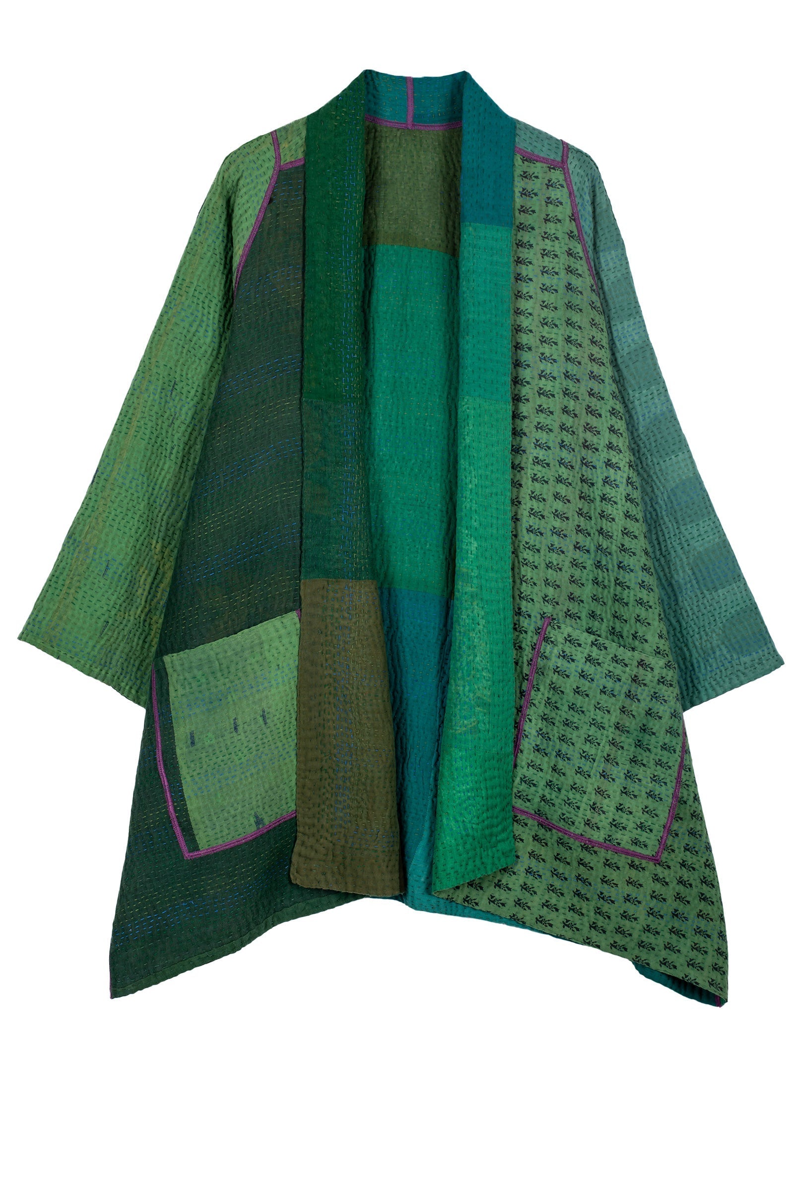 OMBRE PATCHED KANTHA A-LINE JKT - op4003-grn -