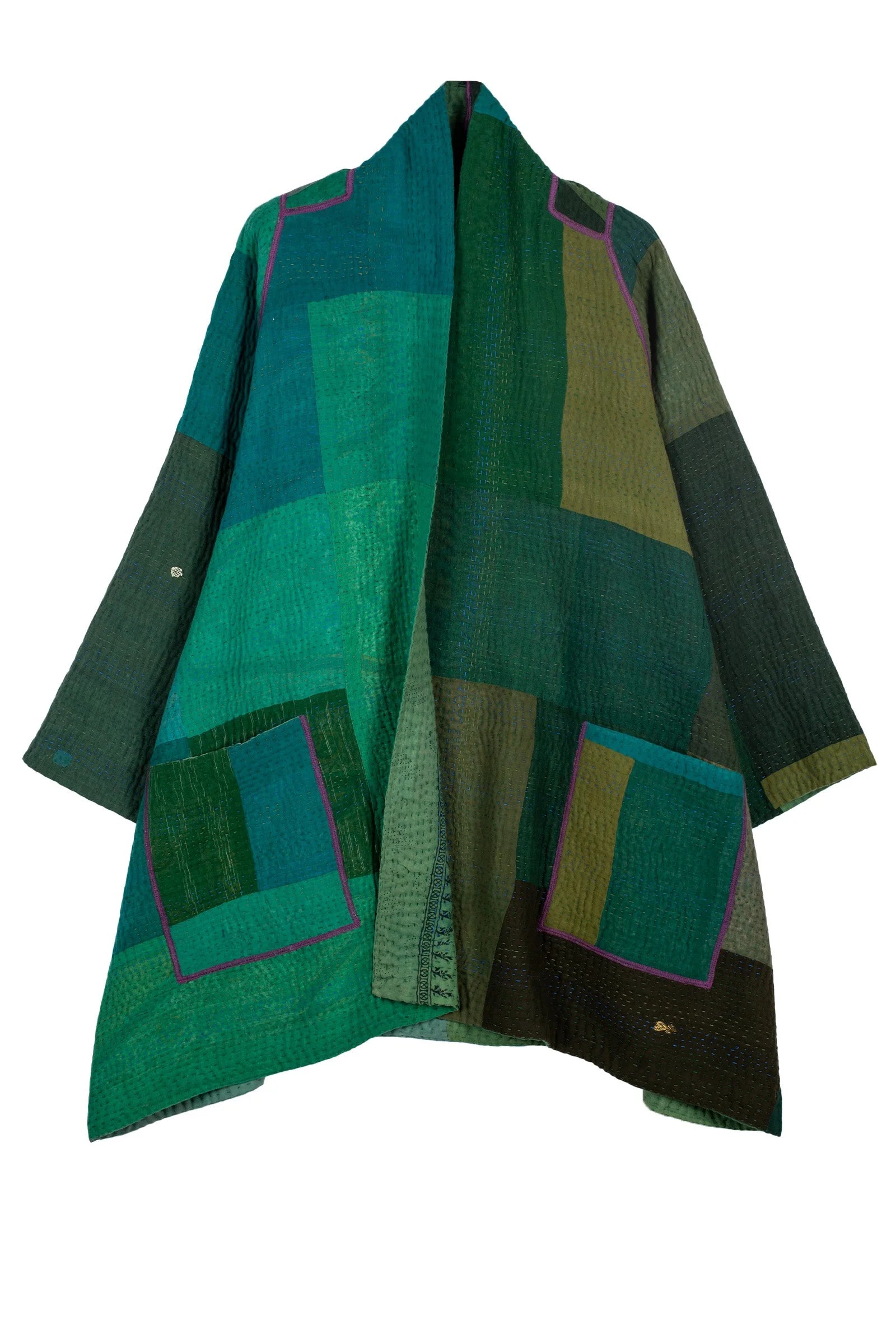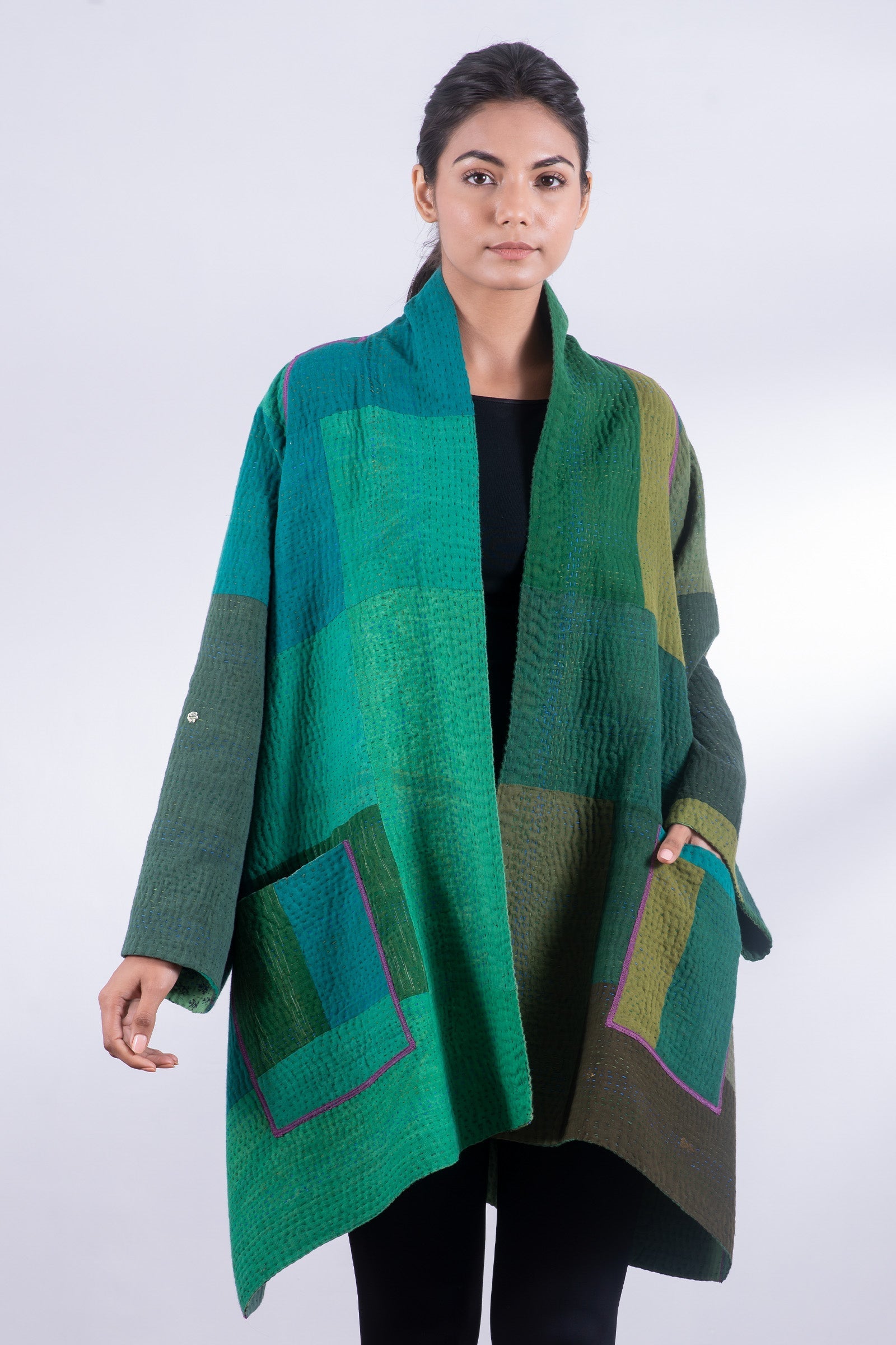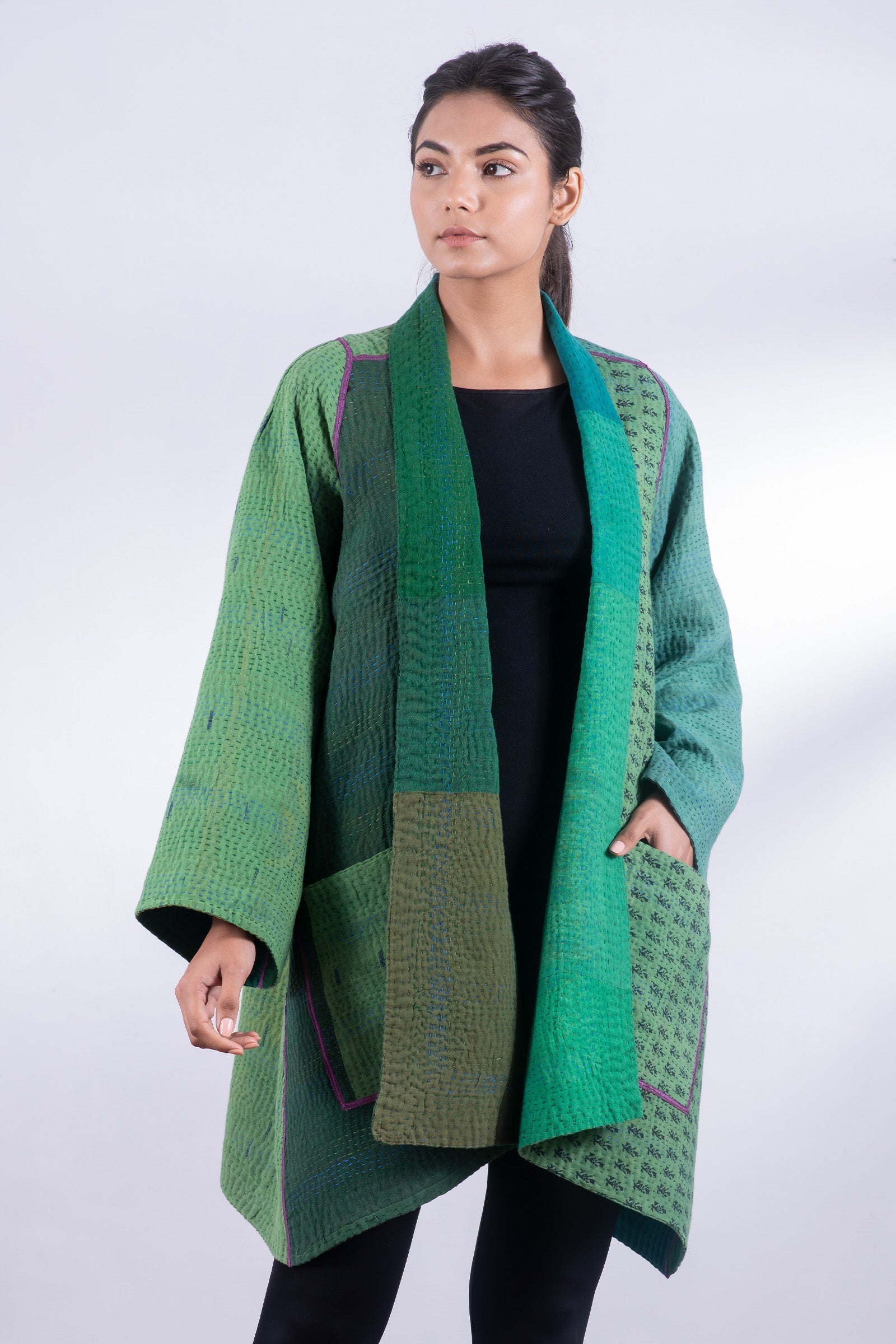 OMBRE PATCHED KANTHA A-LINE JKT - op4003-grn -