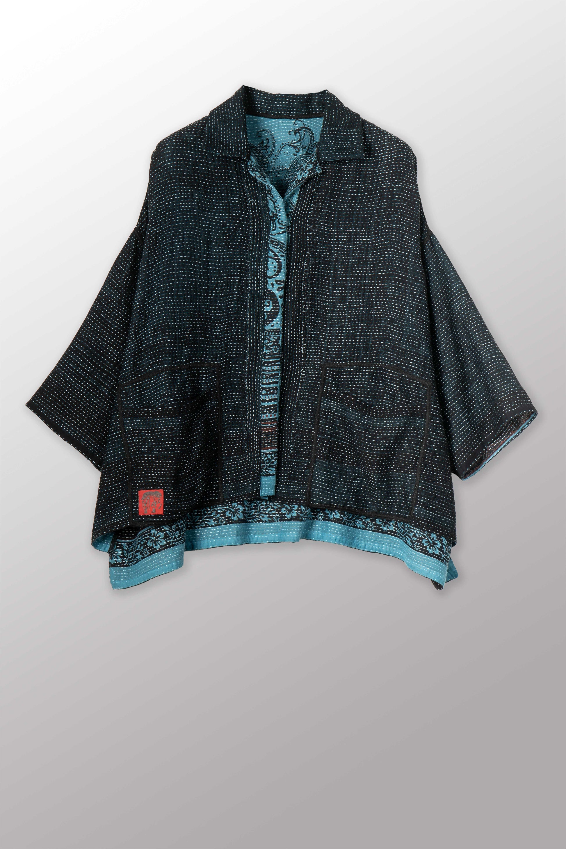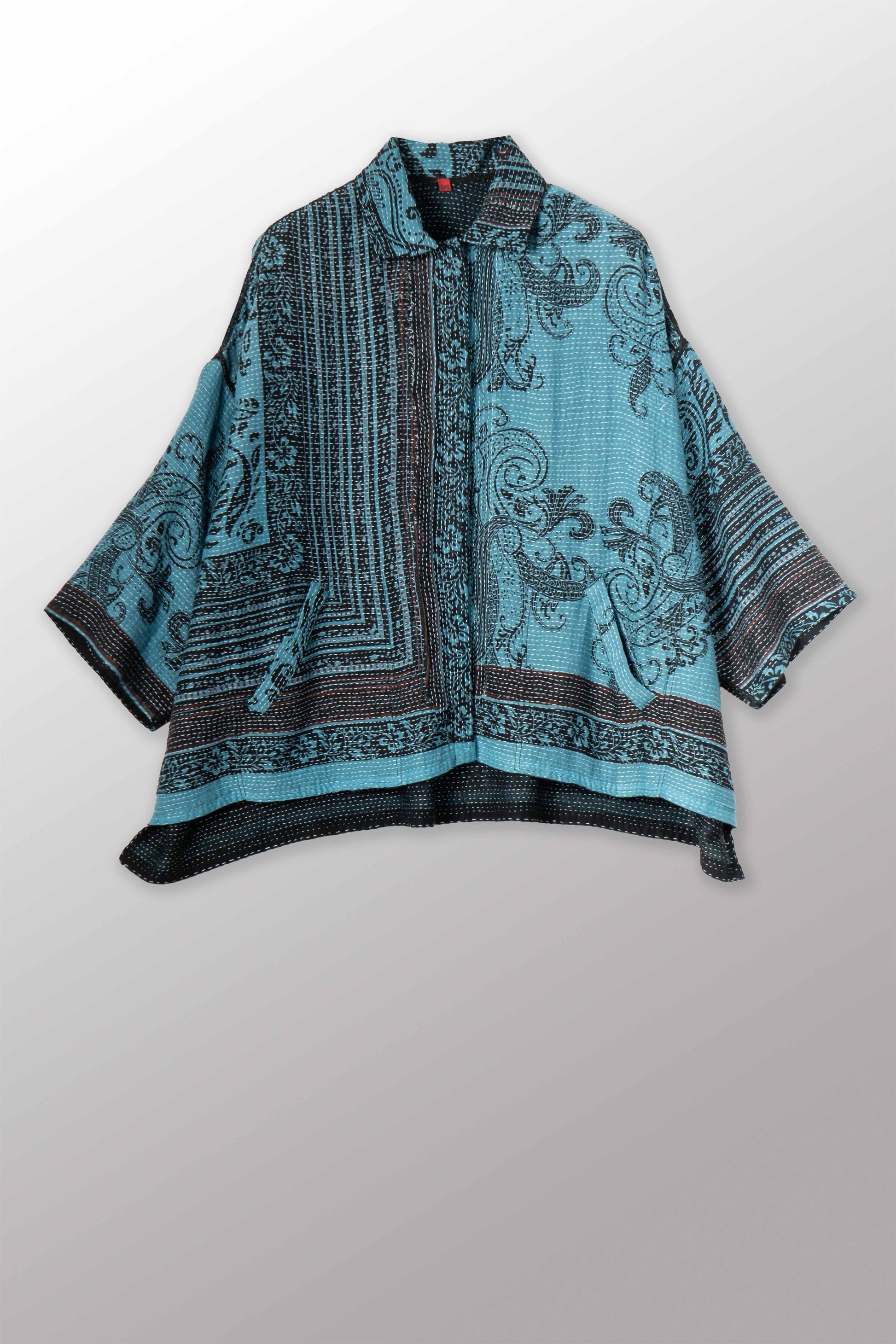 OVERDYED COTTON PAISLEY KANTHA CROPPED TENT SHIRT - ov-cp2596-blu -
