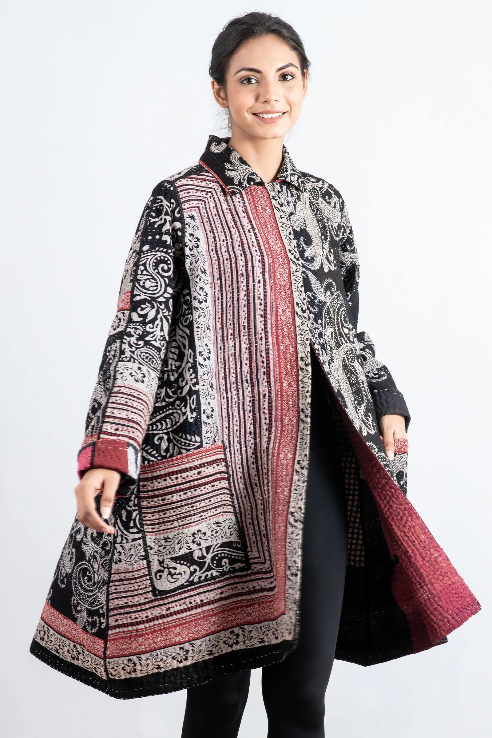 PAISLEY & PATCH KANTHA A-LINE DUSTER - py4311-blk -