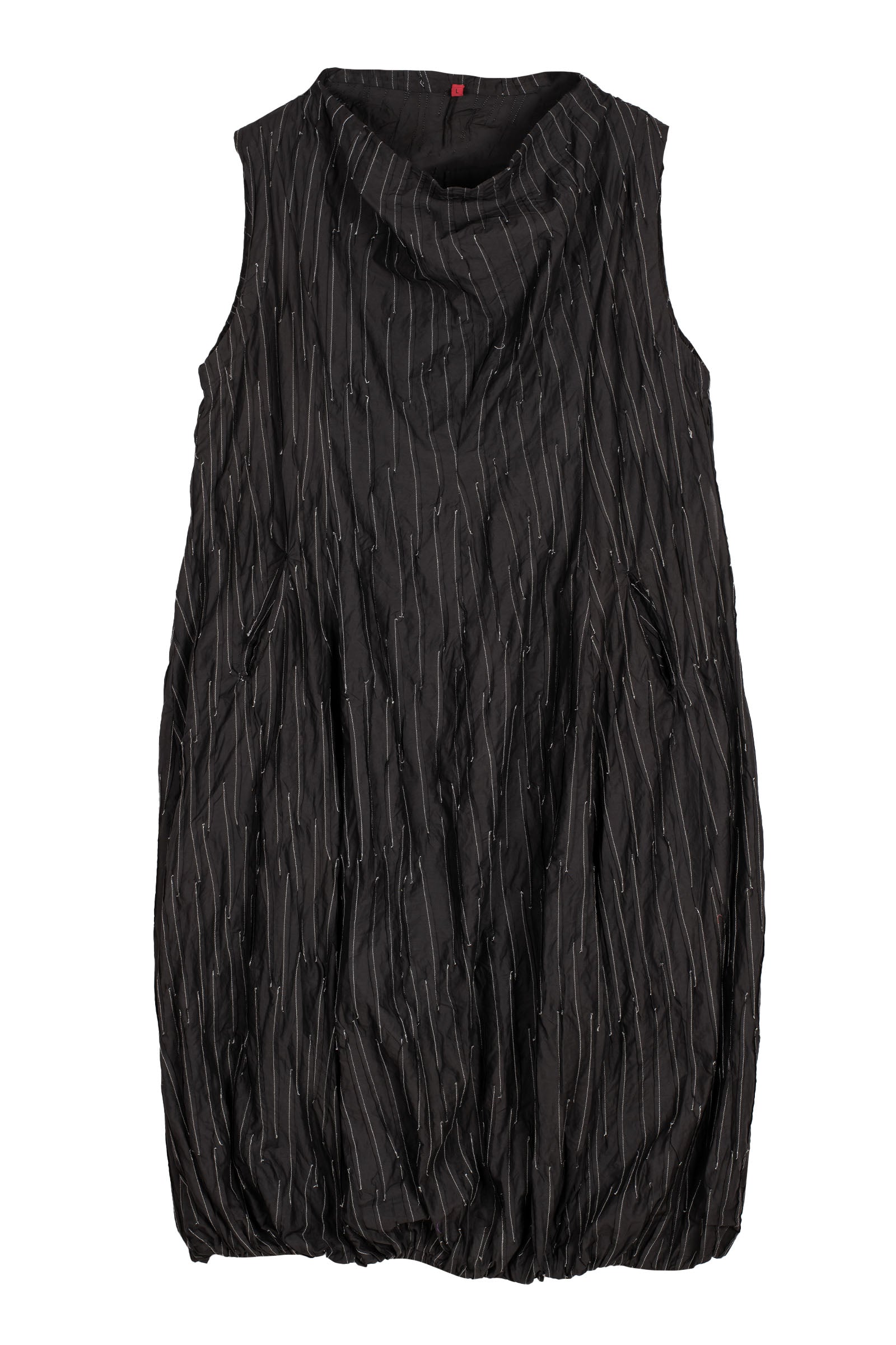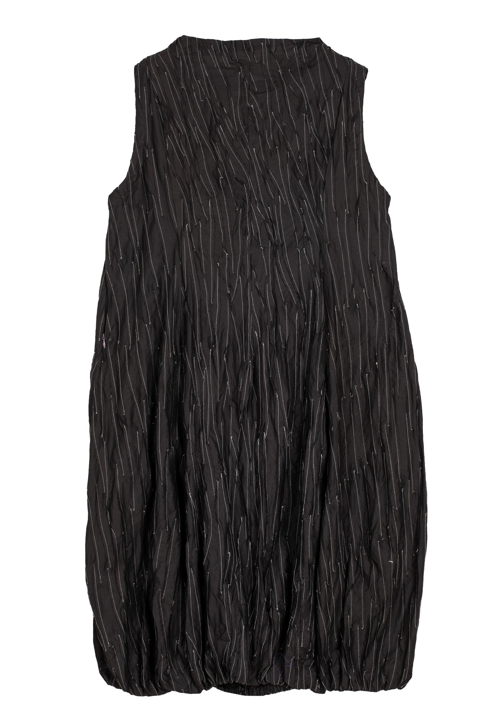 POLISHED COTTON RANDOM TUCK VOILE PUMPKIN DRESS - rc1442-blk -