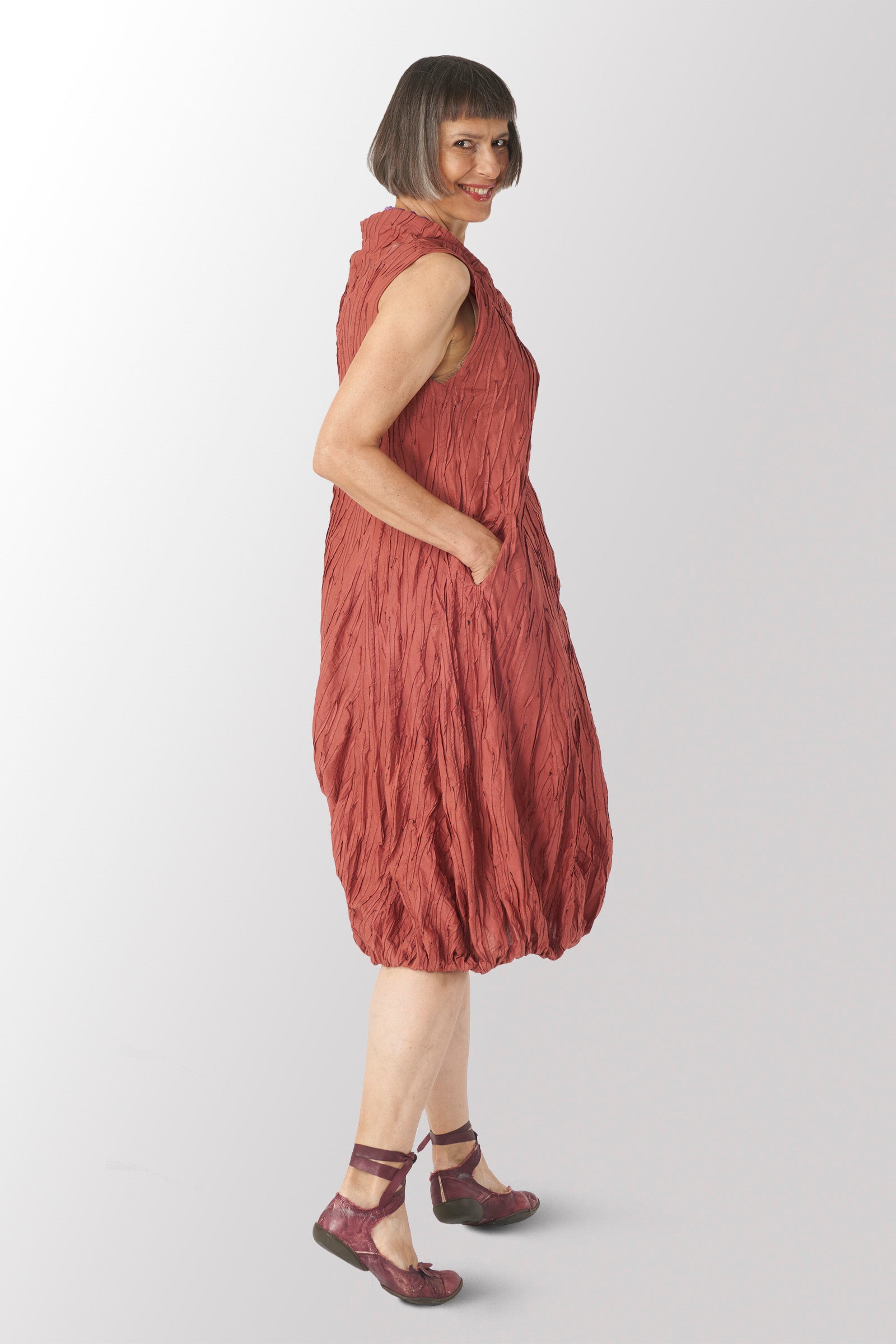 POLISHED COTTON RANDOM TUCK VOILE PUMPKIN DRESS - rc1442-pik -