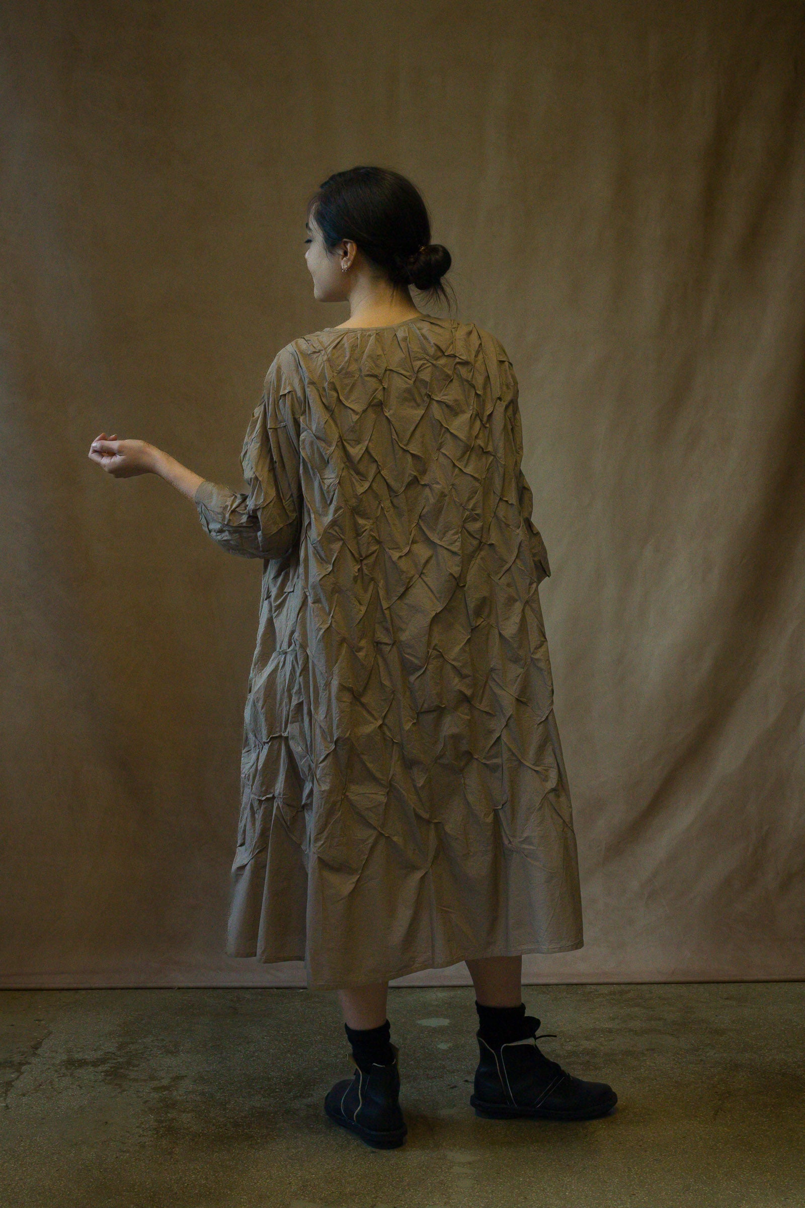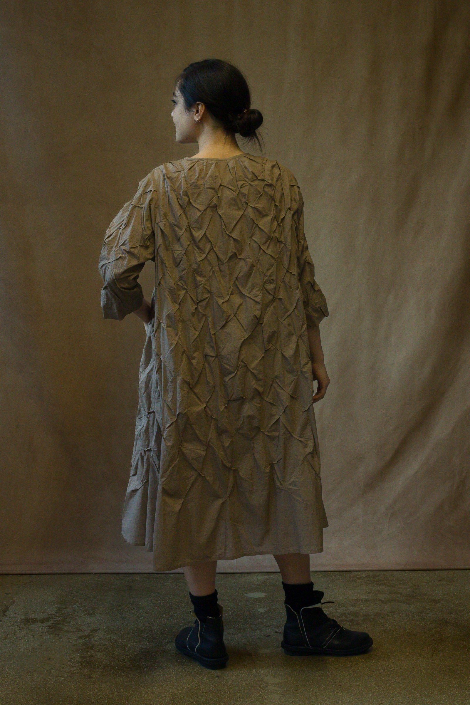 POLISHED COTTON WAVY TUCK A-LINE DRESS - bl-wl1453-ntl -