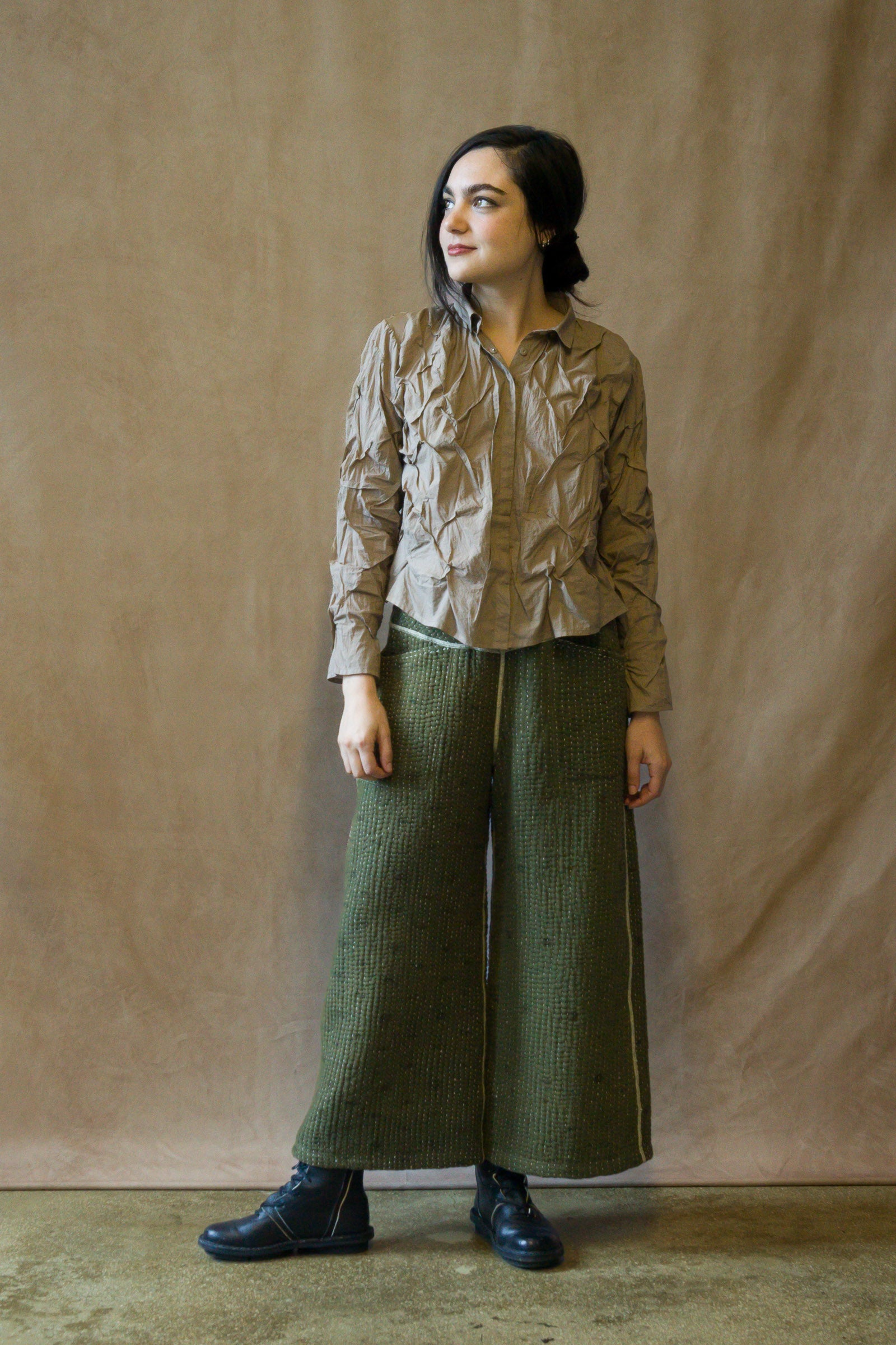 POLISHED COTTON WAVY TUCK CROPPED SHIRT COLLAR TOP - bl-wl1594-ntl -