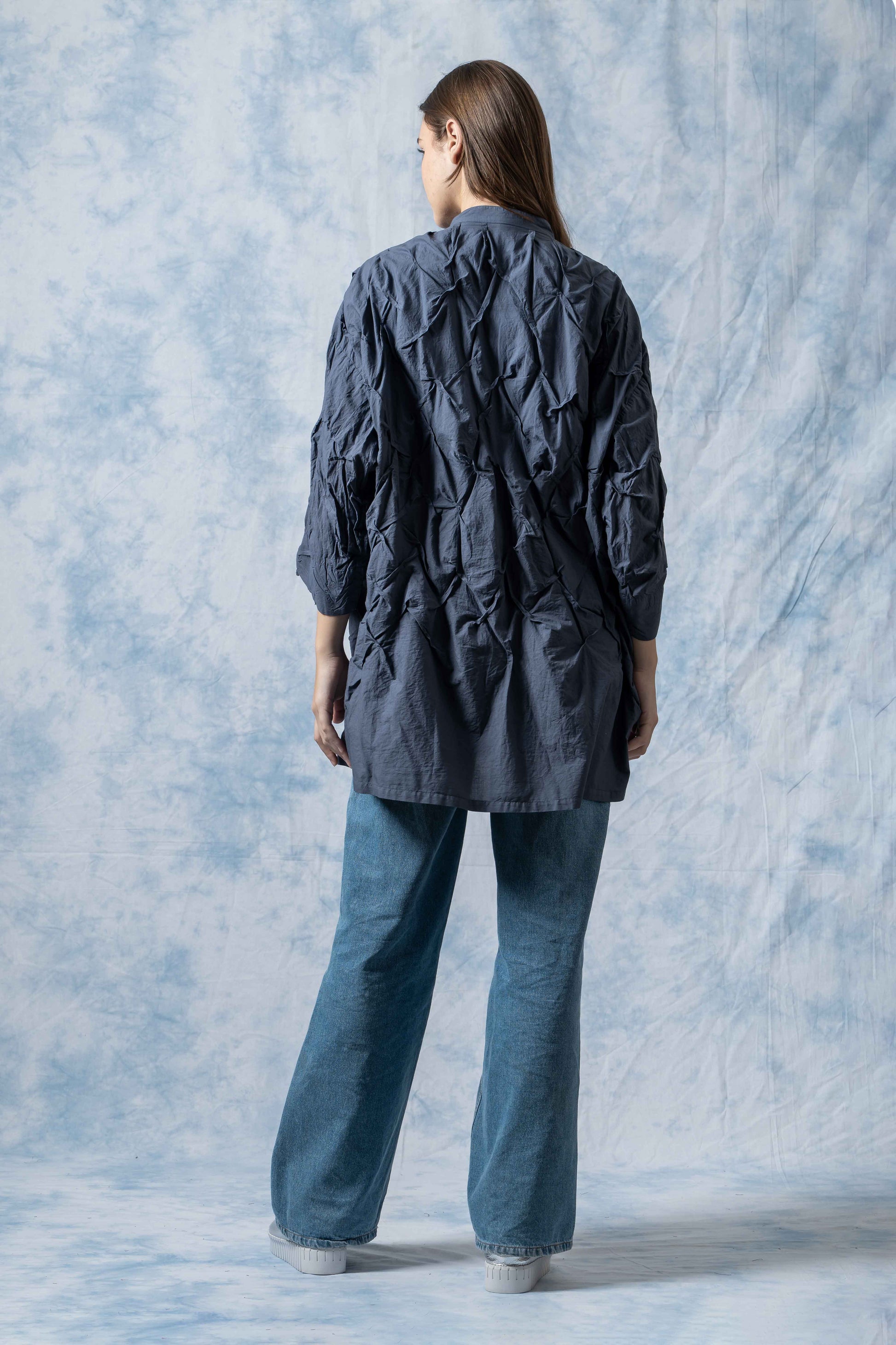 POLISHED COTTON WAVY TUCK OVERSIZED SHIRT - bl-wl1555-gry -