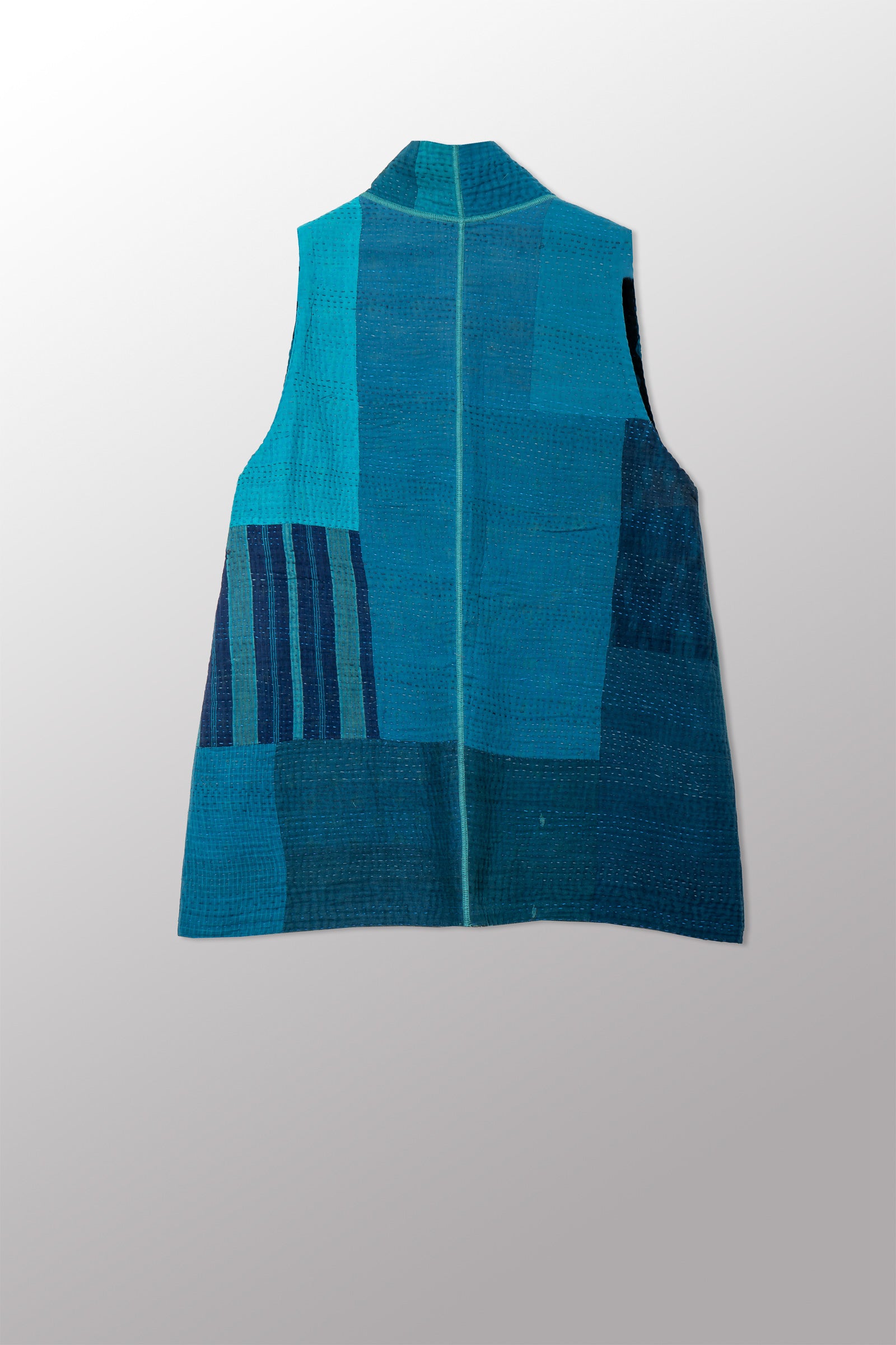 4 Layer Vintage Saris with Hand Stitches on Entire Garment - Reversible