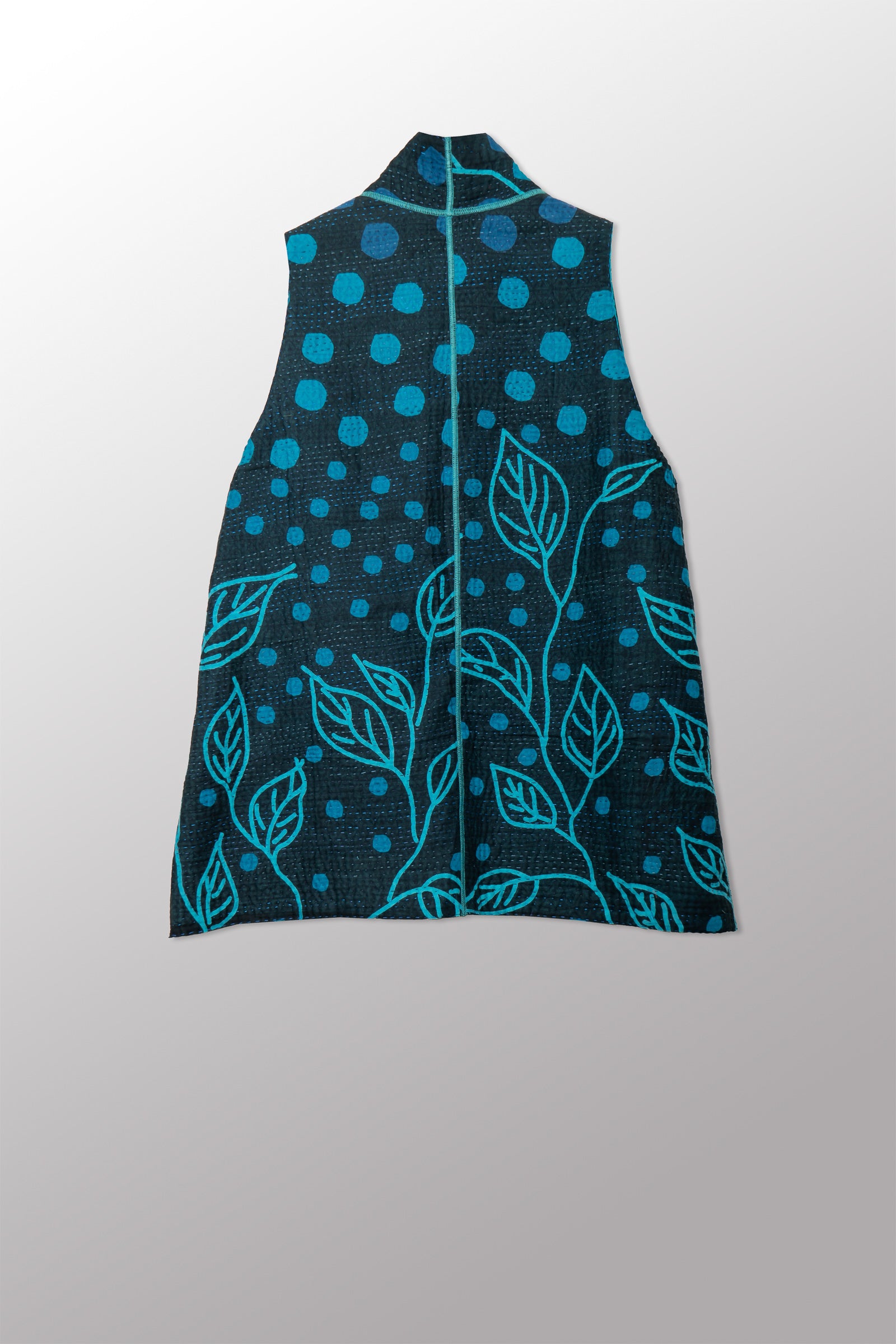 POLKA DOTS & LEAVES KANTHA KIMONO VEST SHORT - dl4248-tuq -