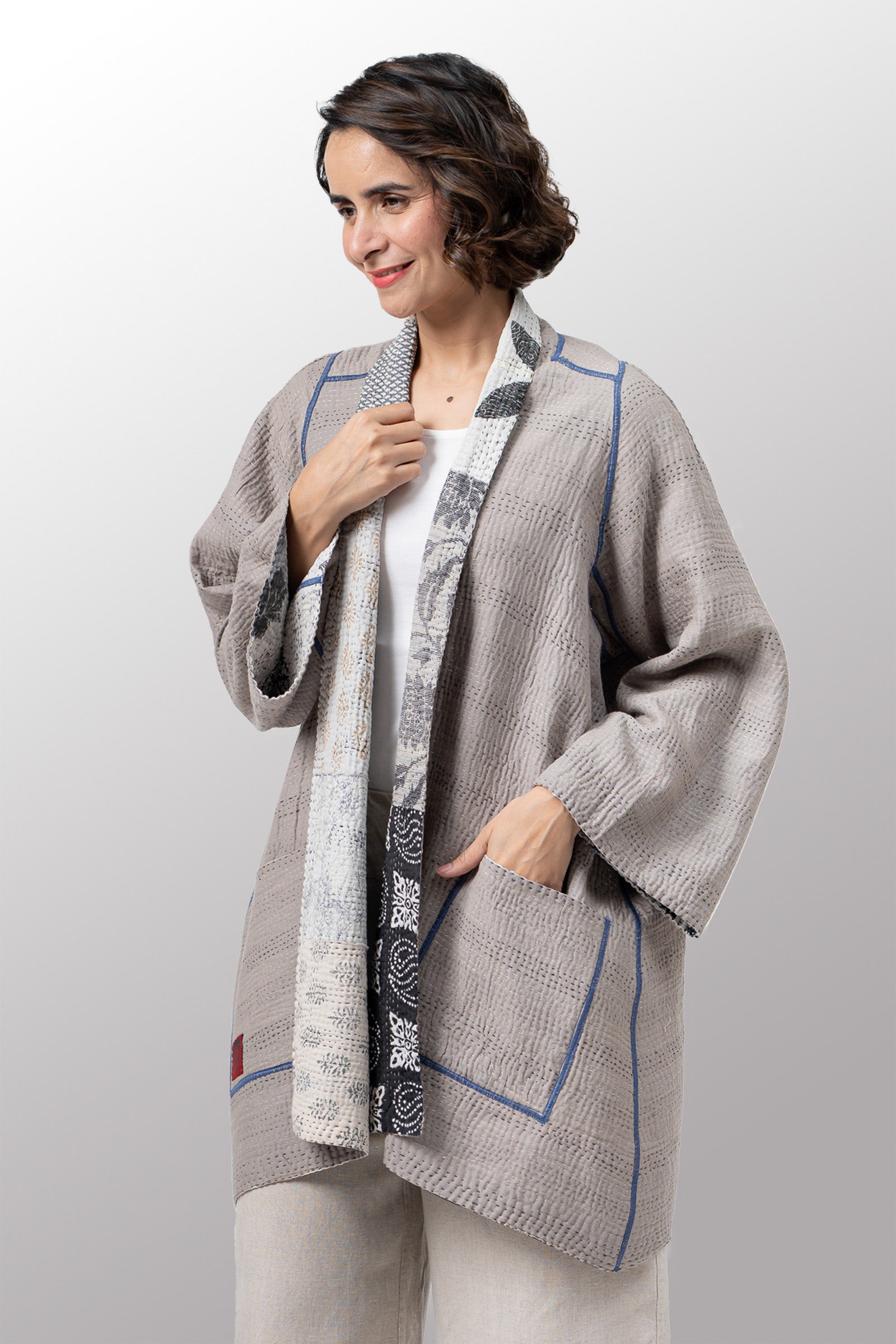 POWDER PATCH KANTHA A-LINE JACKET - pd4003-gry -