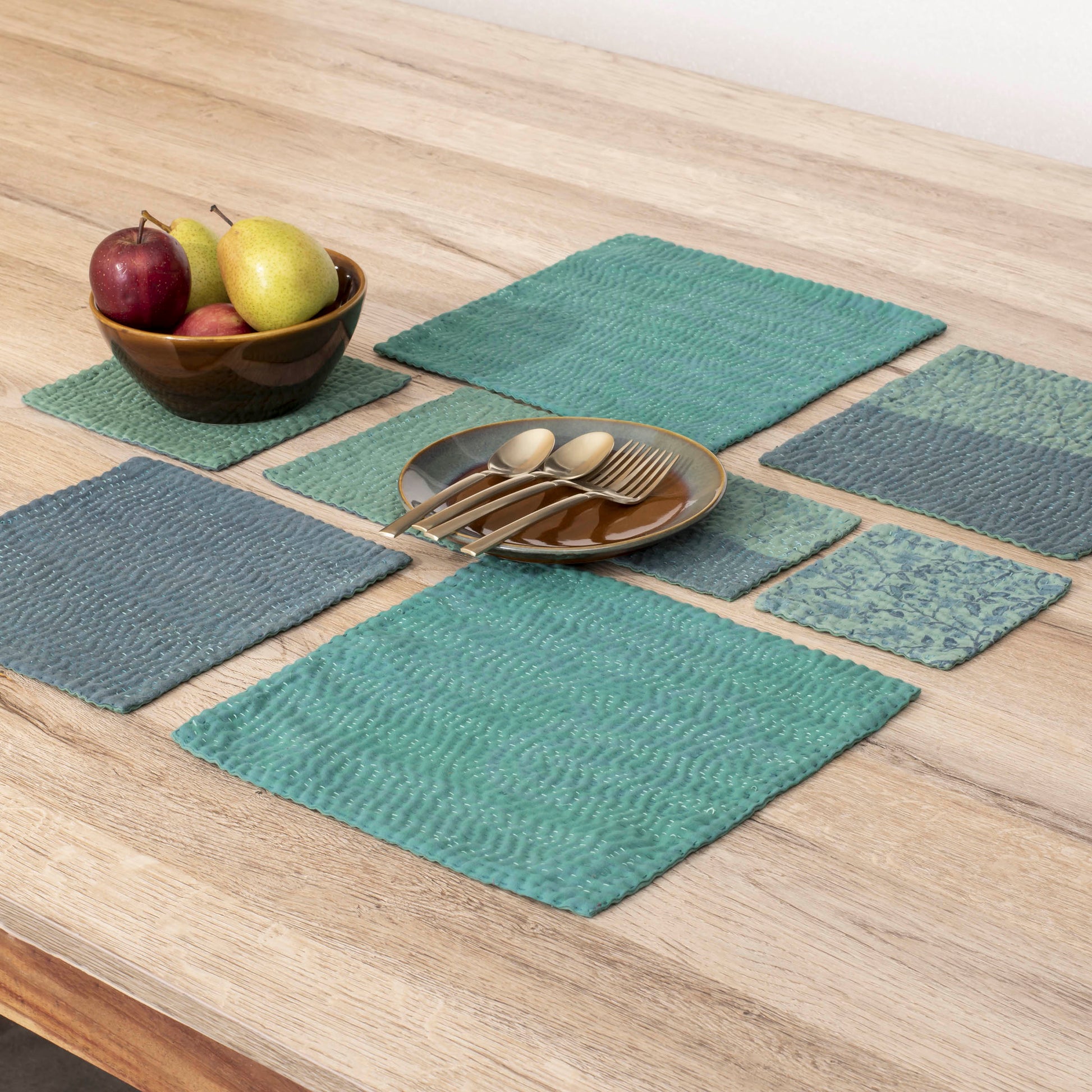 Printed Fray Vintage Cotton Kantha Coaster -Sage -