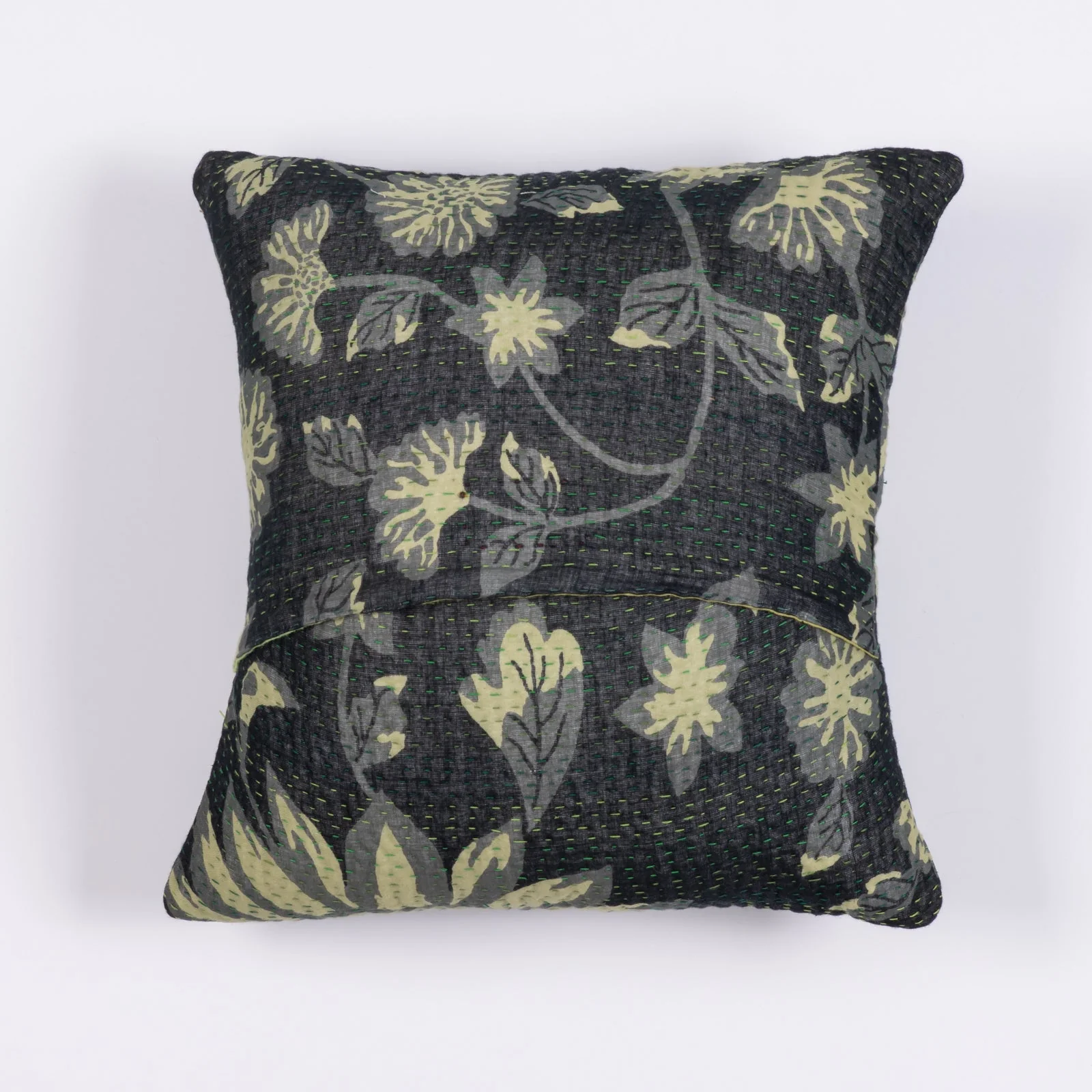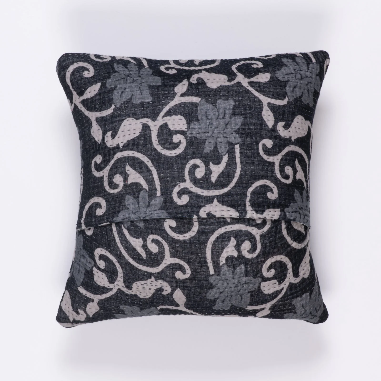 Printed Fray Vintage Cotton Kantha Pillow Sham -Black-