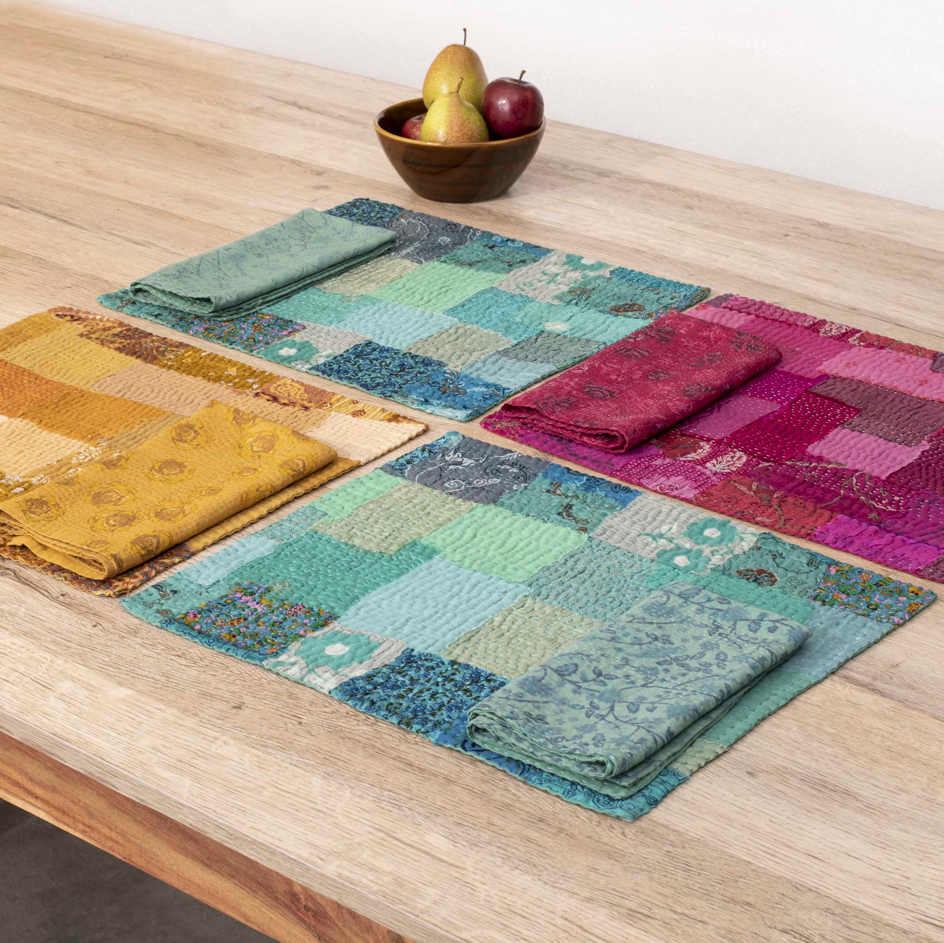 Printed Fray Vintage Cotton Kantha Placemat -Sage (SET OF 2)