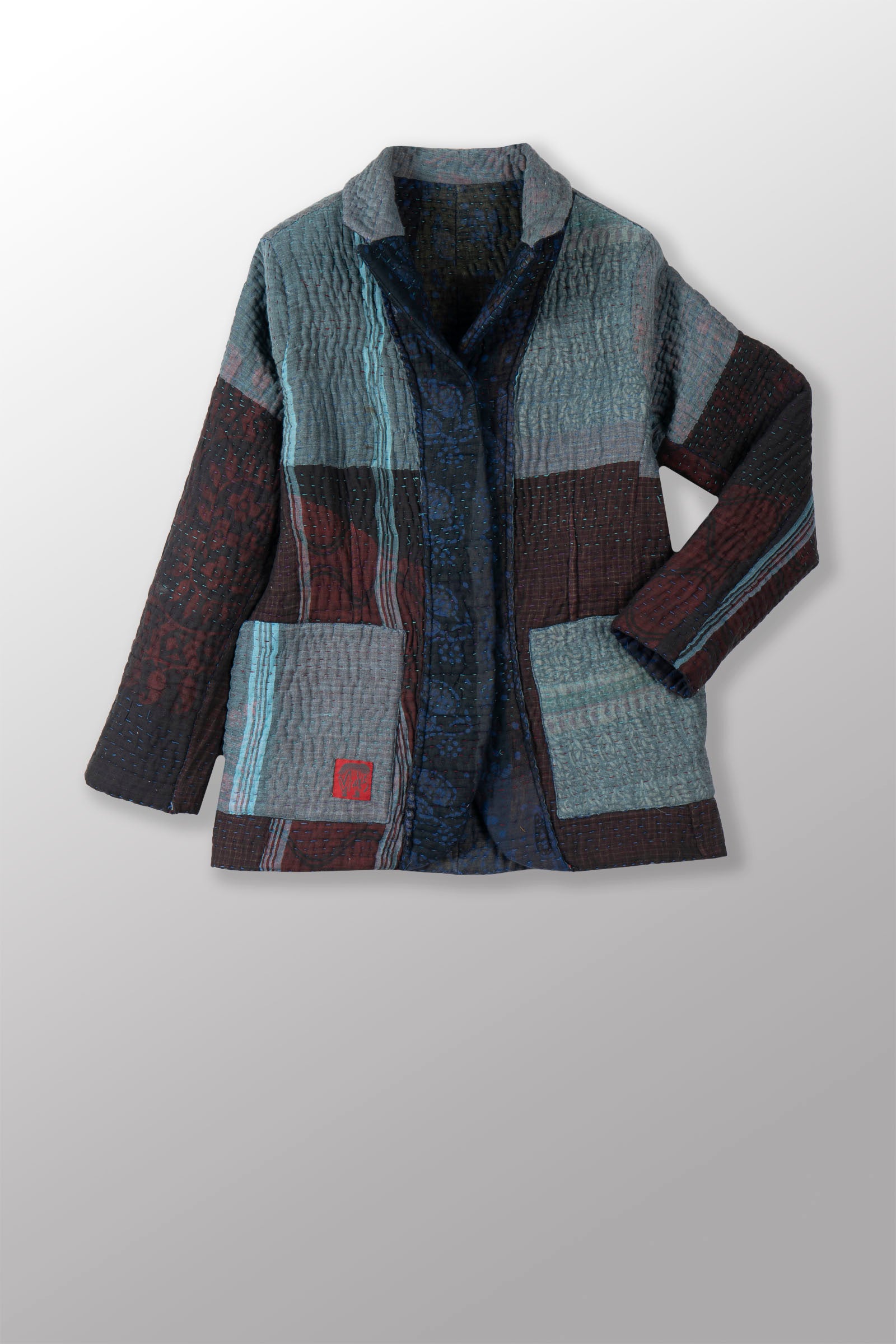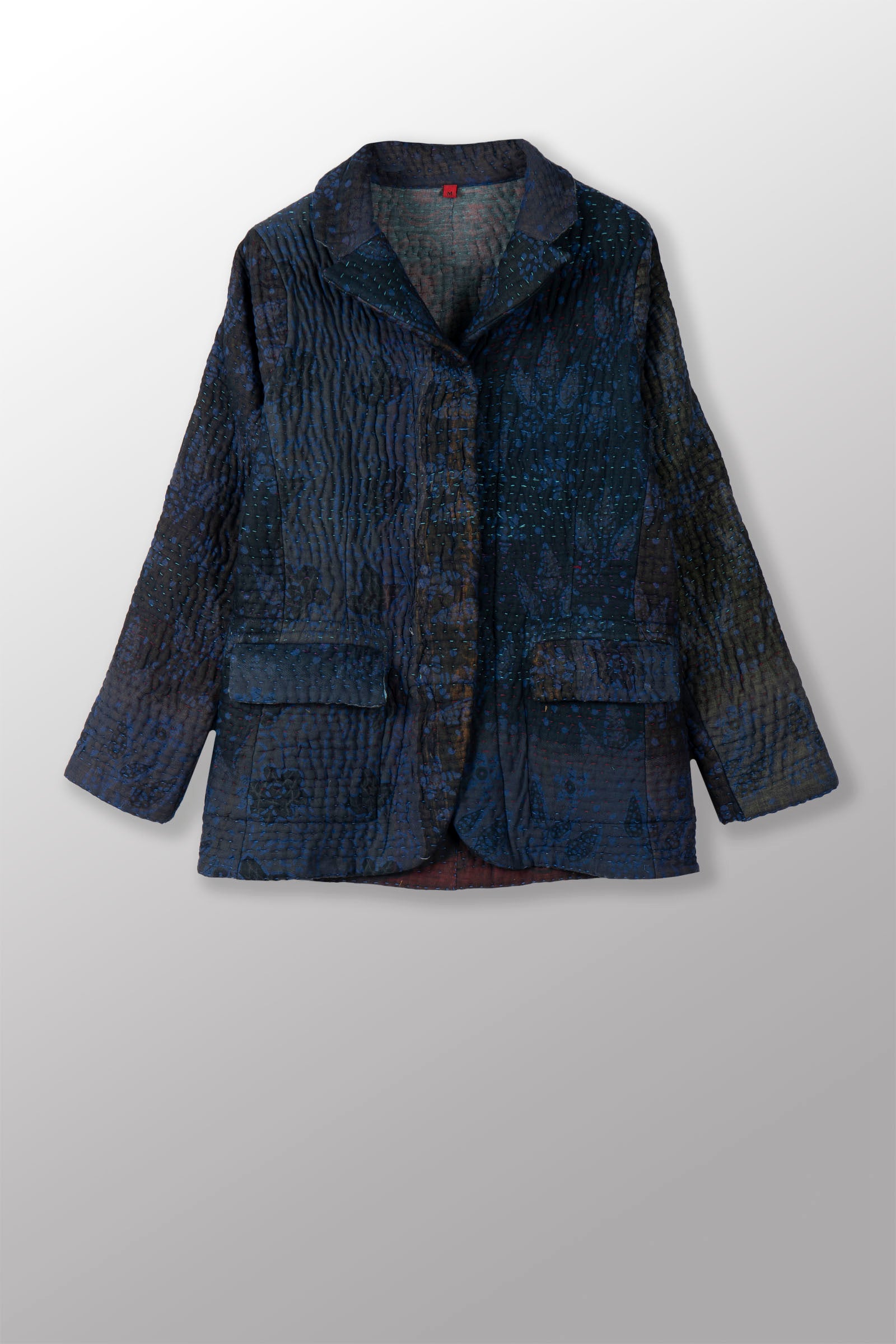 QUILTED OVERDYE COTTON KANTHA BASIC JACKET - oq5052-cblu001m -