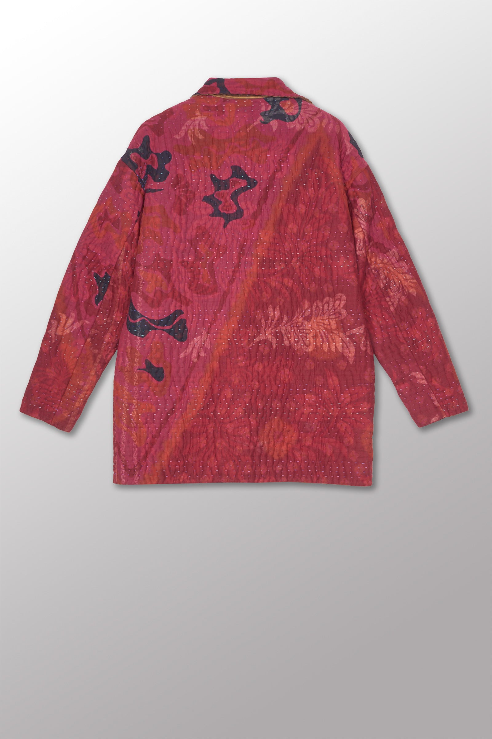 QUILTED OVERDYE COTTON KANTHA LAPELED MEDIUM JKT - oq5080-cred001s -