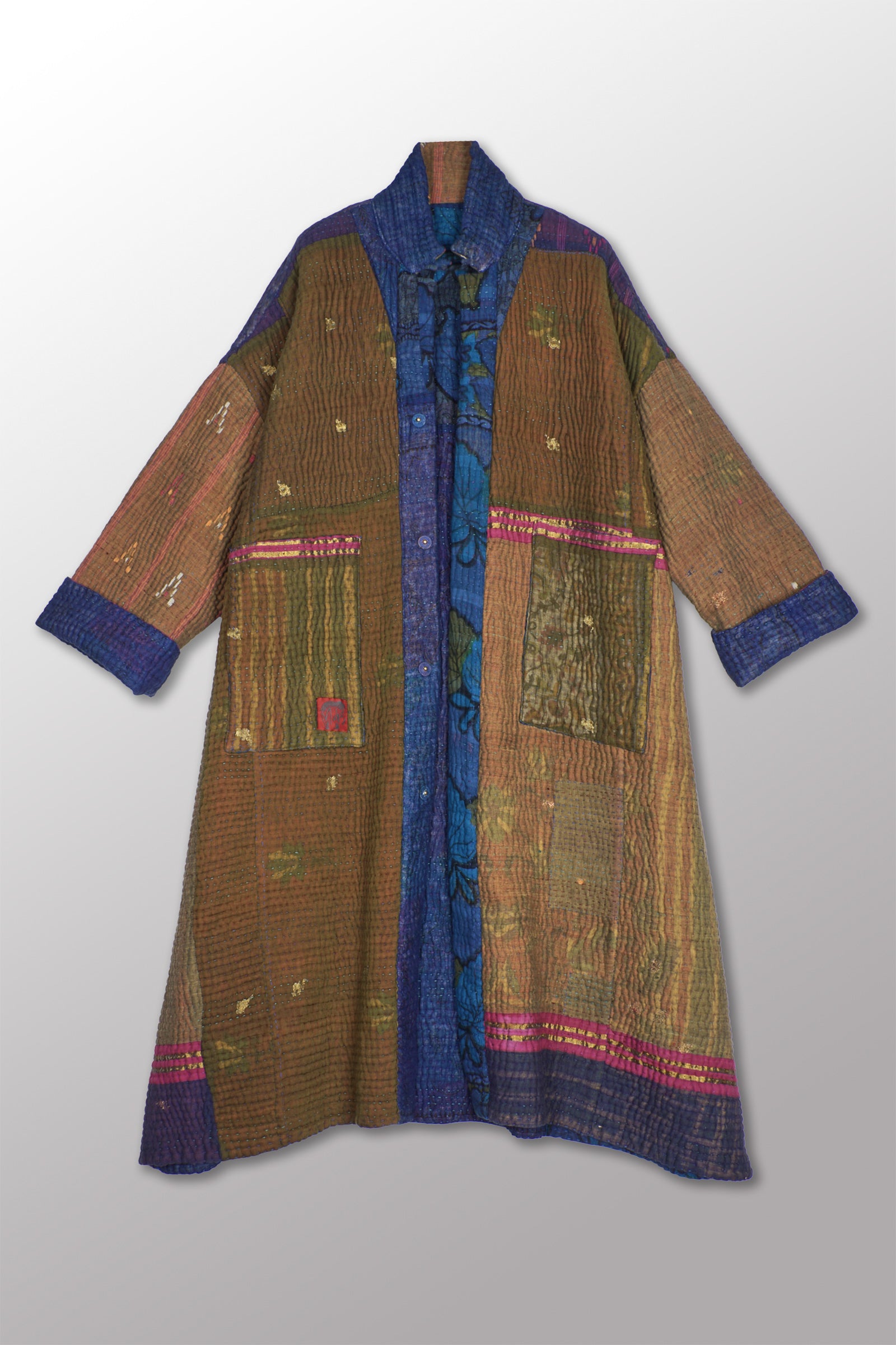QUILTED OVERDYE COTTON KANTHA NEW OVERSIZED COAT - oq5342-cblu004a -