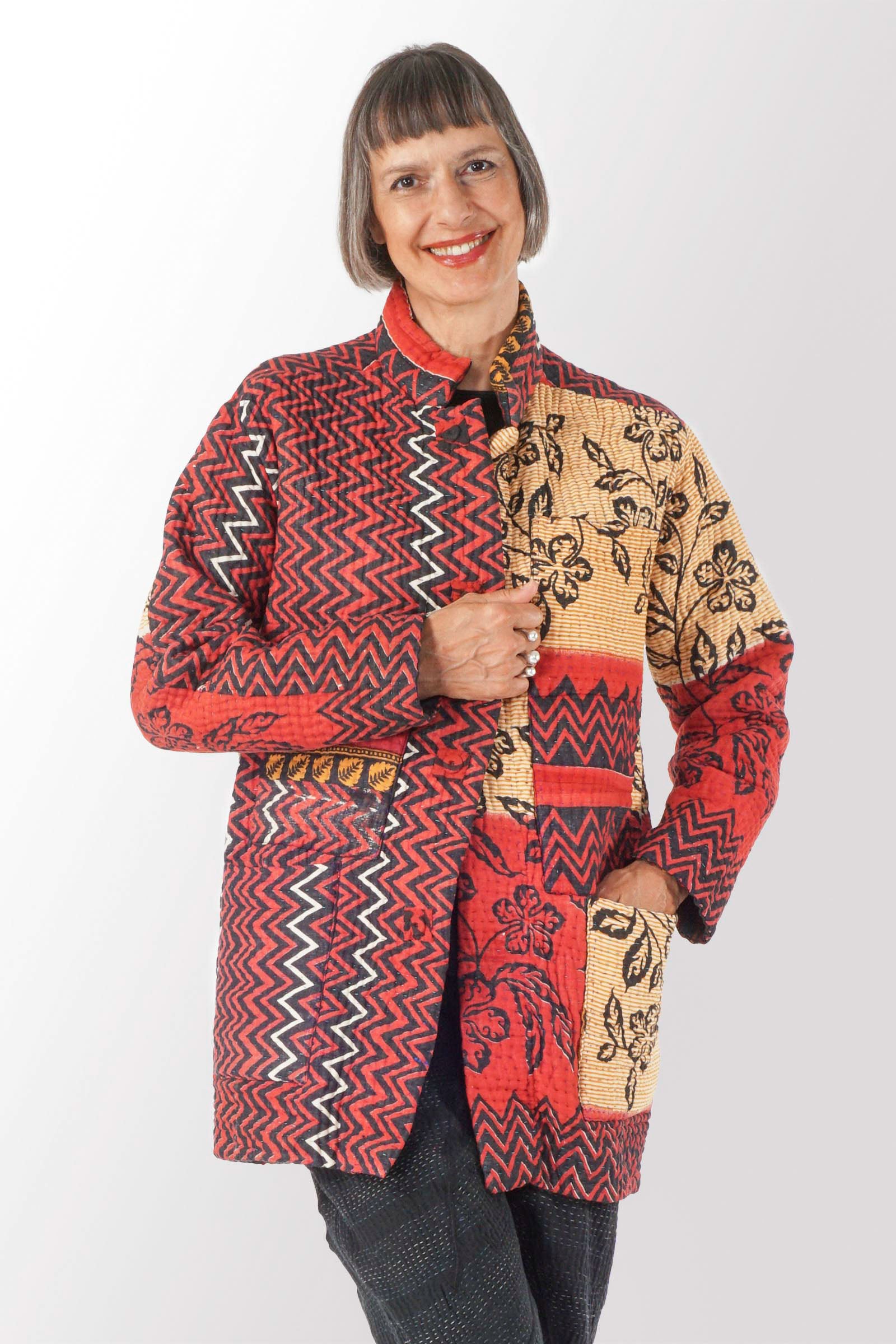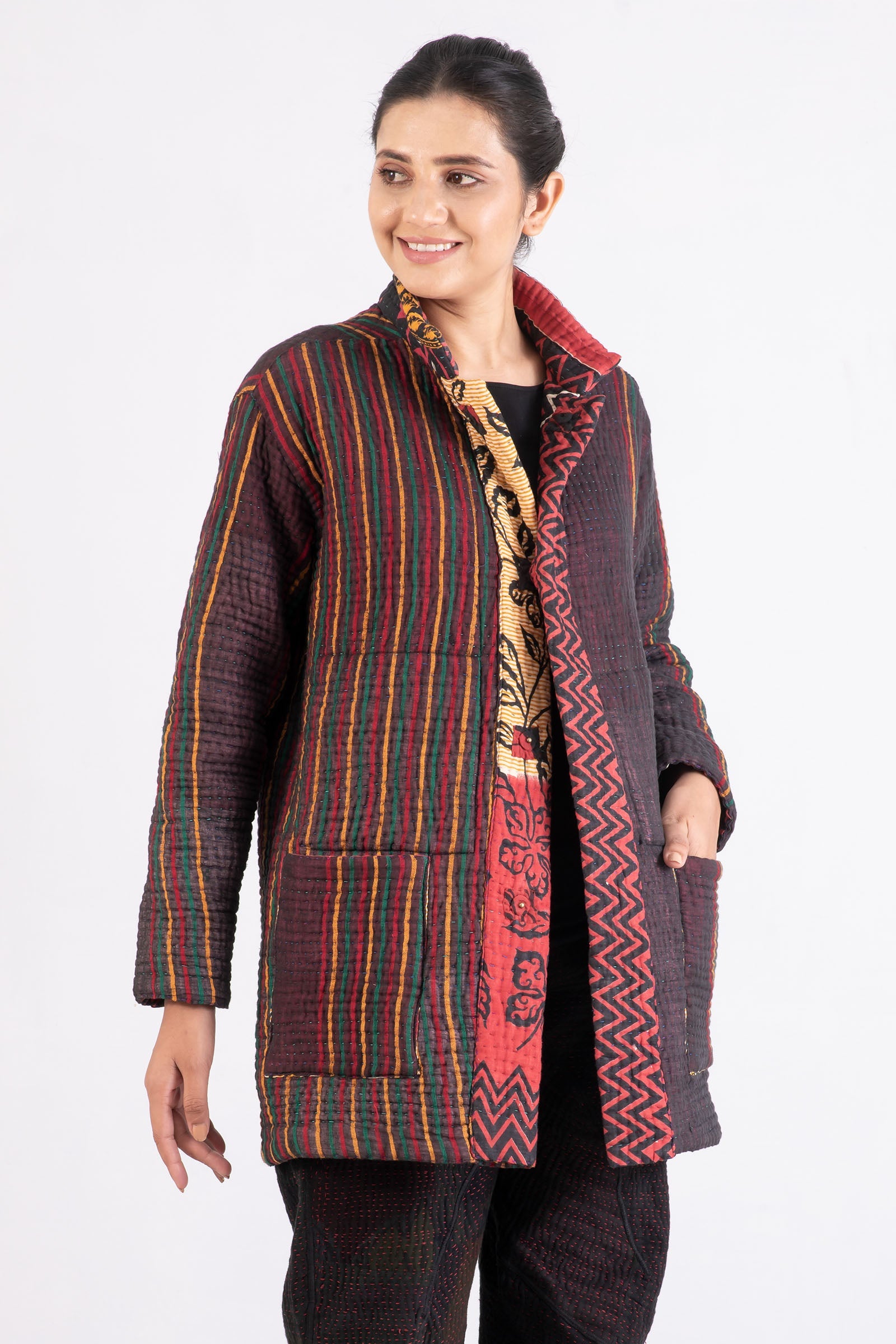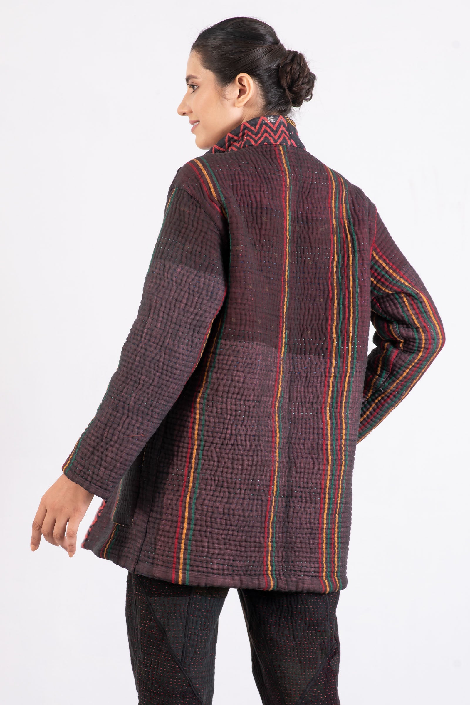 QUILTED VINTAGE COTTON KANTHA MEN'S JACKET - cq5041-0001m -