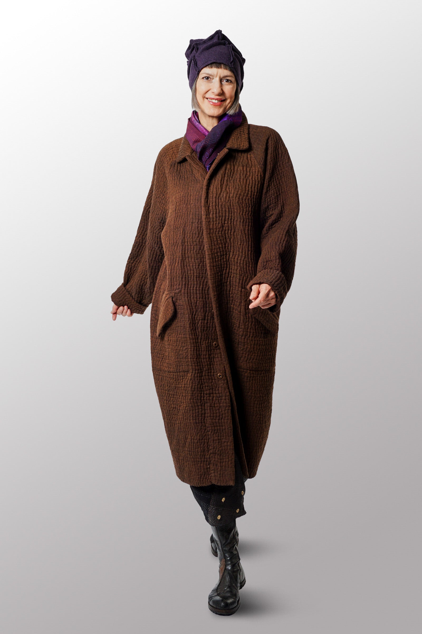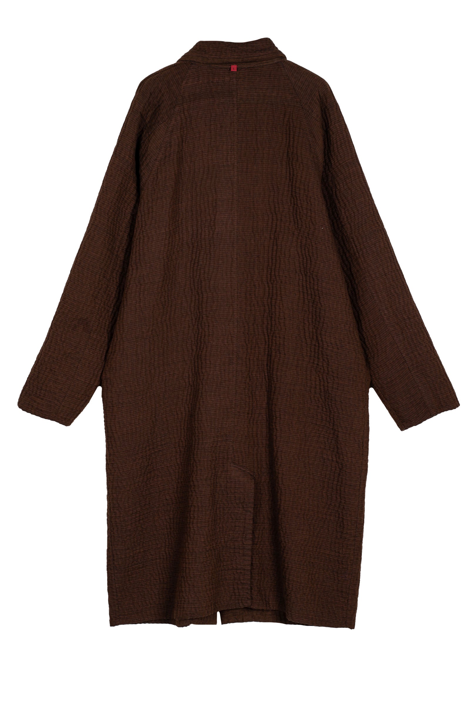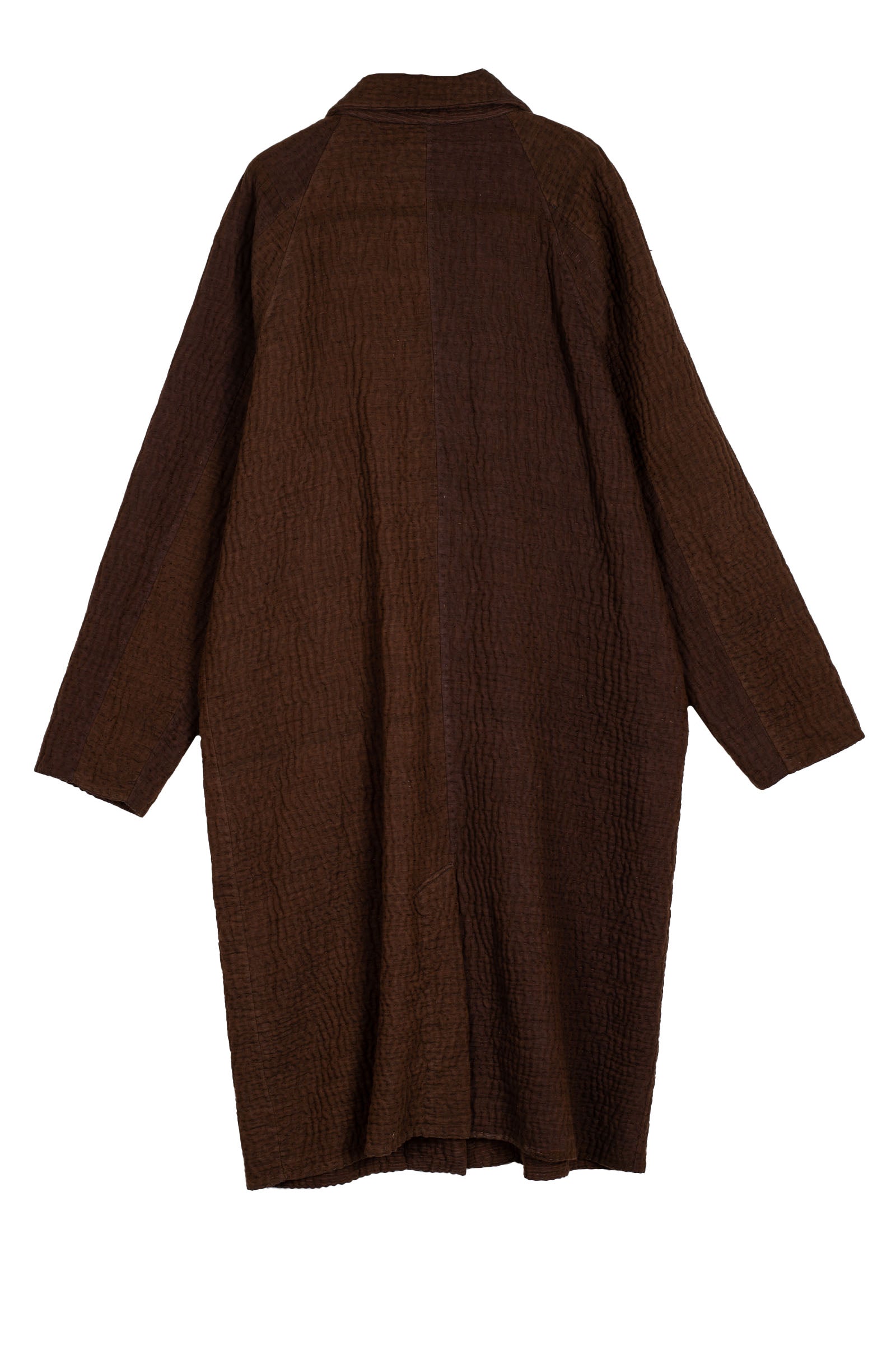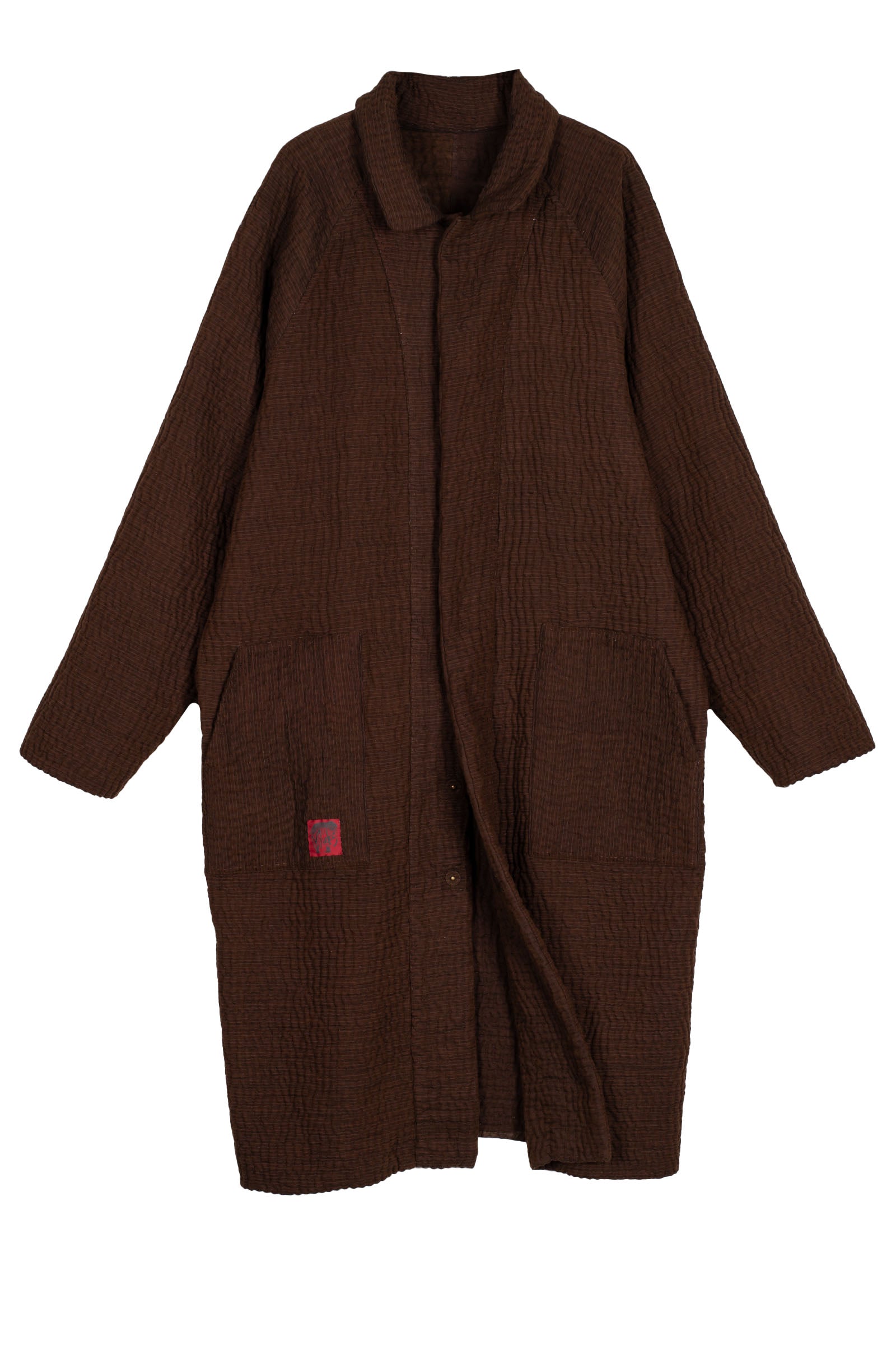 QUILTED VINTAGE COTTON WITH FLANNEL KANTHA RAGLAN SLEEVE COAT - fq5337-brn -