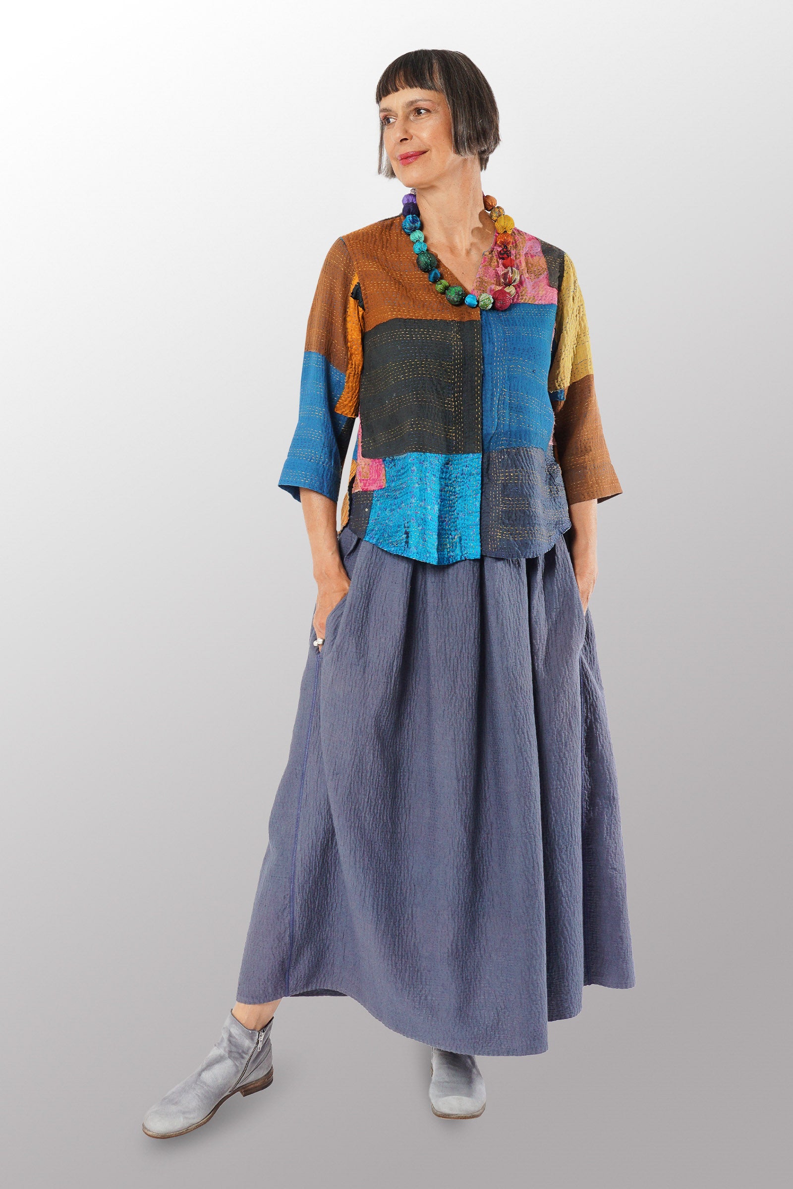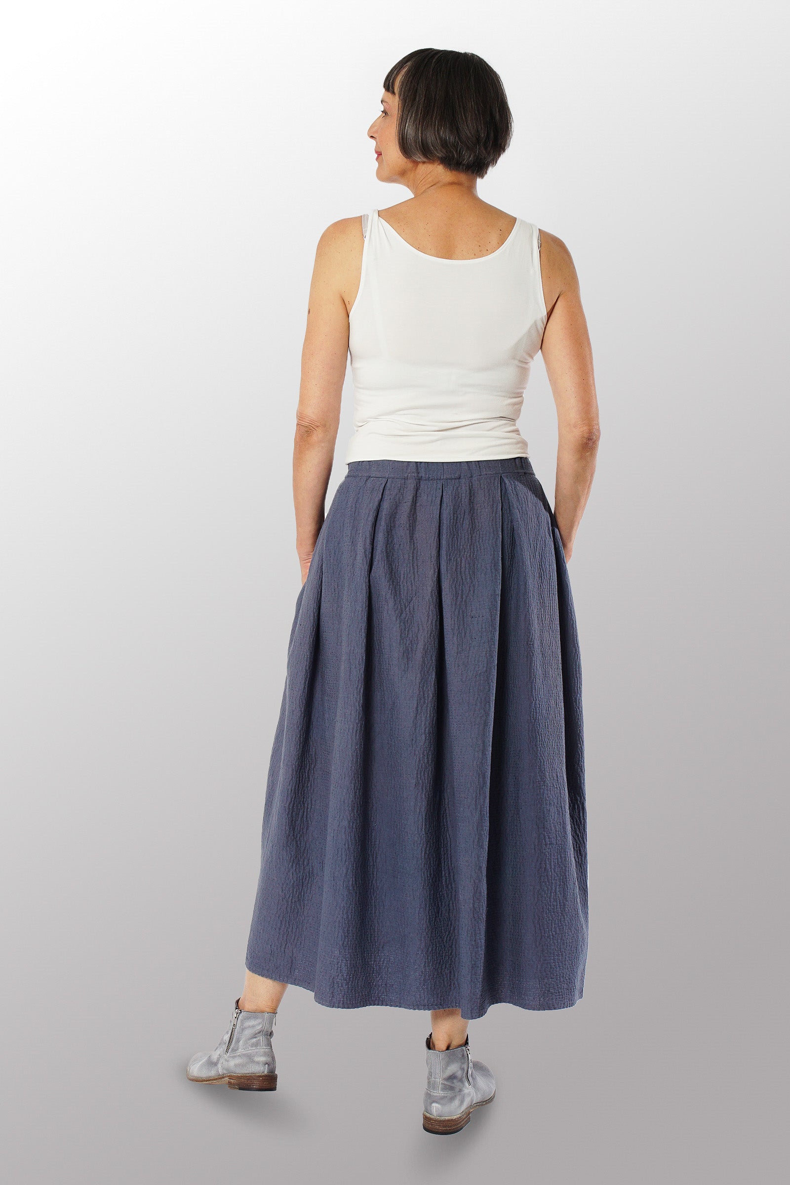 RIPPLE KANTHA TUCKED GATHER SKIRT - rp2663-nvy -