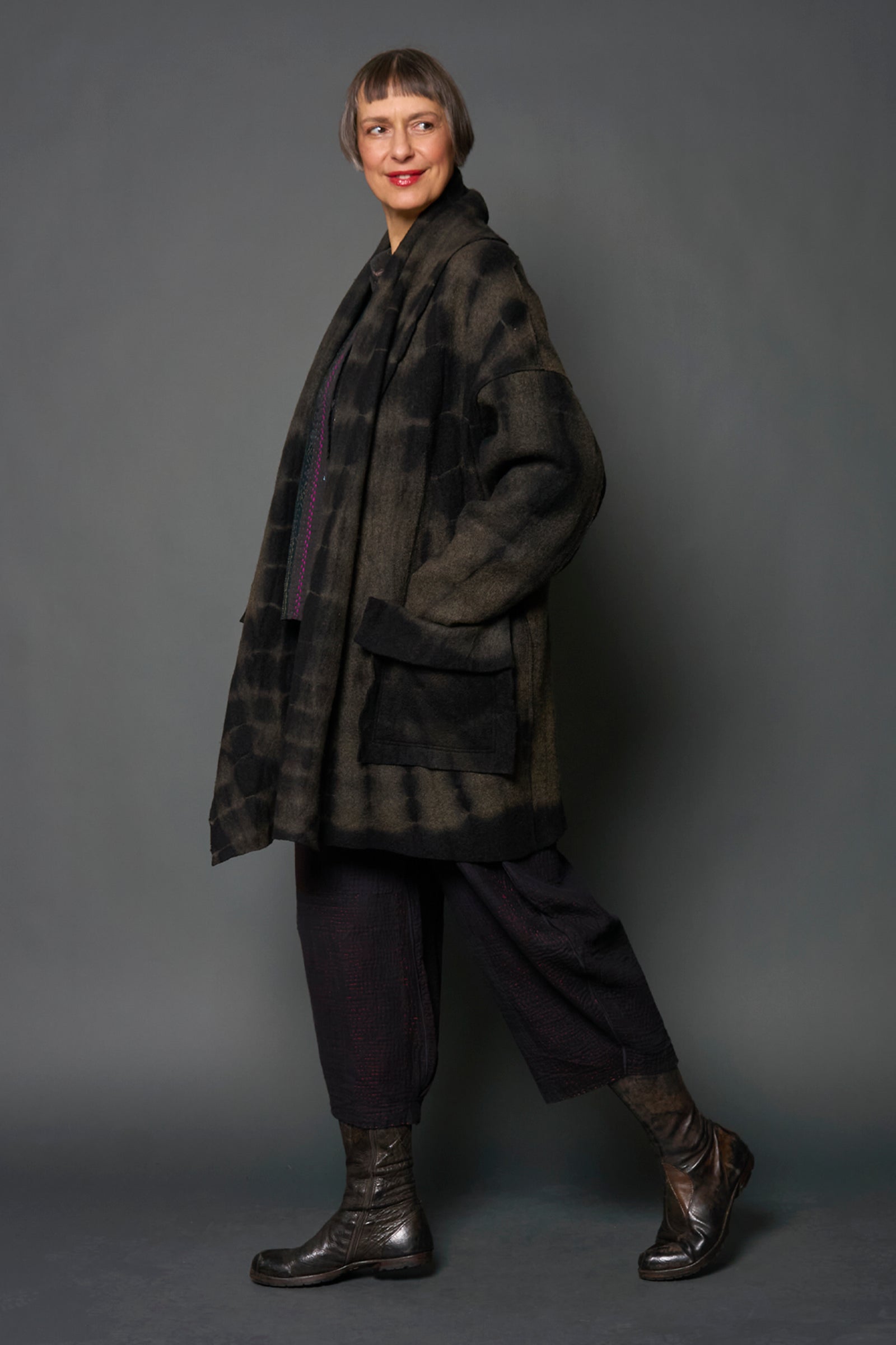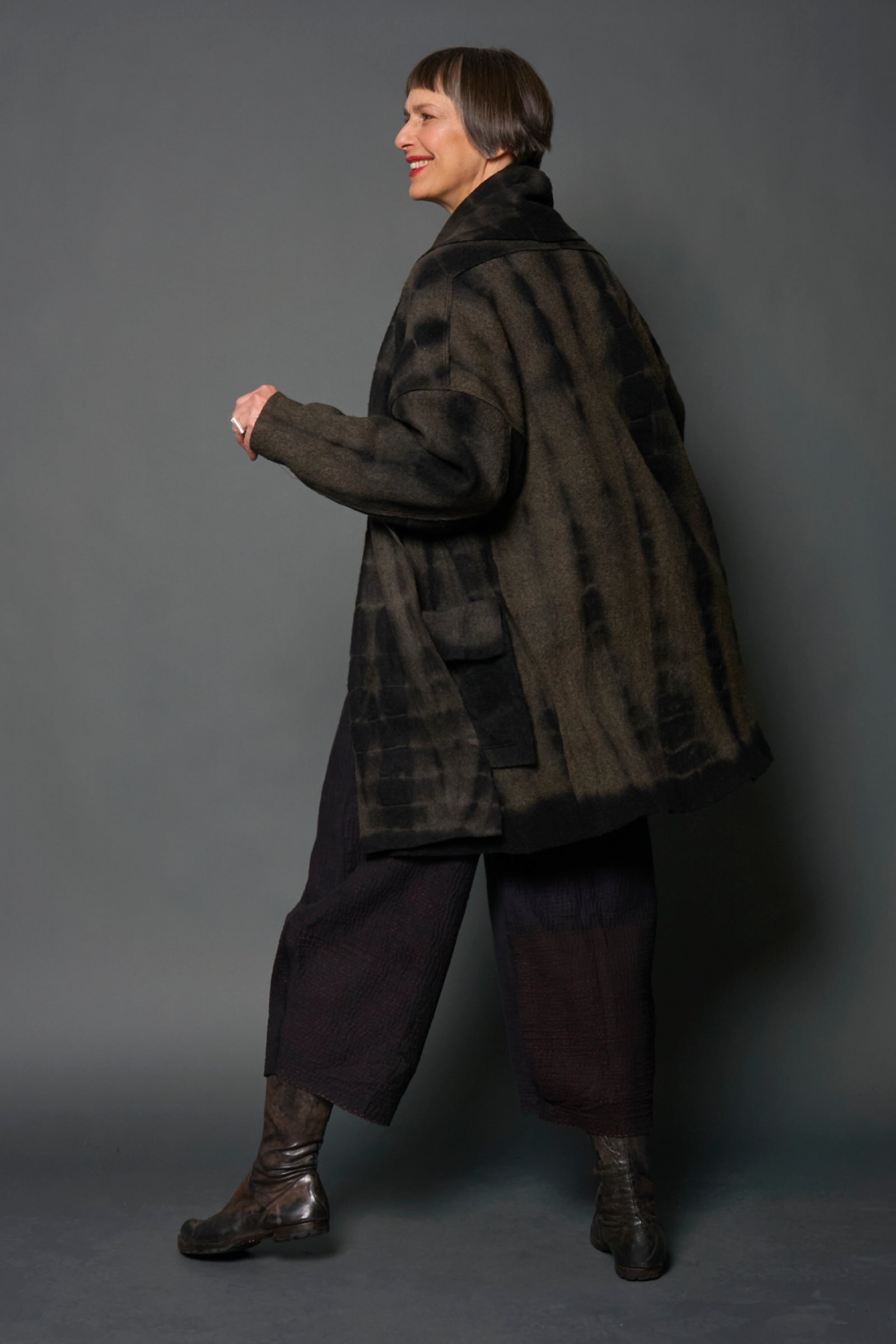 SHIBORI TIE DYE BOILED WOOL SHAWL COAT - tb1350-grn -