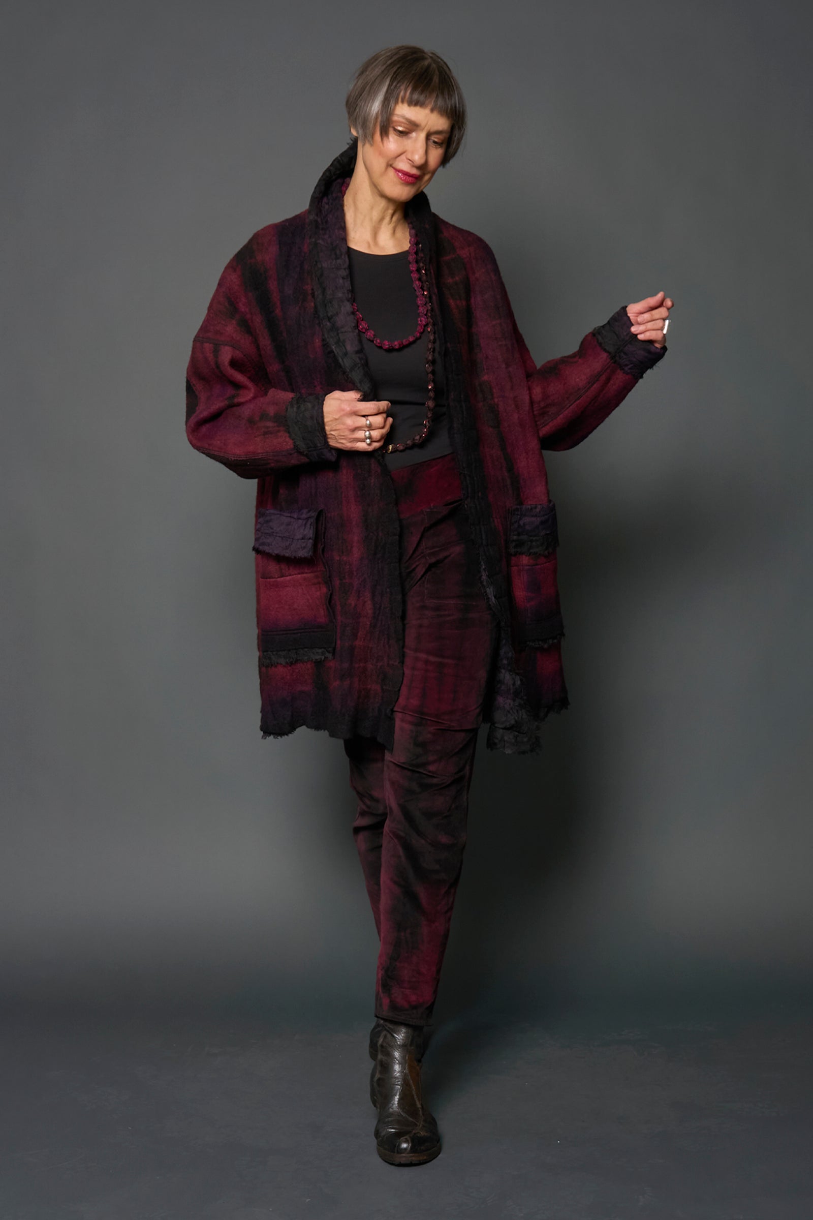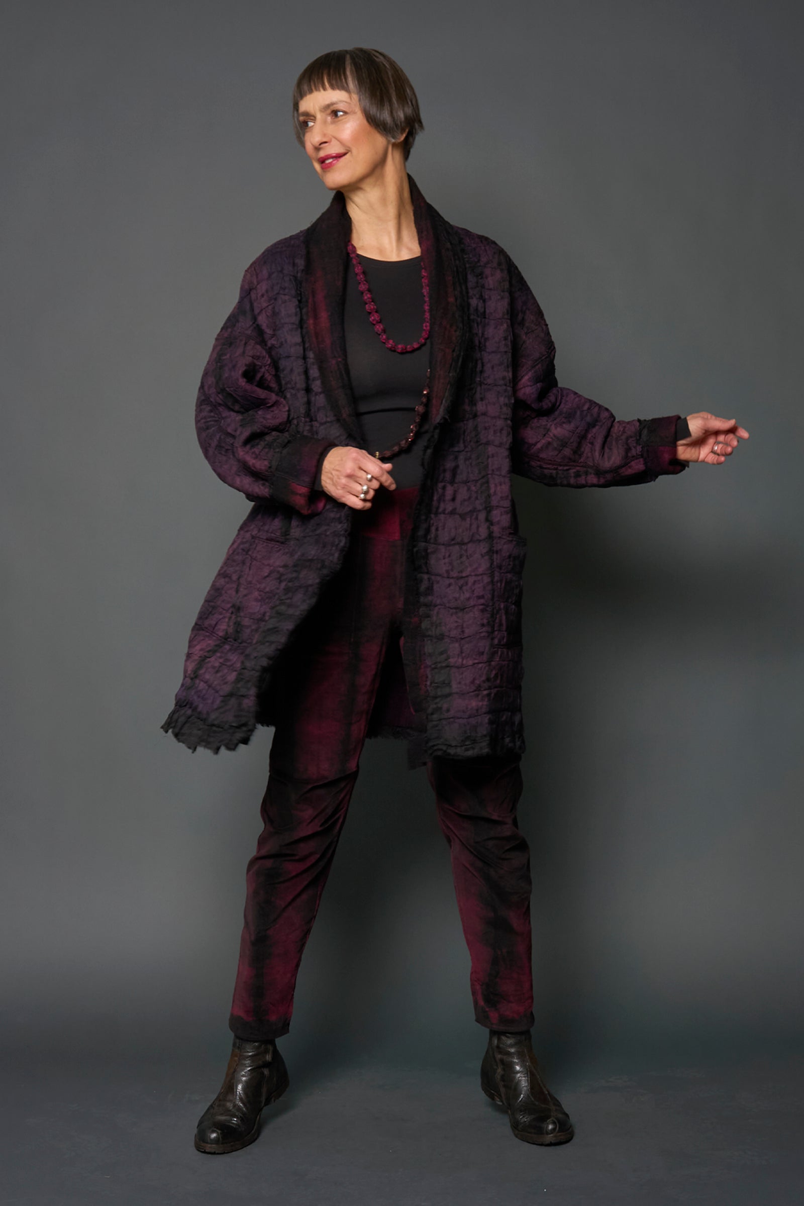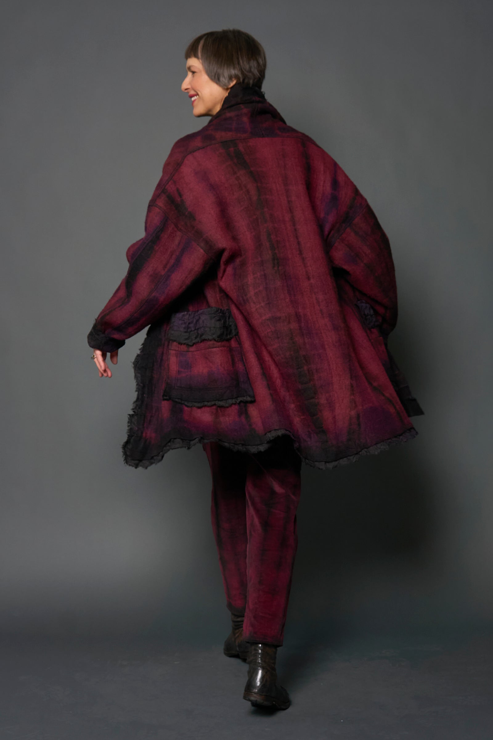 SHIBORI TIE DYE BOILED WOOL WITH JACQUARD CIGAR COAT - tb2355-pik -