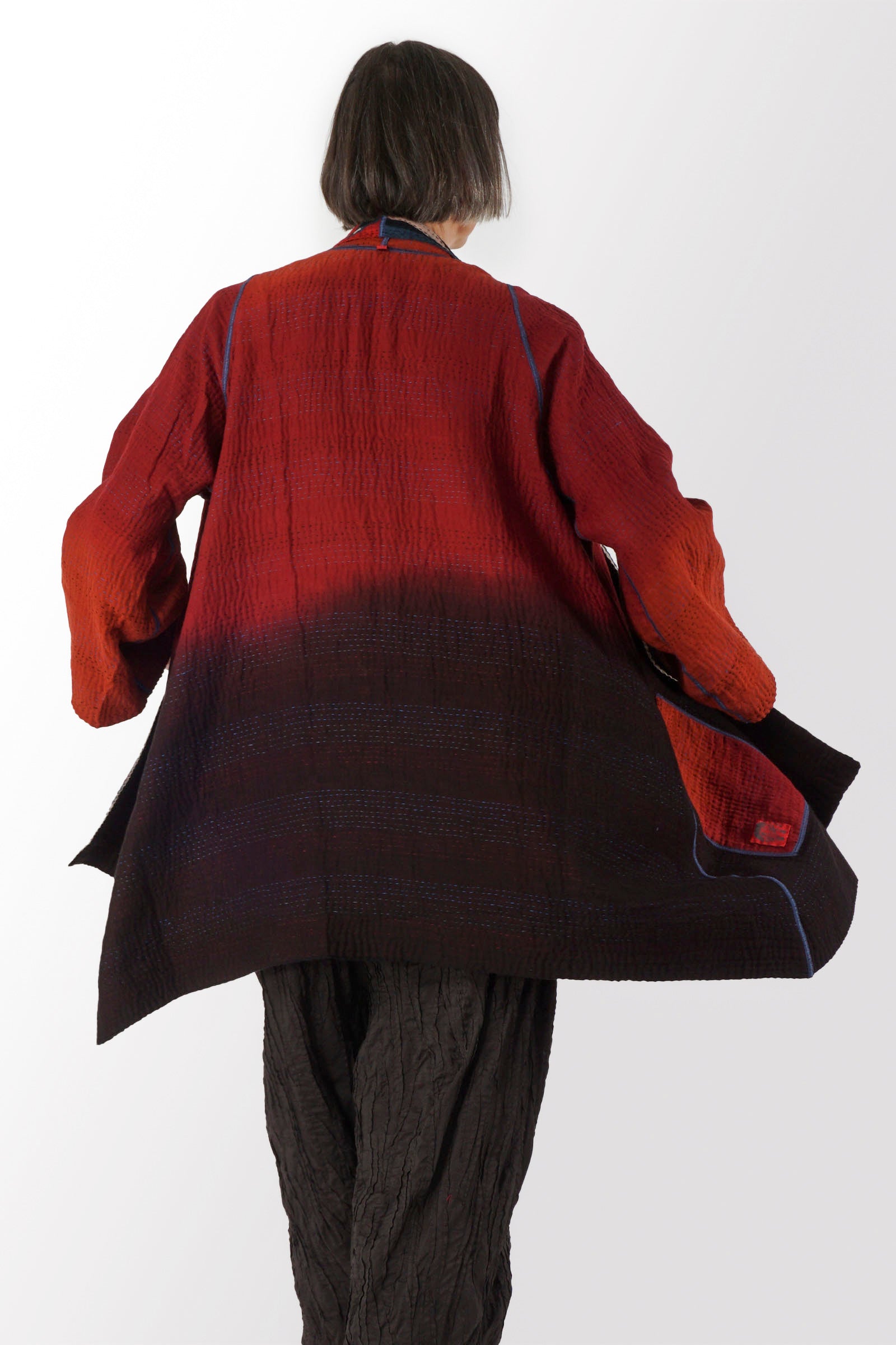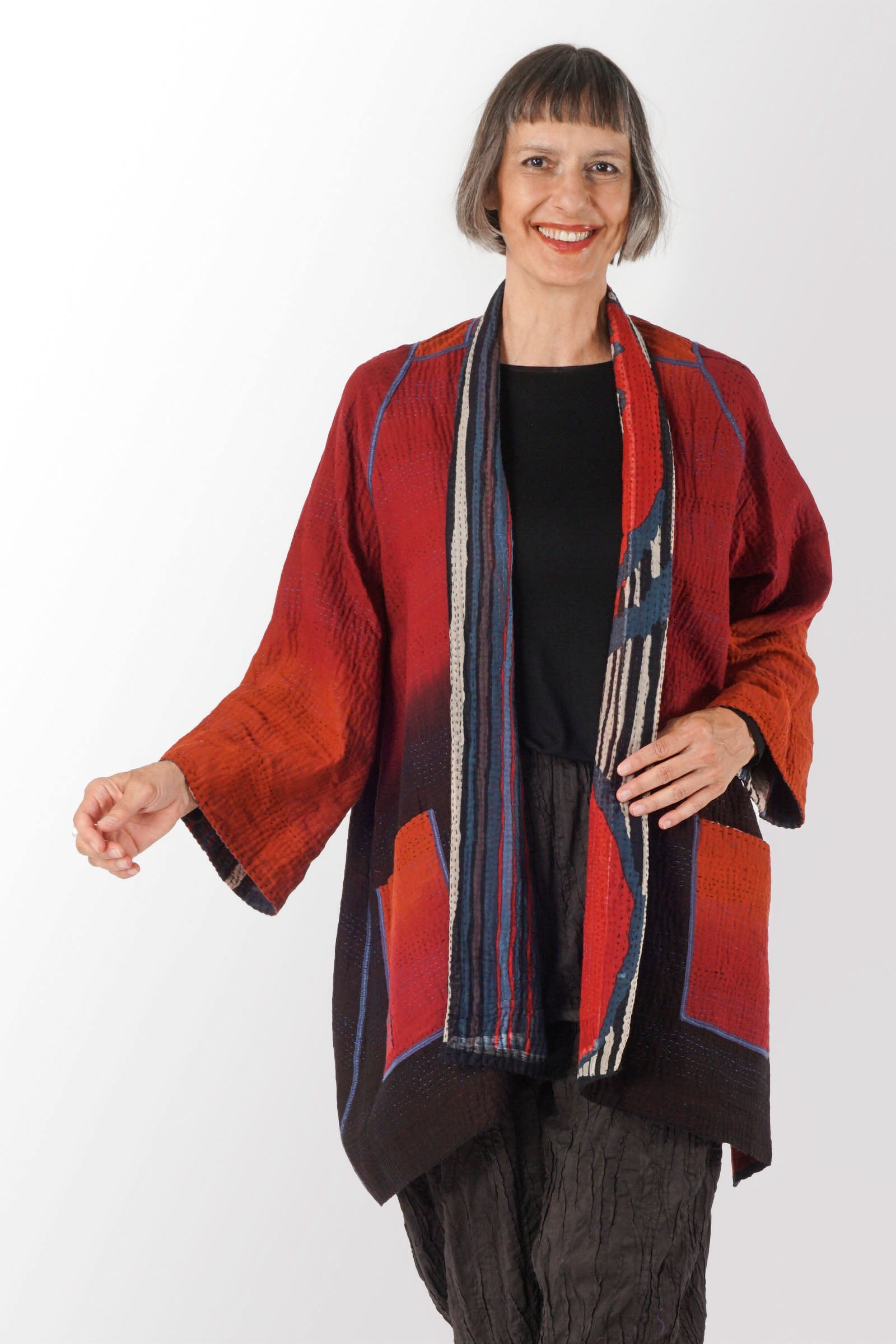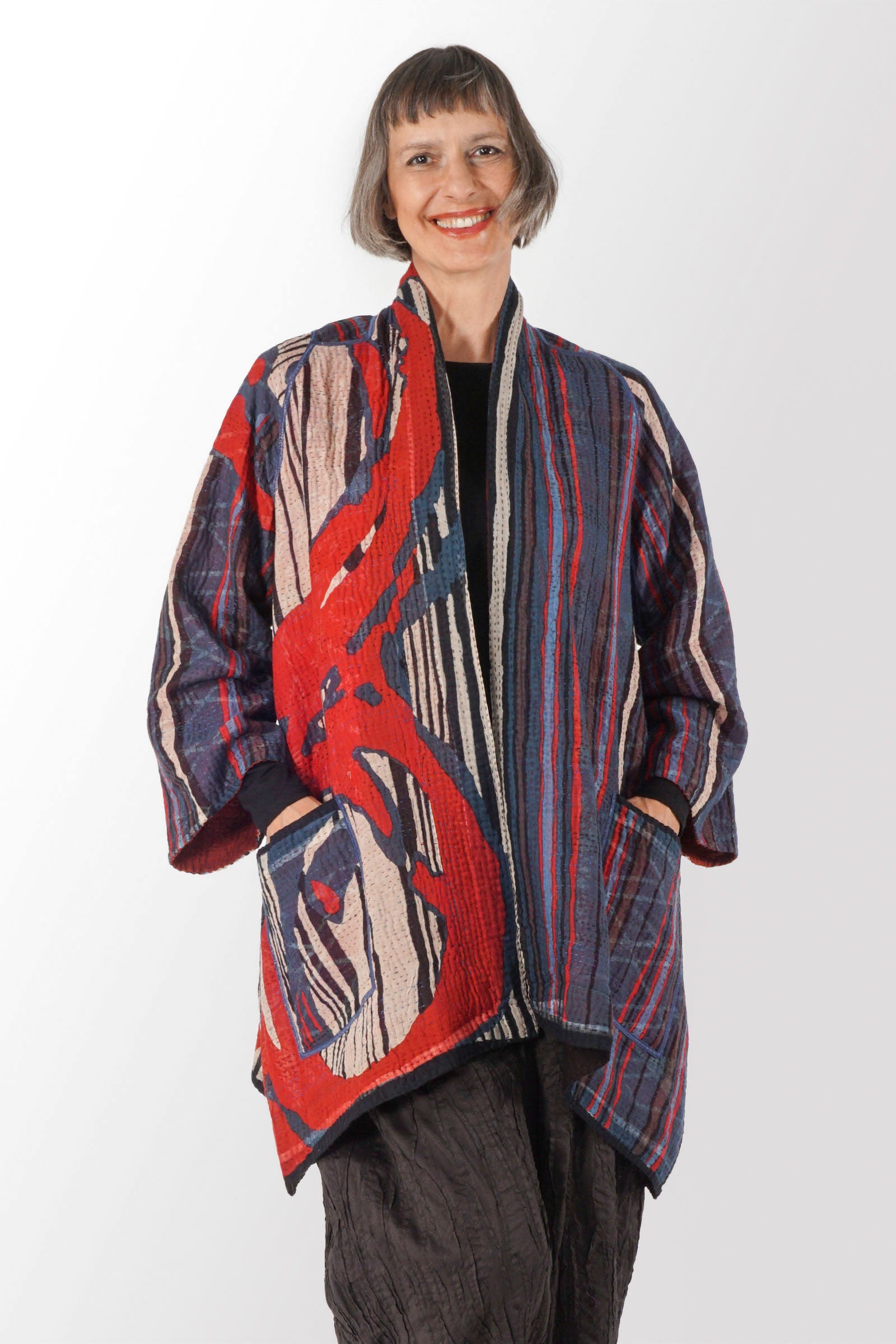 STRIPE AND BENDS KANTHA A-LINE JACKET - sb4003-red -
