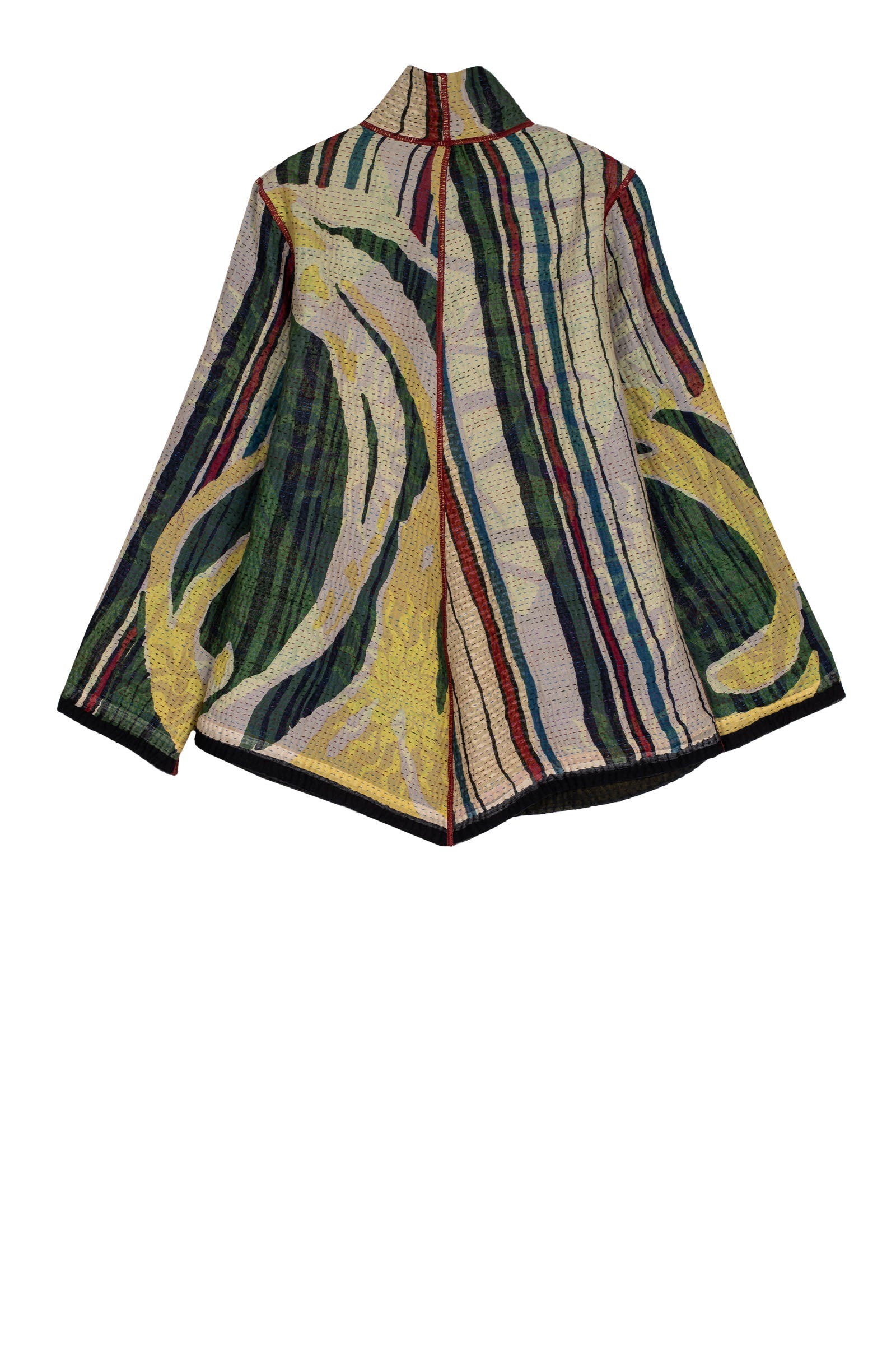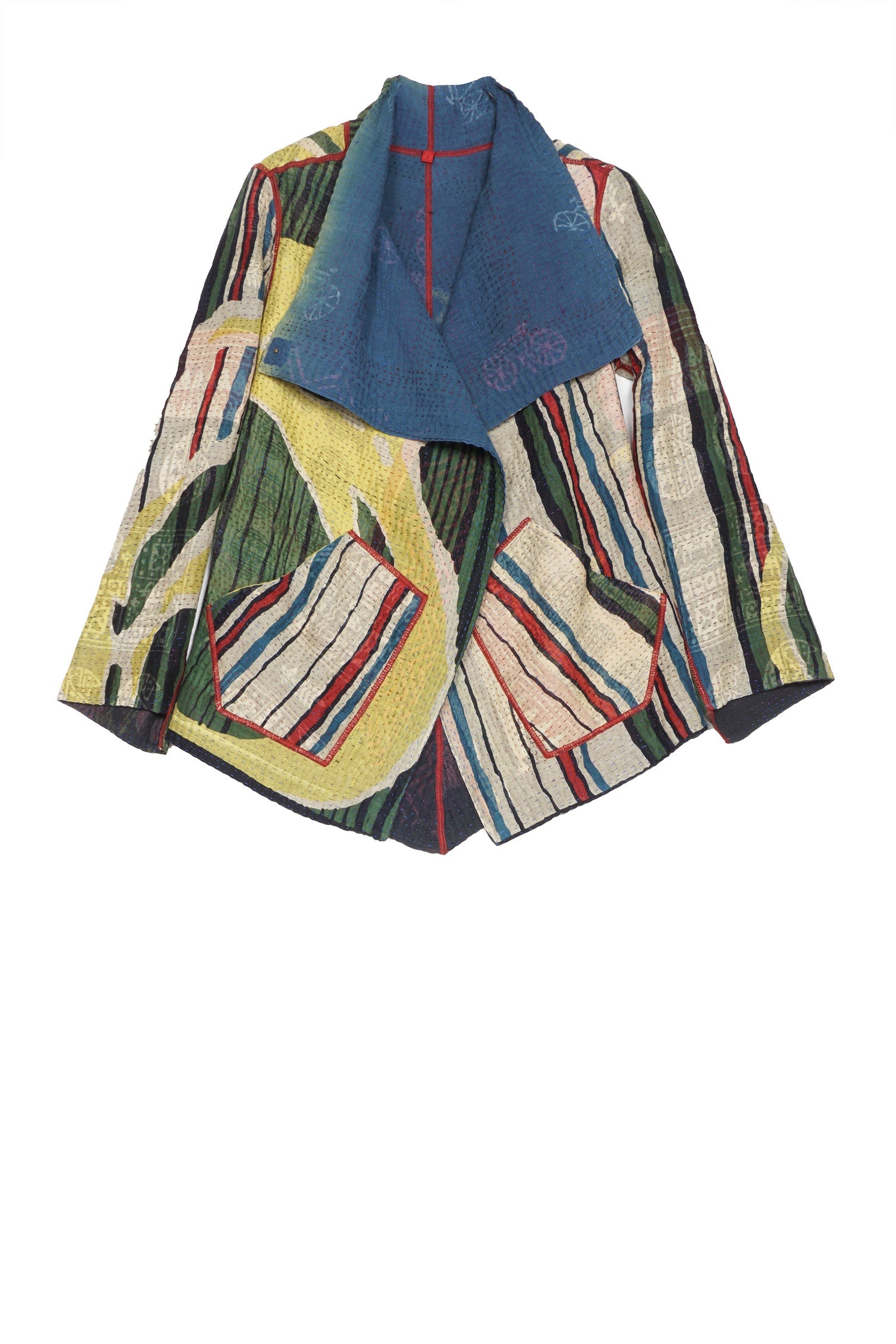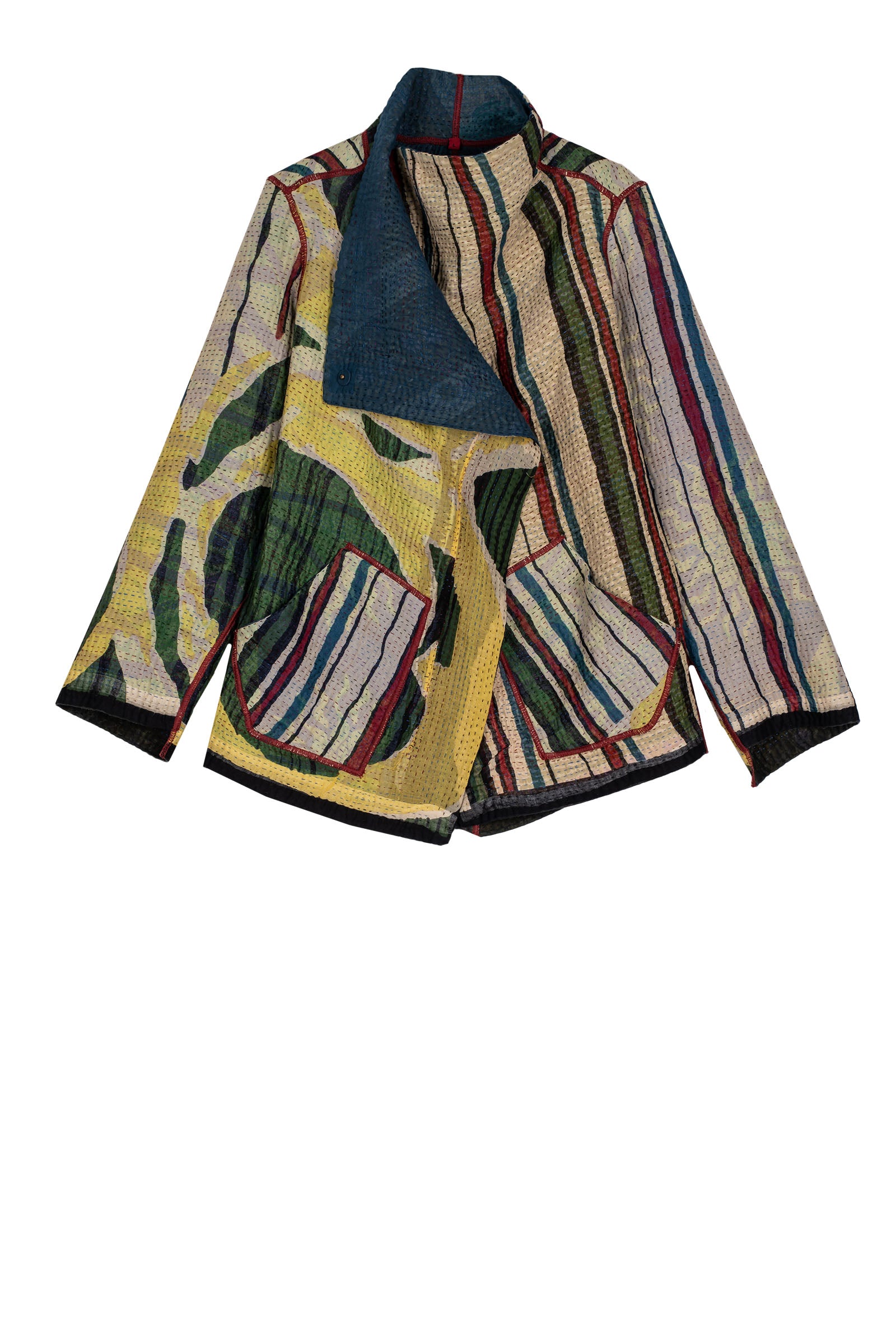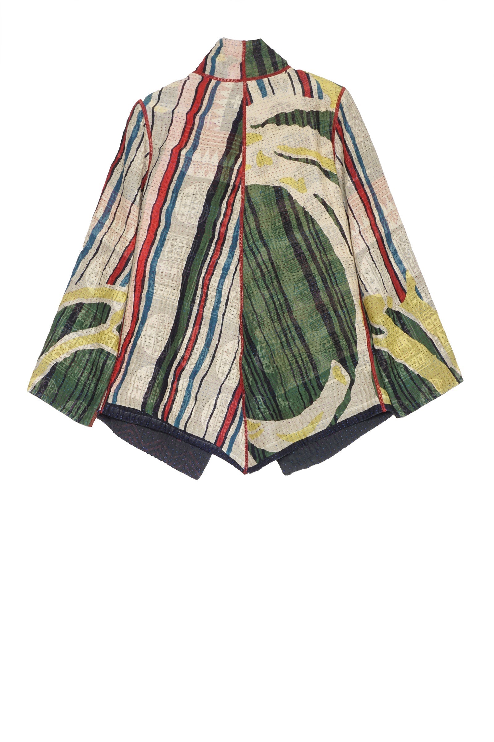 STRIPE AND BENDS KANTHA WING COLLAR JACKET - sb4013-grn -