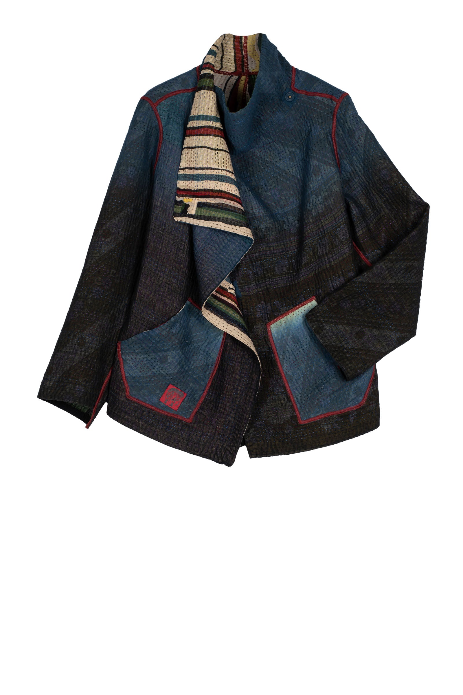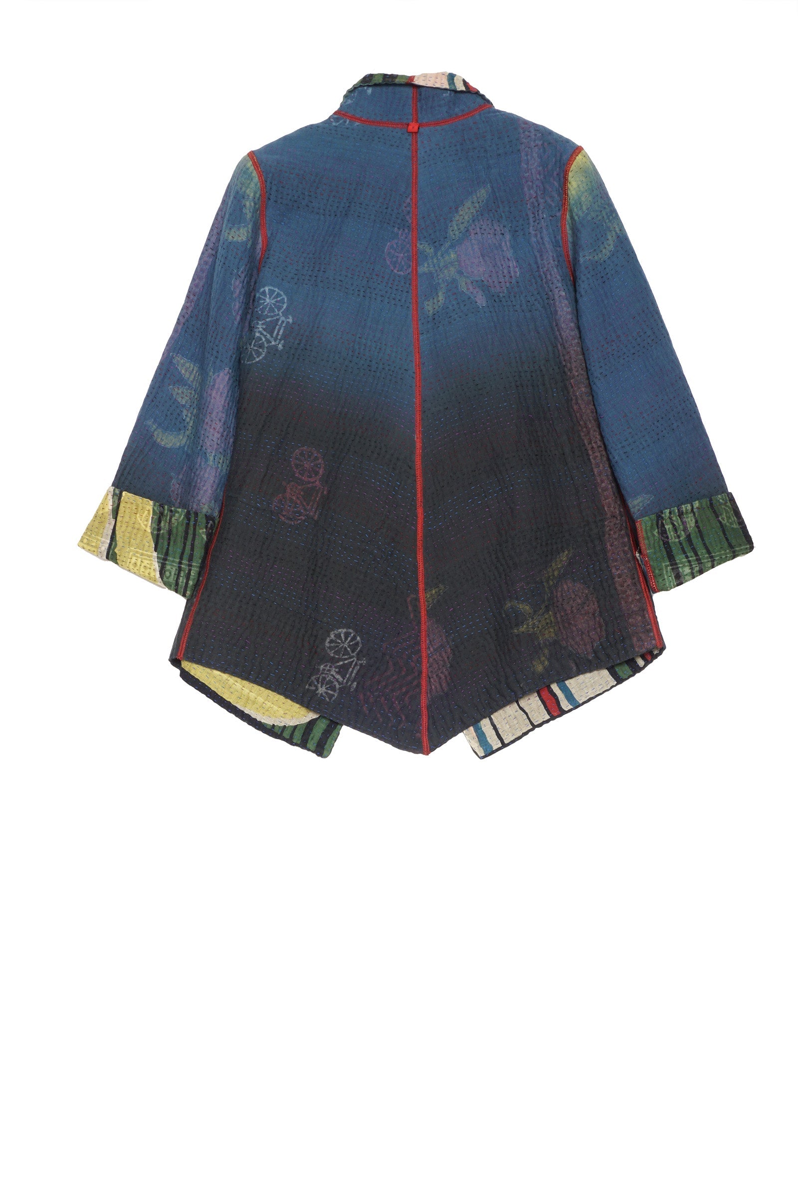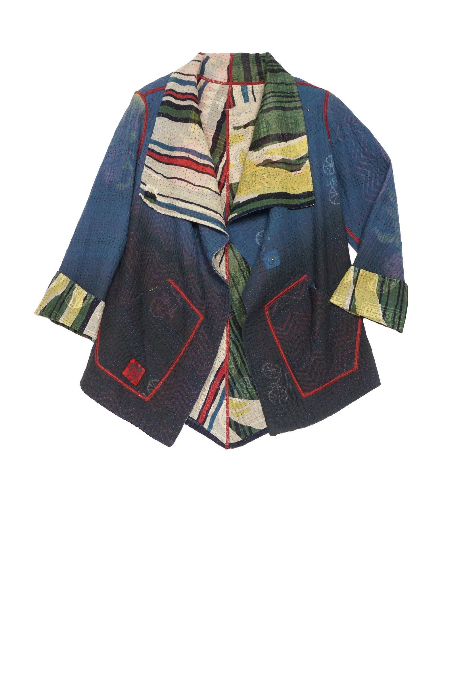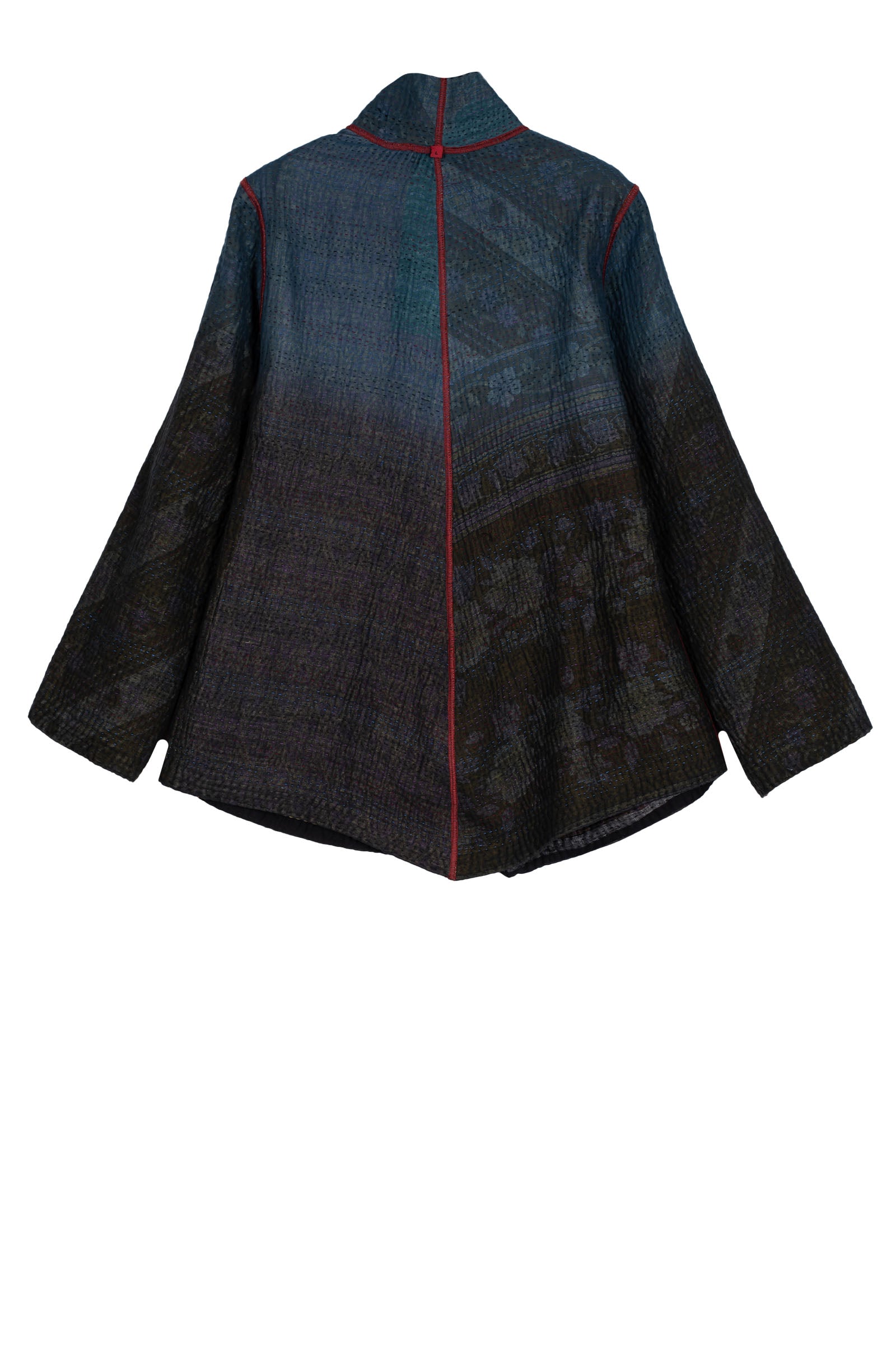STRIPE AND BENDS KANTHA WING COLLAR JACKET - sb4013-grn -